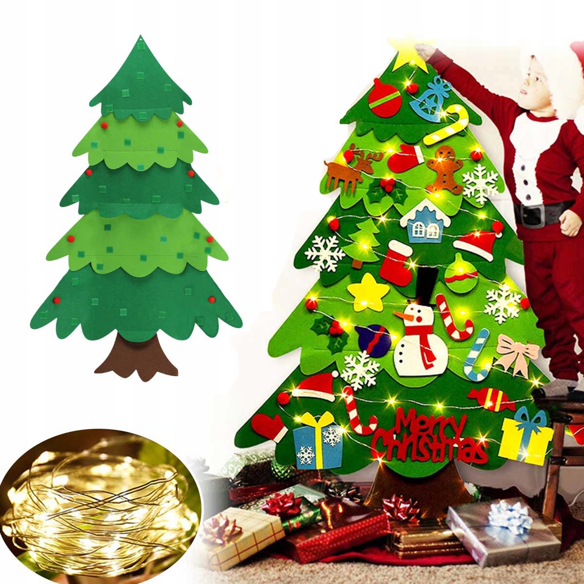 Choinka filcowa mata łańcuch led ozdoba dla dzieci A3M