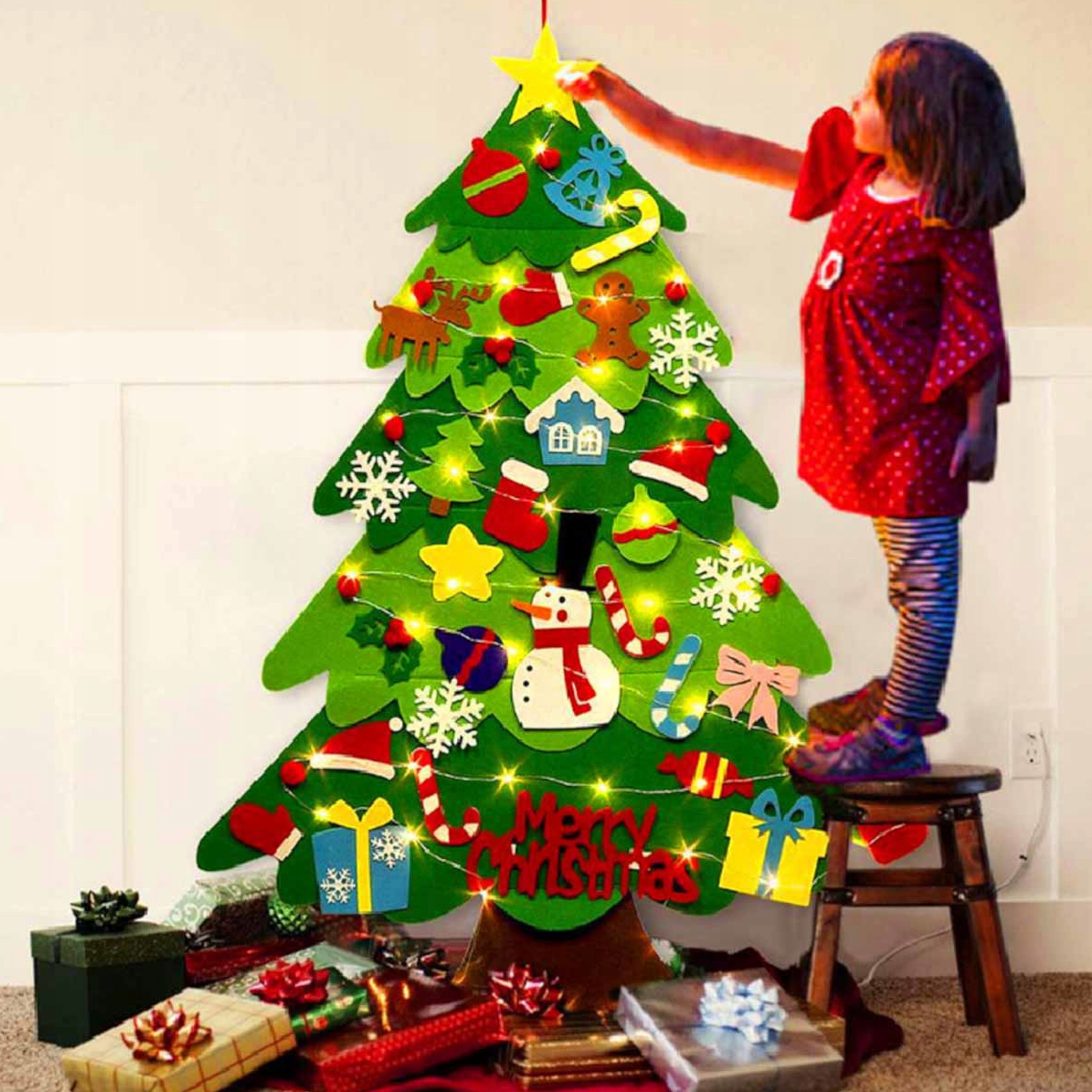 Filcowa choinka na ścianę z łańcuchem led na rzepy to wyjątkowa ozdoba, która łączy w sobie funkcjonalność i zabawę dla dzieci.