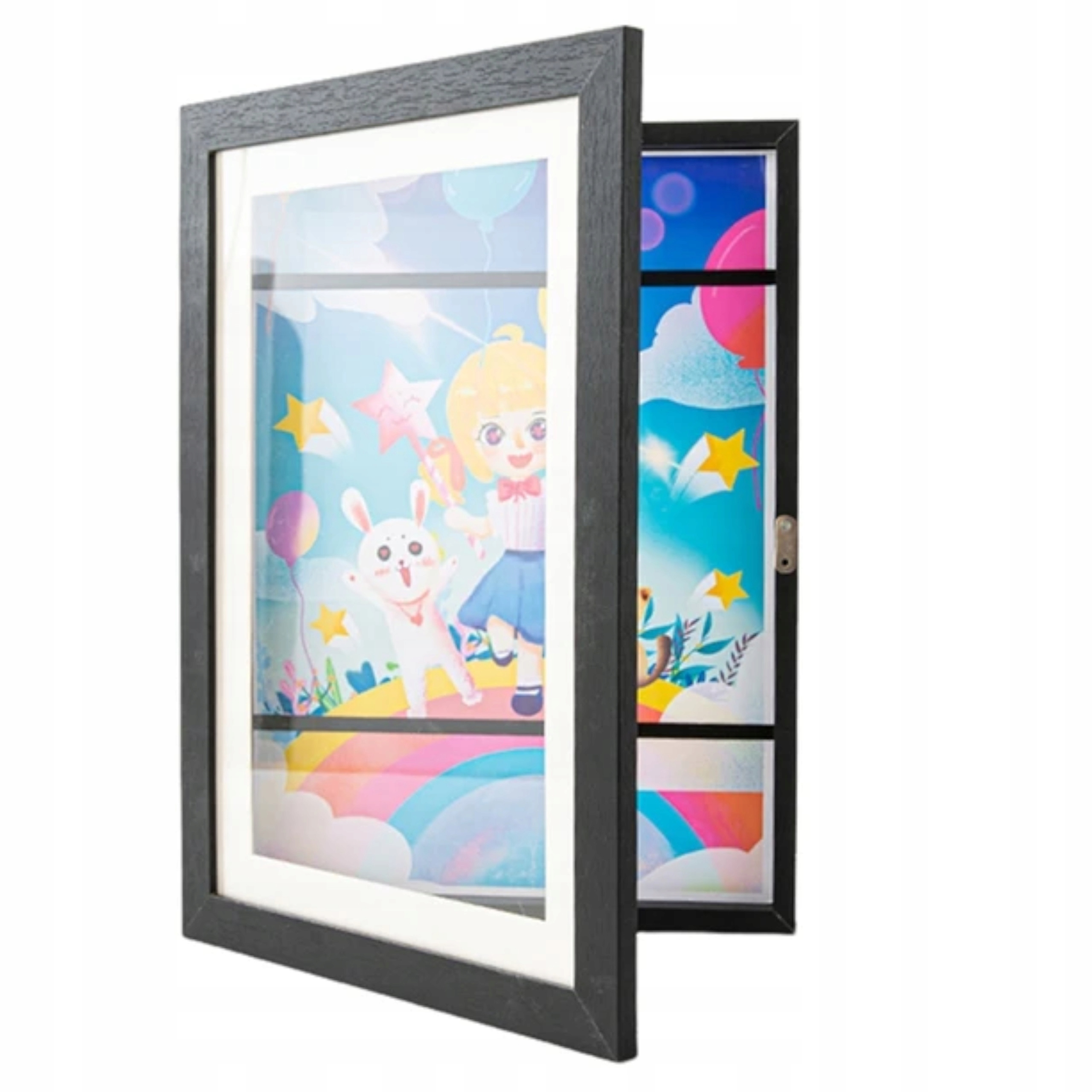 - Otwierana ramka, do której można wkładać prace dzieci, zapobiegając zakurzeniu się