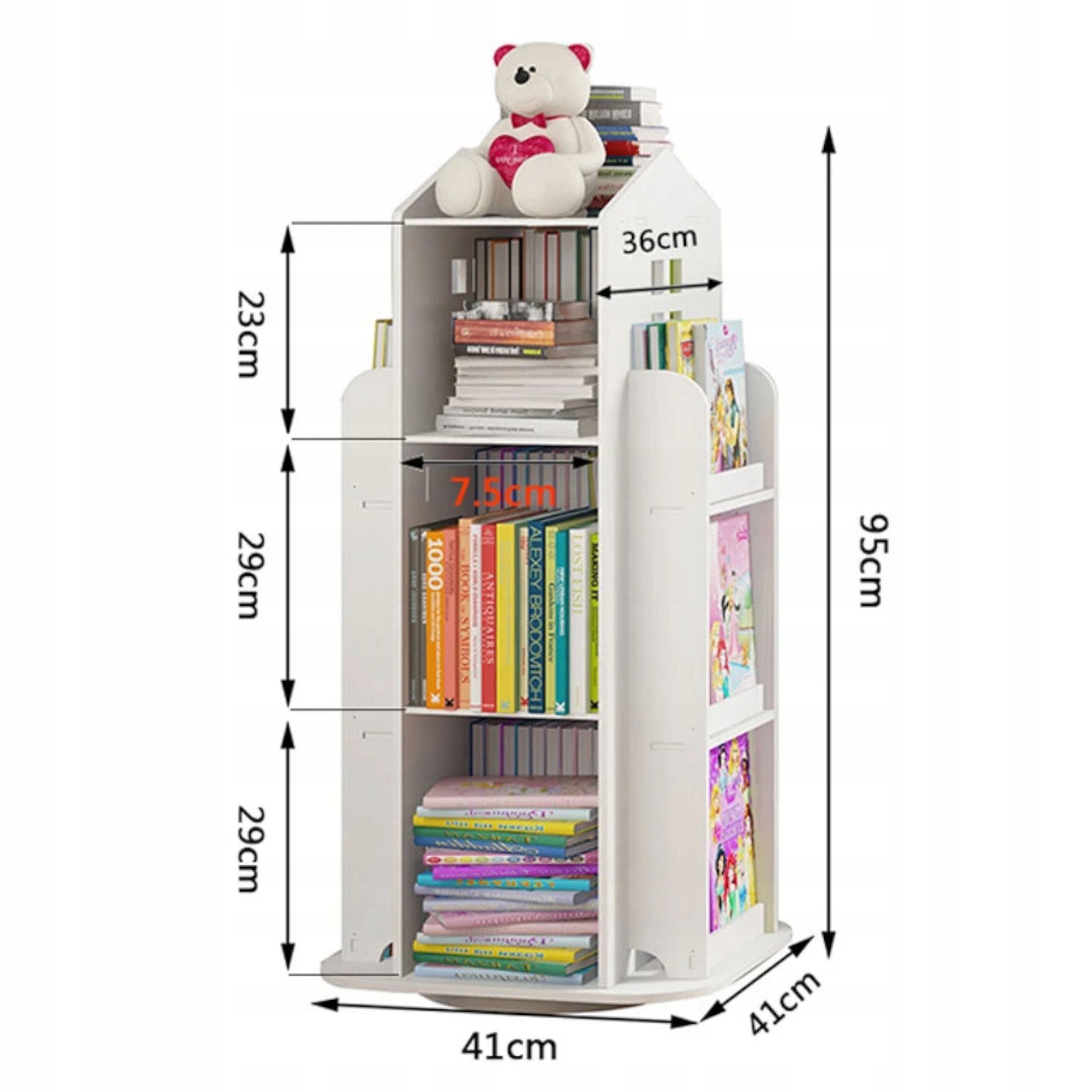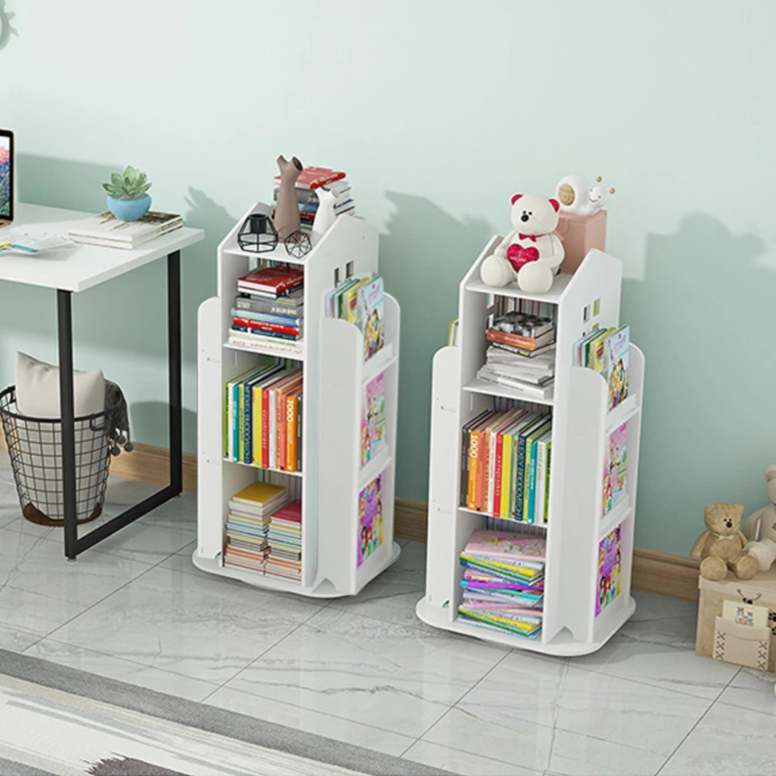 Obrotowy regał na książki dla dzieci to niezwykle praktyczne i atrakcyjne rozwiązanie do przechowywania książek oraz zabawek w pokoju dziecka. Ten funkcjonalny mebel został stworzony z myślą o Naszych maluchach aby pomóc im rozwijać miłość do czytania i utrzymania porządku w swoim pokoju już od najmłodszych lat.