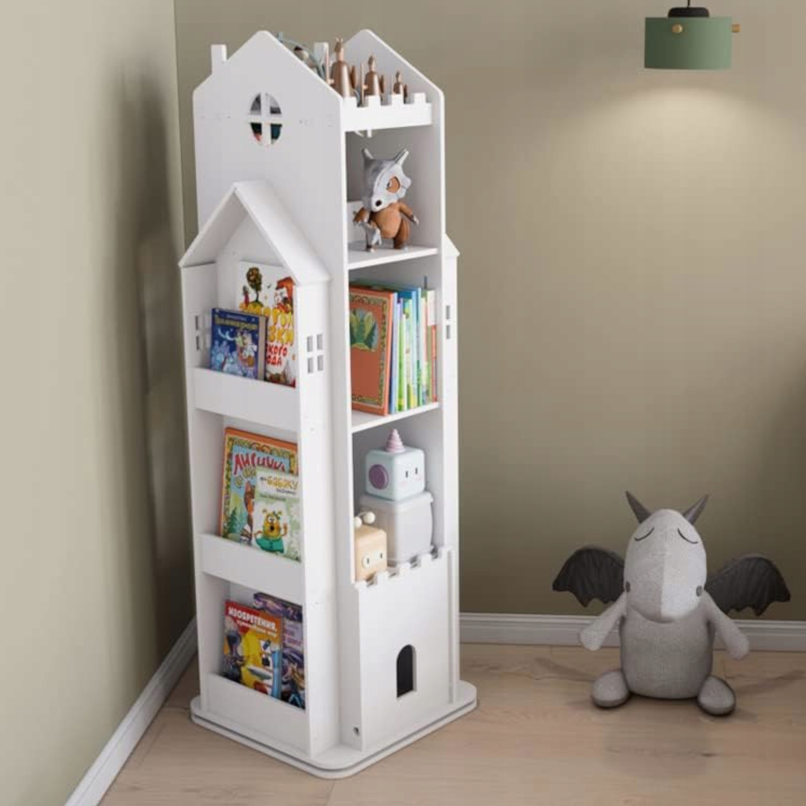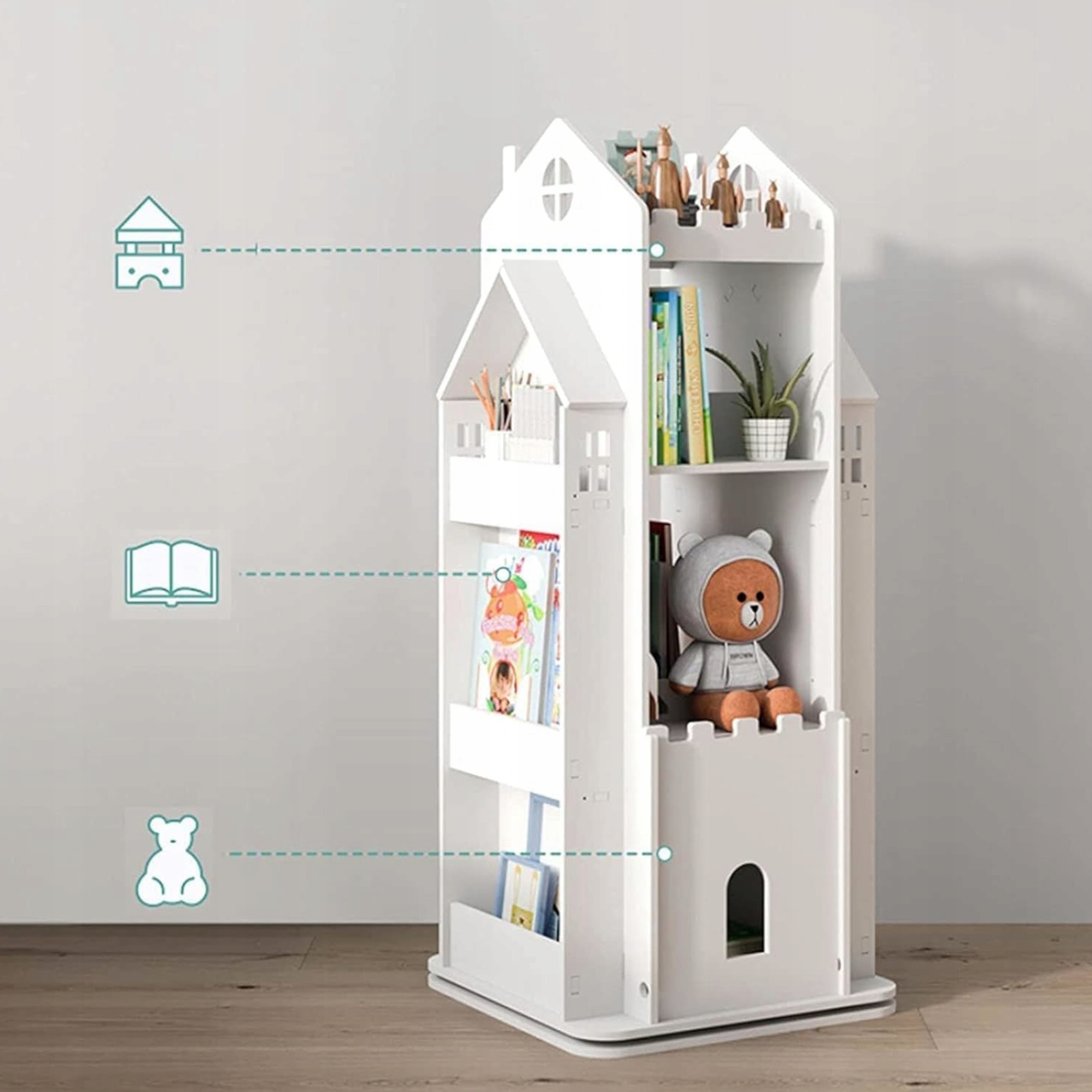 Regał na książki obrotowy półka domek organizer pokój dziecięcy biały