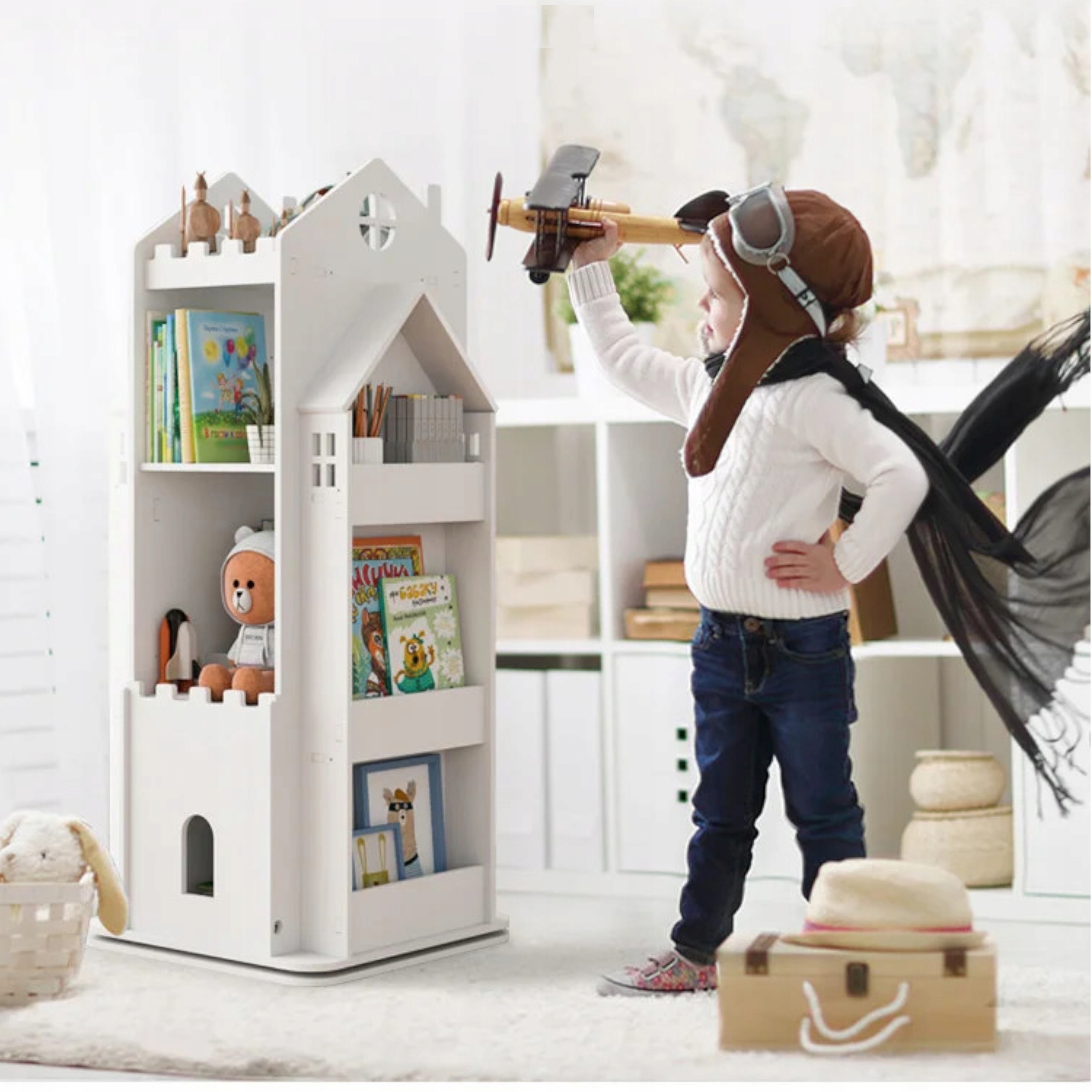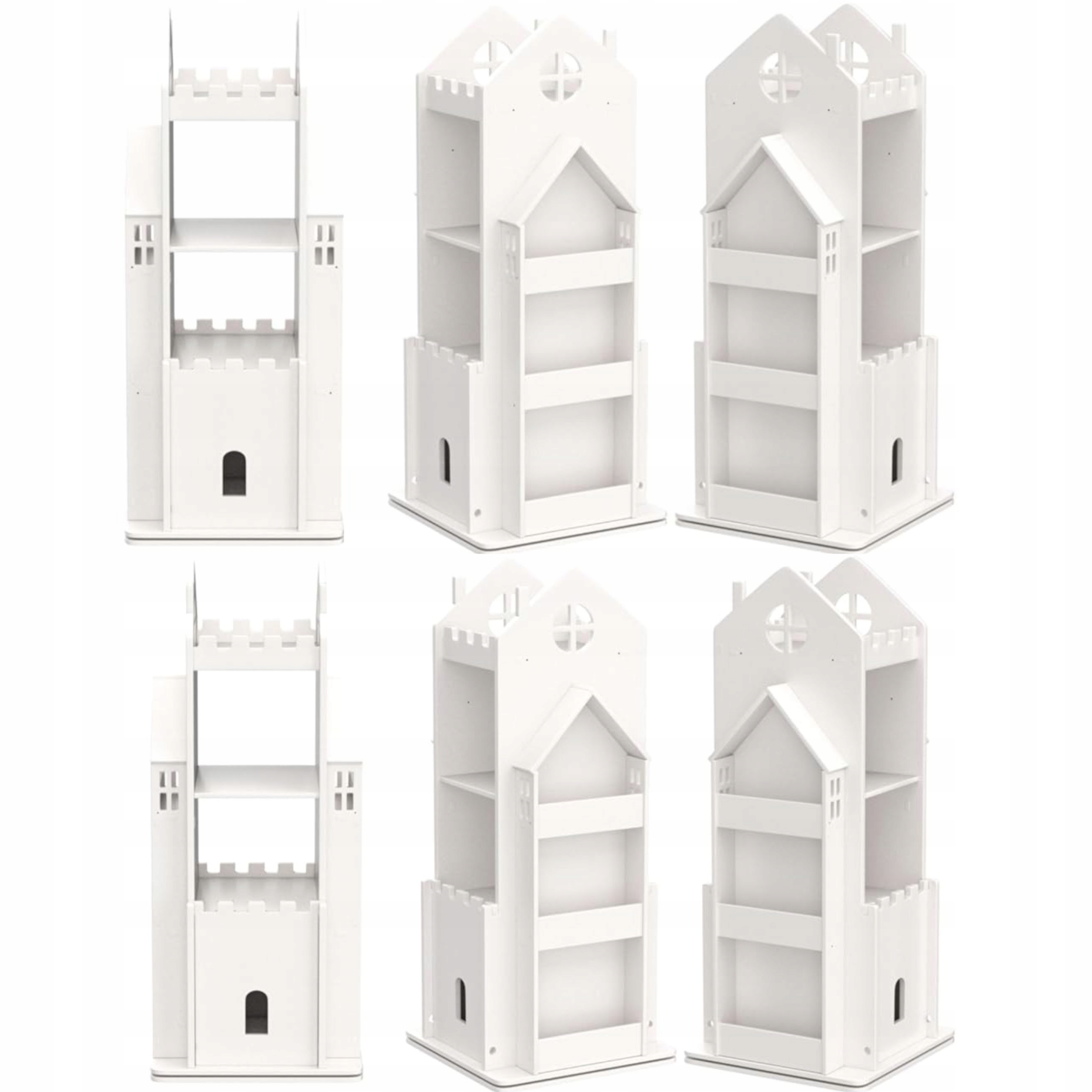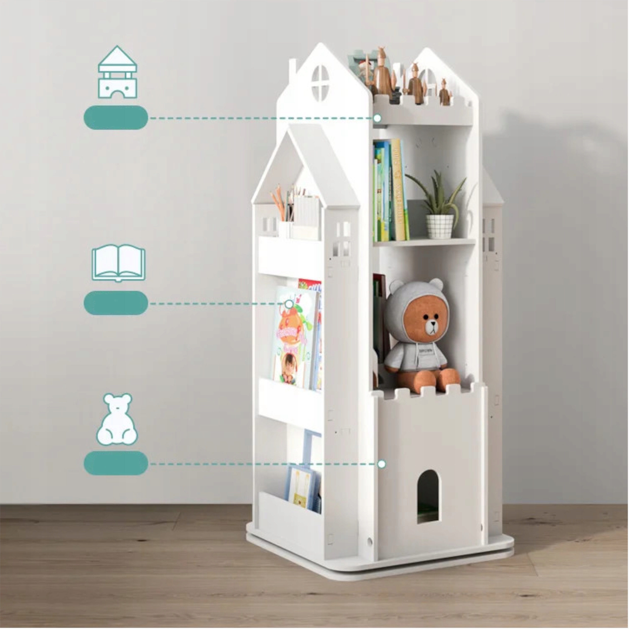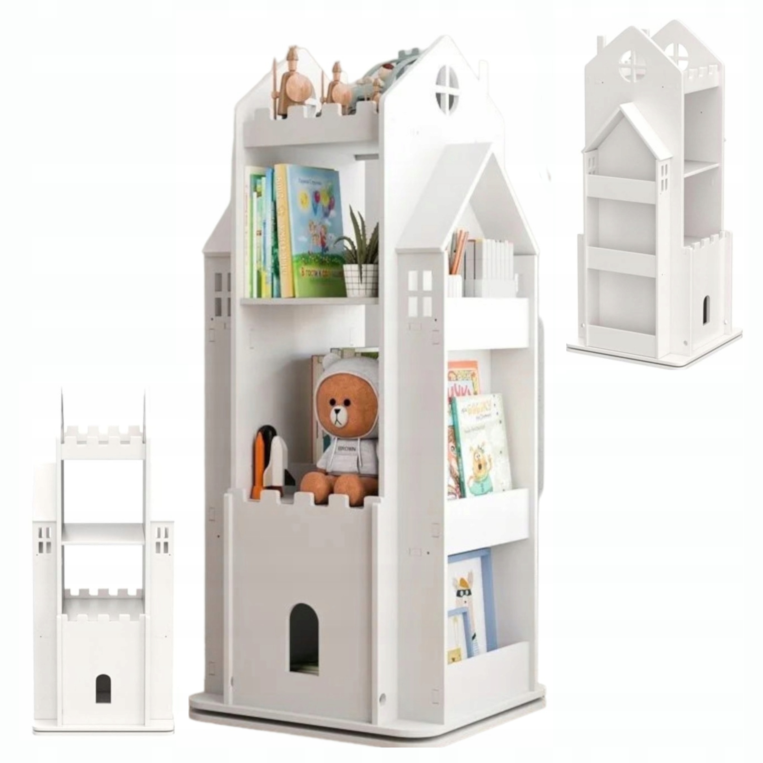 Regał na książki jest w uniwersalnym białym kolorze ze wzorem uroczego zamku, co daje mu nowoczesny wygląd, który idealnie sprawdzi się do każdego stylu pokoju.