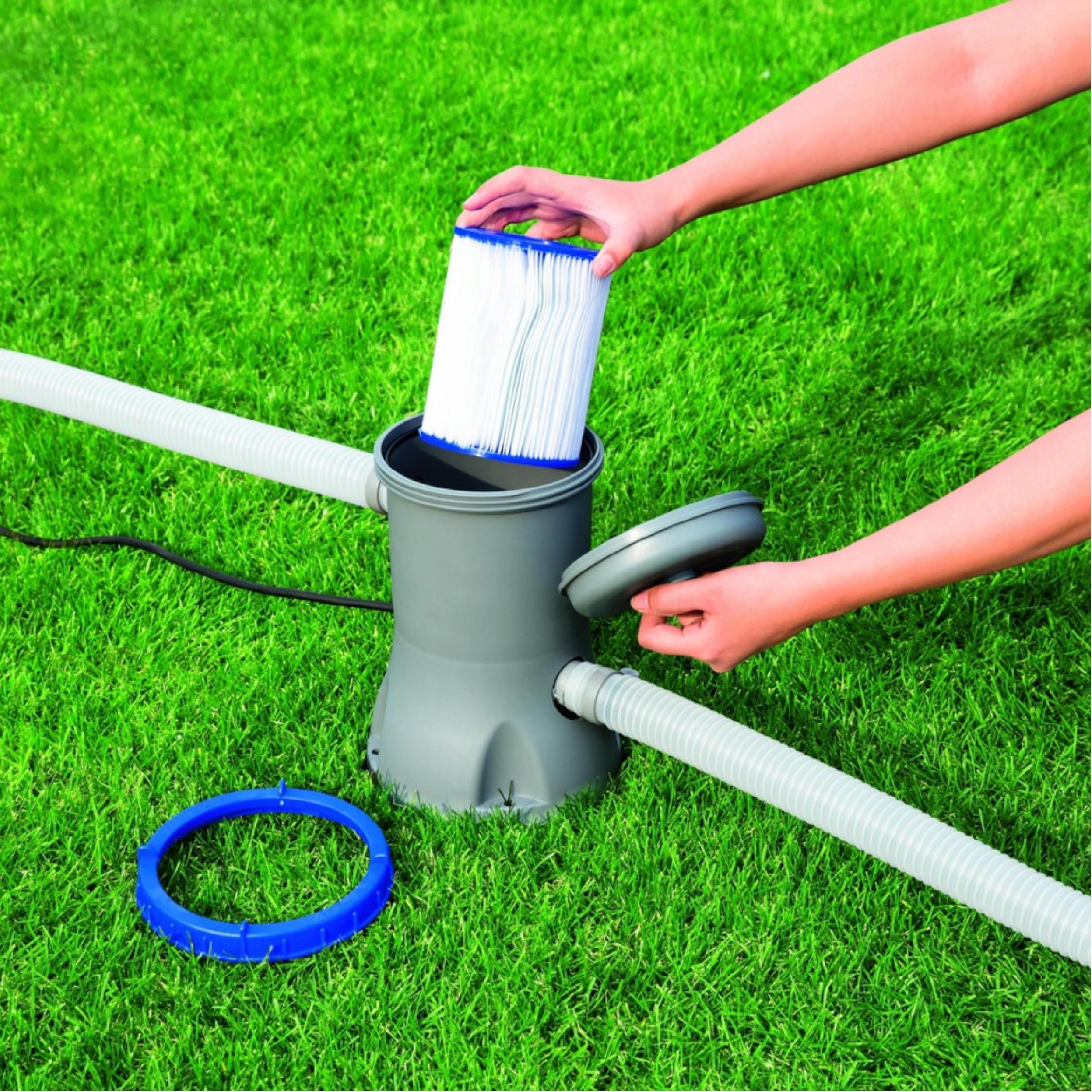 Filtr typu II nadaję się do zastosowania w pompach z firmy Bestway o przepustowości 2006 i 3028na godzinę. Wkład jest wykonany z włókna syntetycznego poliestrowego, który jest łatwy w czyszczeniu. Wystarczy tylko przepłukać filtr czystą wodą. Dzięki regularnym oczyszczaniu filtr jest wielokrotnego użytku i wystarczy na dłuższy czas. Zaleca się wymianę wkładu filtra na nowy co dwa tygodnie. Wymiana filtra nie zajmie dużo czasu, gdyż montaż jest łatwy w obsłudze.