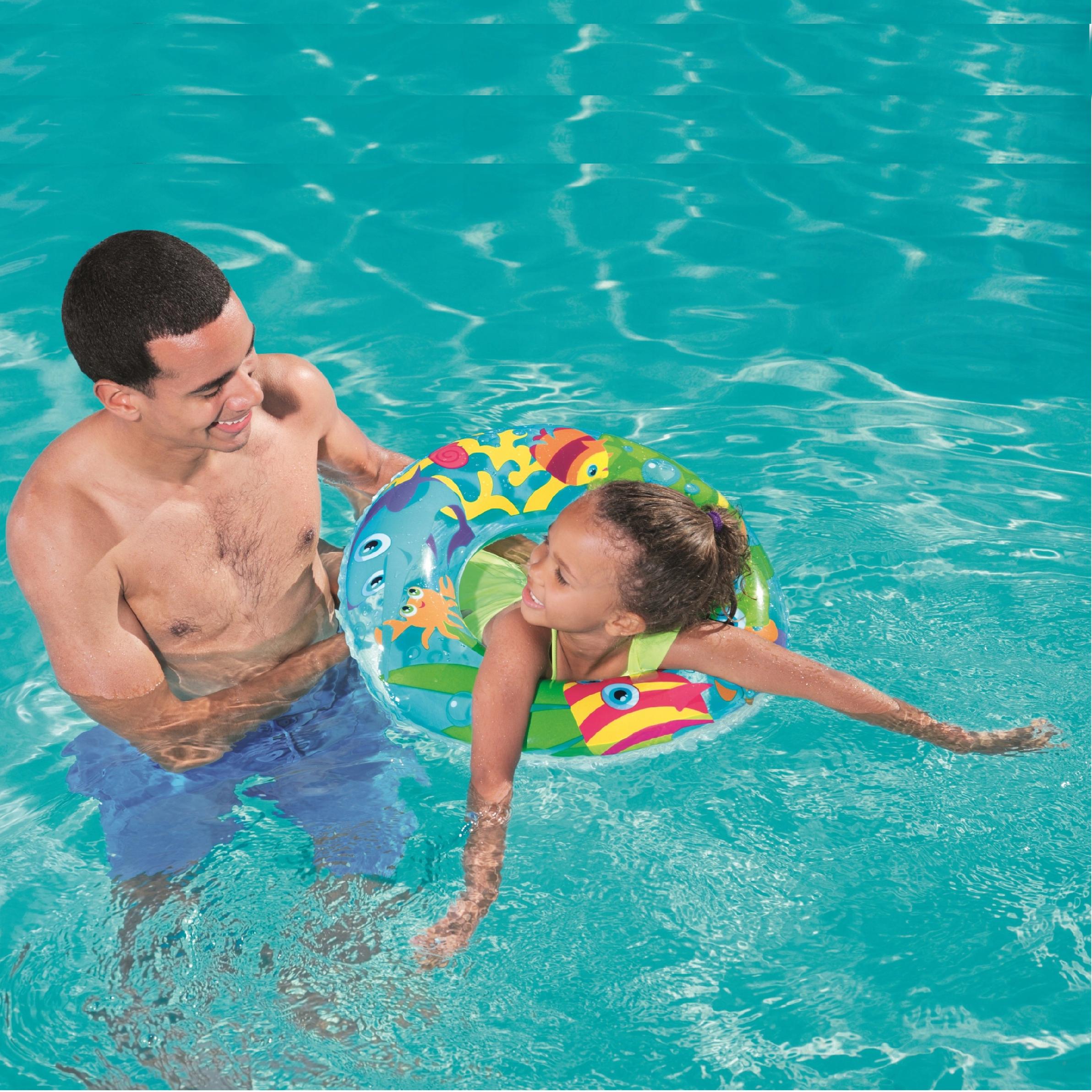 Kółko do pływania firmy Bestway z motywem zwierzątek na łące jest idealne dla dzieci w wieku przedszkolnym i wczesnoszkolnym. Wytrzymały materiał z tworzywa PCV jest przeznaczony do wielokrotnego napełniania i opróżniania. Koło niezbędne jest do pomocy przy pływaniu oraz zabaw w wodzie. Kółko świetnie nadaję się zarówno nad morze czy jezioro, ale także na basen lub zabawy w ogrodzie.