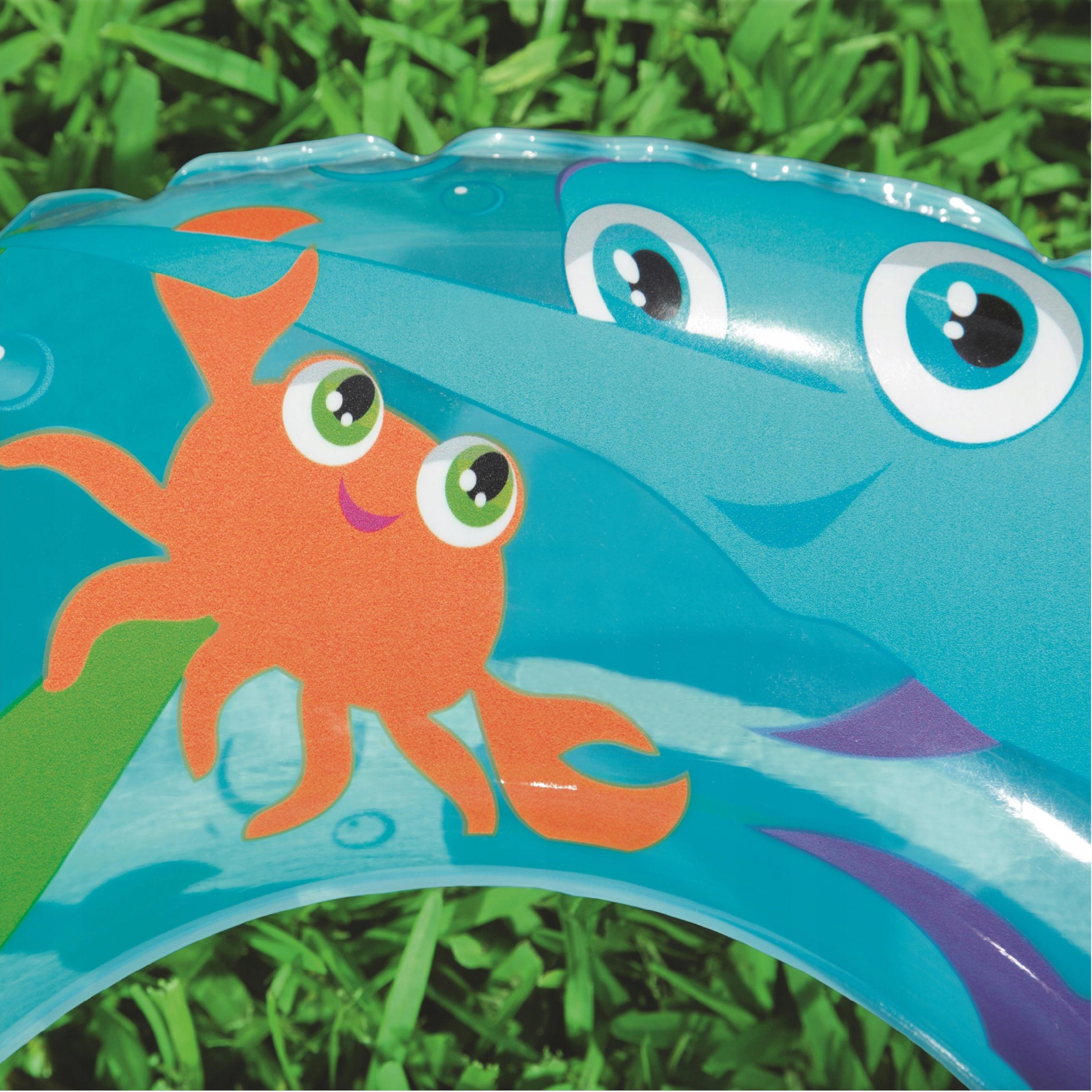 Zabawa w wodzie to jeden z najlepszych sposobów na zachęcenie Twojego dziecka do aktywnego spędzania czasu na świeżym powietrzu. Zapewnia także bezpieczeństwo podczas nauki pływania lub zabawy w wodzie. Pierwszy kontakt z wodą to niezwykłe przeżycie dla dziecka, dlatego warto zadbać o jego dobre samopoczucie. Nie musisz zbyt długo namawiać malucha, aby skorzystał z kółka, ponieważ wyróżnia się ciekawym i kolorowym motywem zwierzątek morskich.
