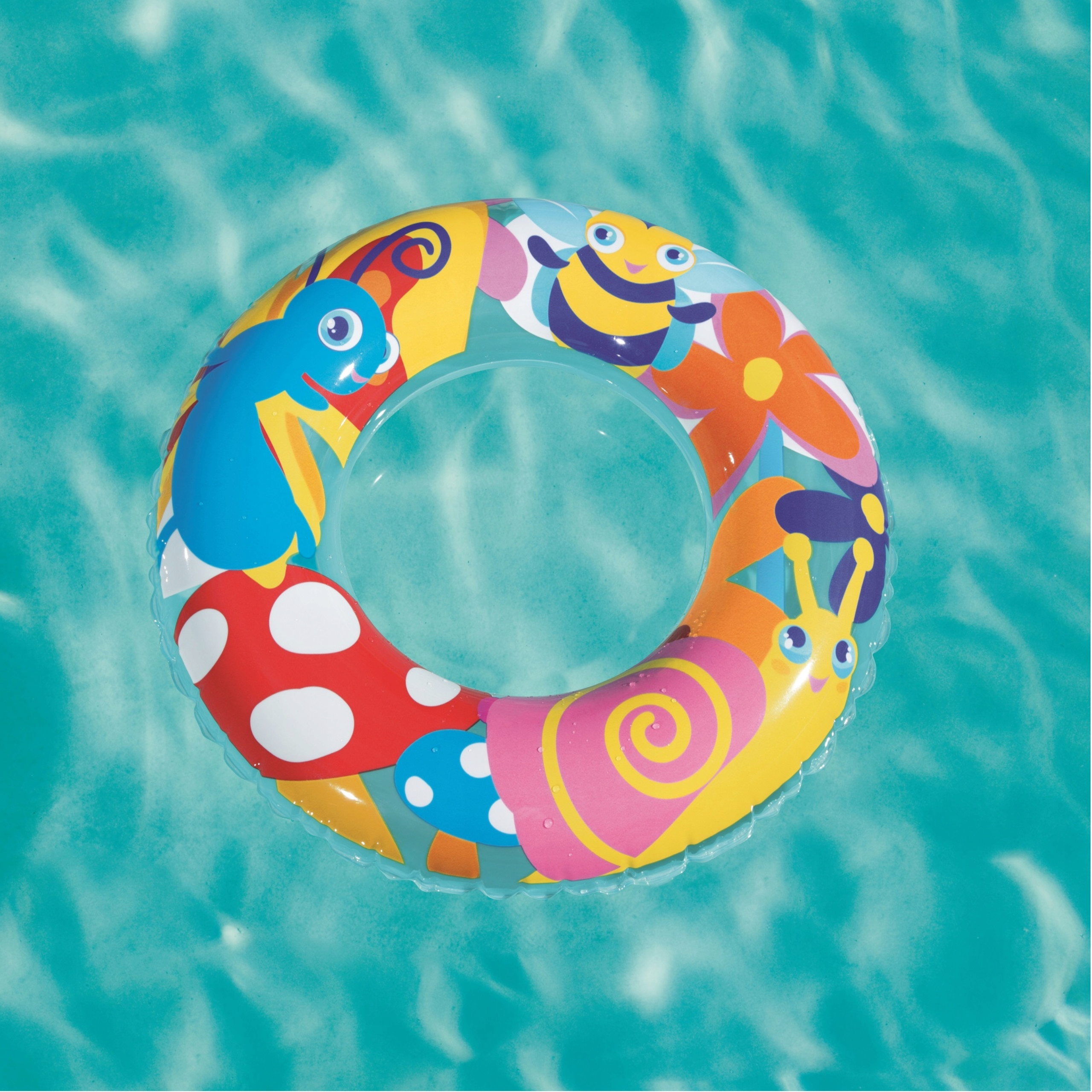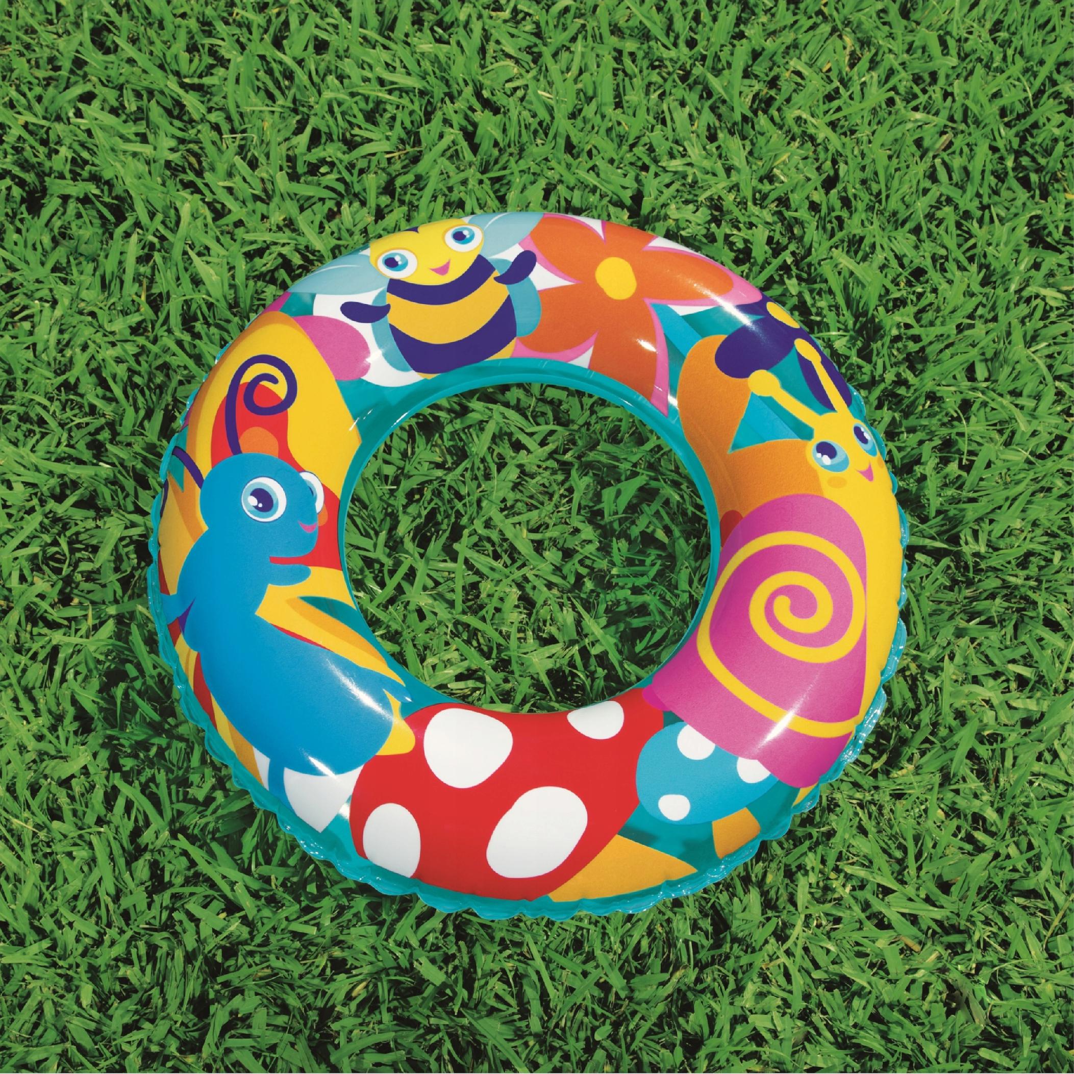 Kółko do pływania firmy Bestway z motywem zwierzątek na łące jest idealne dla dzieci w wieku przedszkolnym i wczesnoszkolnym. Wytrzymały materiał z tworzywa PCV jest przeznaczony do wielokrotnego napełniania i opróżniania. Koło niezbędne jest do pomocy przy pływaniu oraz zabaw w wodzie. Kółko świetnie nadaję się zarówno nad morze czy jezioro, ale także na basen lub zabawy w ogrodzie.