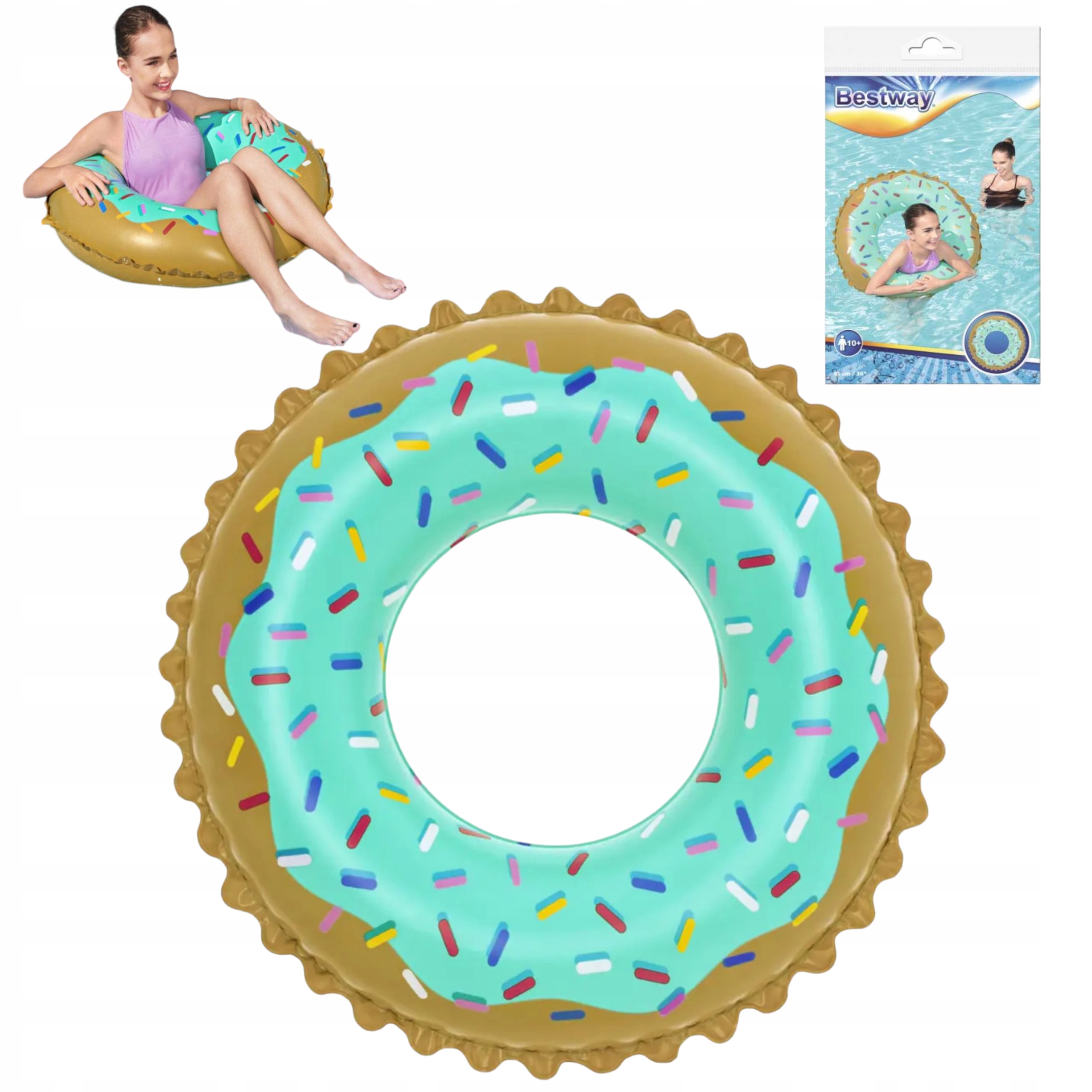 Koło do pływania firmy Bestway z motywem pączka jest idealne dla dzieci powyżej 10 roku życia i dla dorosłych. Wytrzymały materiał z tworzywa PCV jest przeznaczony do wielokrotnego napełniania i opróżniania. Kółko niezbędne jest do pomocy przy pływaniu oraz zabaw w wodzie. Świetnie nadaję się zarówno nad morze czy jezioro, ale także na basen lub zabawy w ogrodzie. Koło Bestway to wspaniała propozycja dla osób lubiących wygodę i relaks.