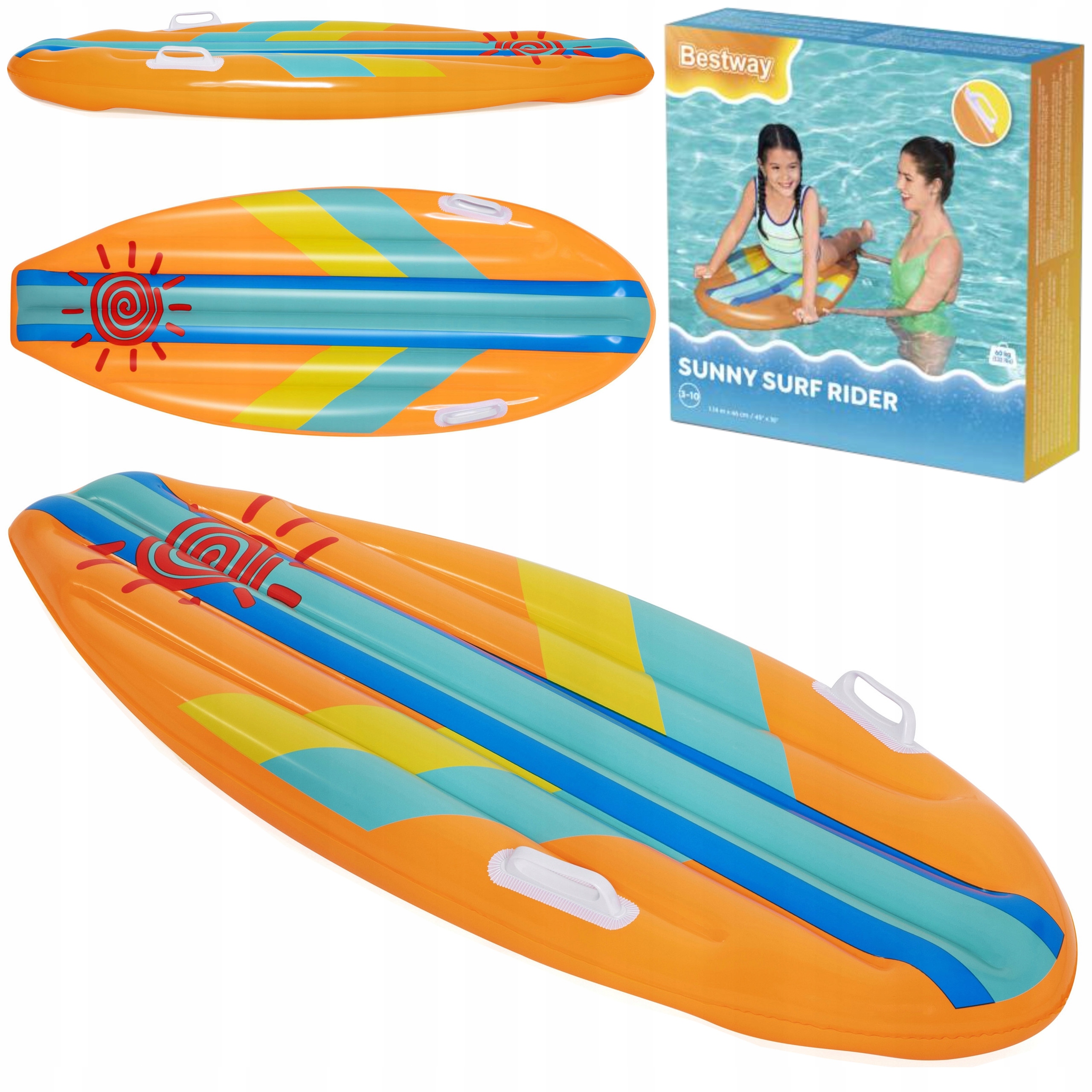 Deska żywą kolorystyką i wesołym wzorem przykuwa uwagę dziecka oraz zapewni świetną i bezpieczną zabawę w wodzie na dłuższy czas.