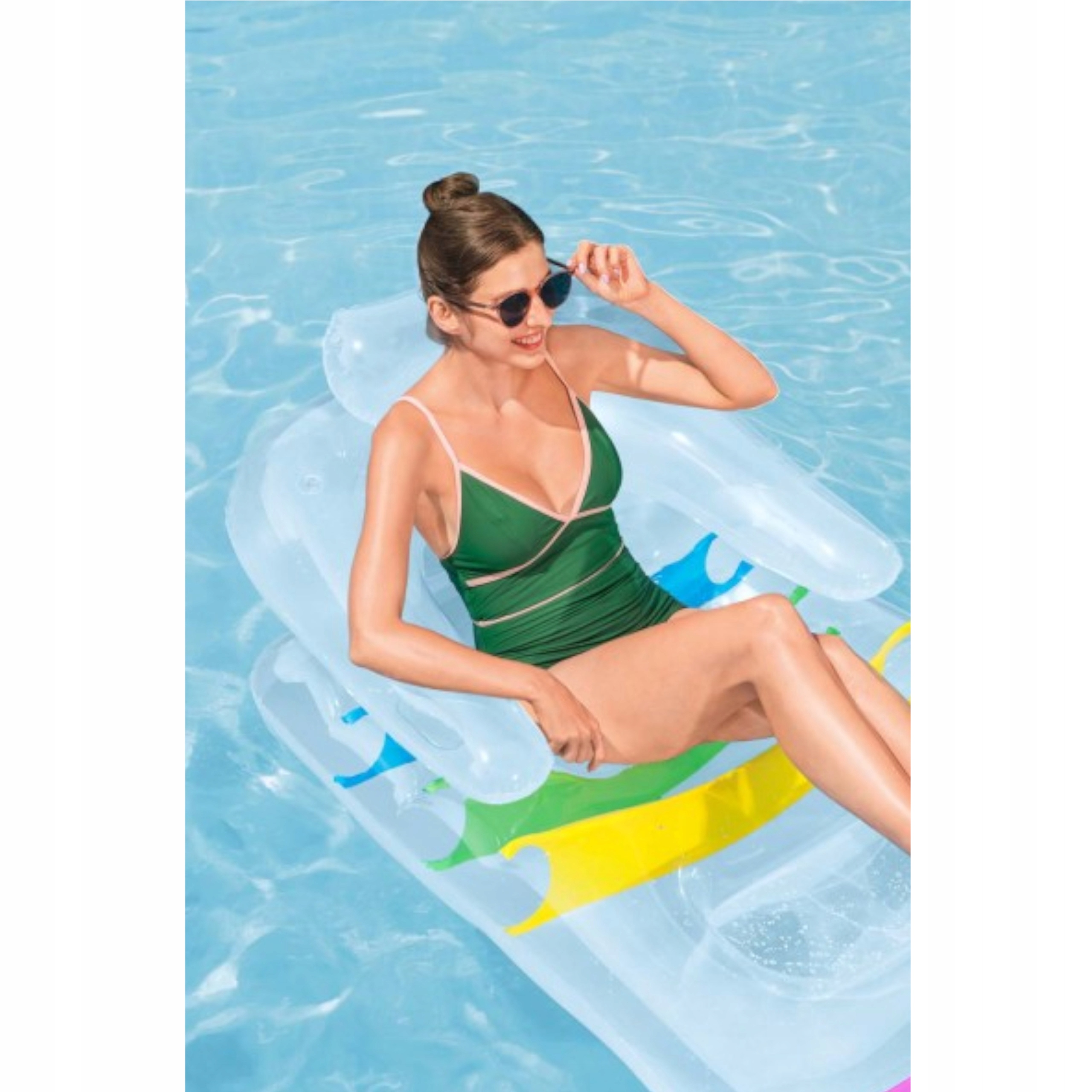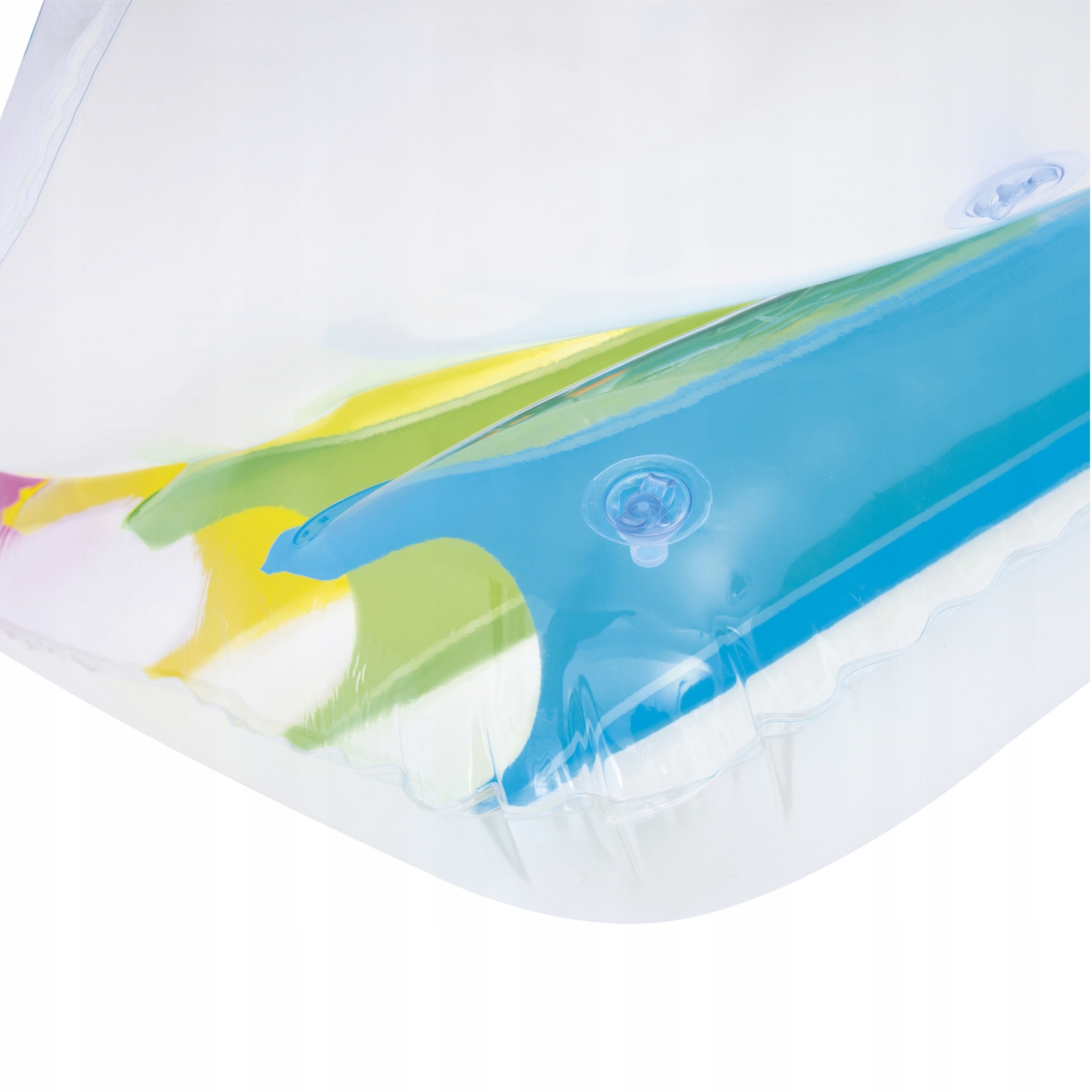 Nadmuchiwany materac świetnie sprawdzi się na wakacjach nad wodą, zarówno nad morzem czy jeziorem, ale także na basenie. Można skorzystać z niego nawet we własnym ogrodzie w upalne letnie dni. Dodatkowy komfort zapewnia duże dmuchane oparcie. Materac o pływania zapewnia wygodny odpoczynek, a dodatkową stabilność zapewnia dwukomorowa konstrukcja, umożliwiająca równomierne napompowanie. Wykonany jest z wytrzymałego materiału PCV, a w razie uszkodzenia, do zestawu dołączona jest łatka naprawcza. Nienapompowany materac zajmuje mało miejsca, dzięki czemu łatwo zabrać go w każde miejsce.