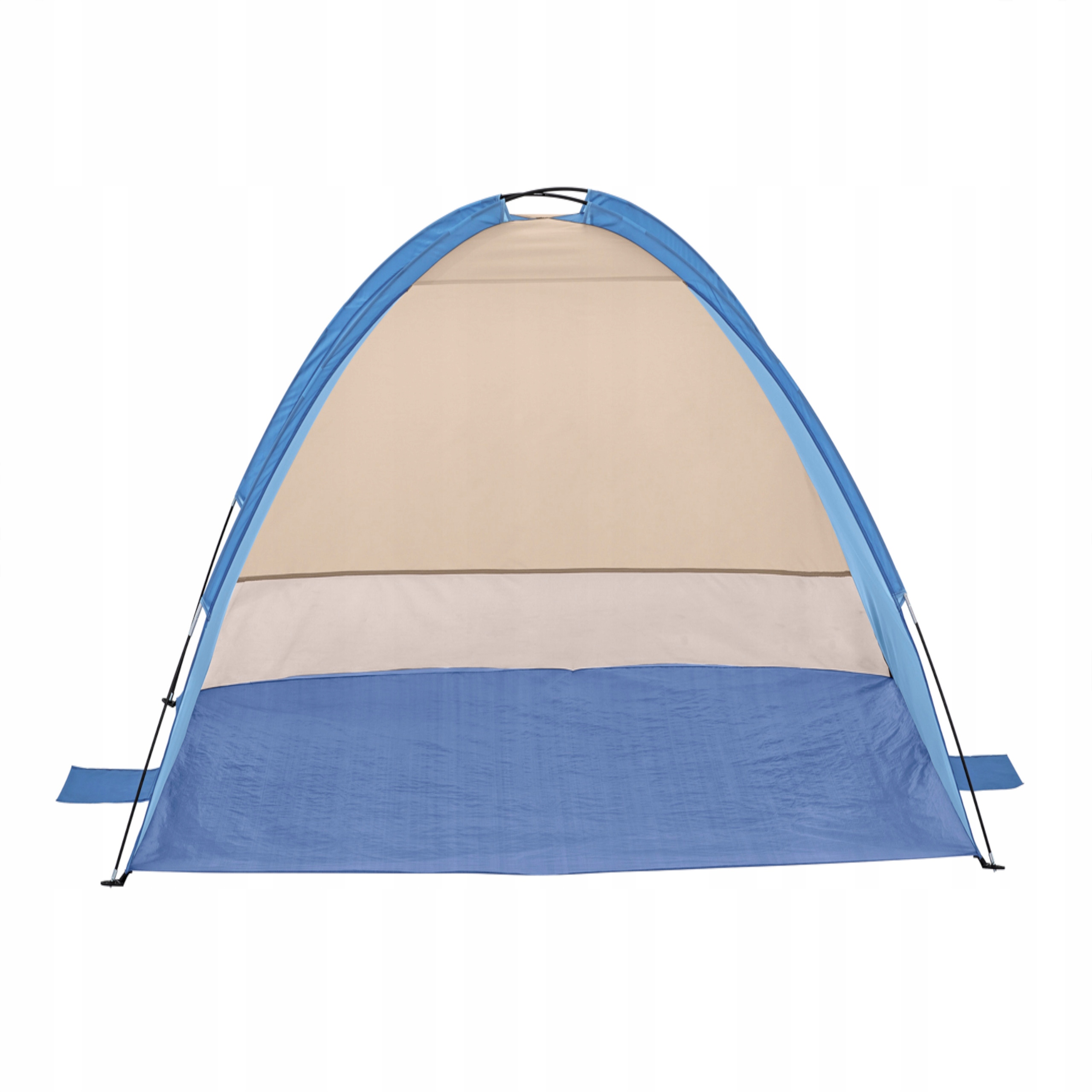 Jego wymiary oferują wystarczającą ilość miejsca dla dwóch dorosłych osób. Rozstawienie Namiotu jest bardzo proste i zajmuje około 10 min. Szybkość jego postawienia zapewni możliwość spędzenia większej ilości czasu na odpoczynku. Nie trzeba się również obawiać, że namiot zostanie zdmuchnięty podczas niespodziewanych podmuchów wiatru. Poręcze z włókna szklanego i 2 kieszenie na piasek zapewniają stabilność i bezpieczeństwo. W zestawie znajduje się również 4 śledzie, które można wbić w ziemię.