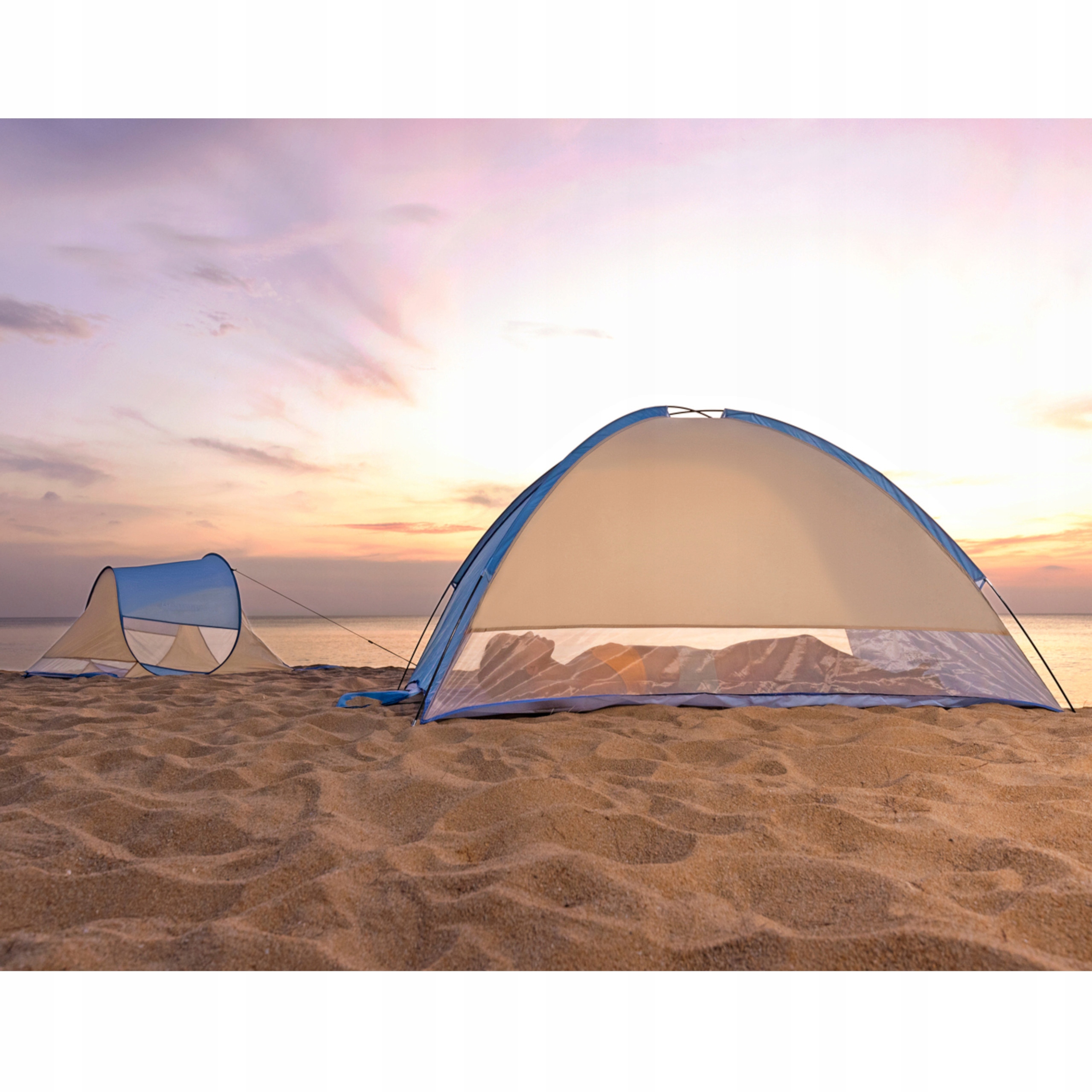 Ten poręczny i praktyczny namiot to rozwiązanie dla osób chcących spędzić komfortowo czas na plaży czy biwaku.