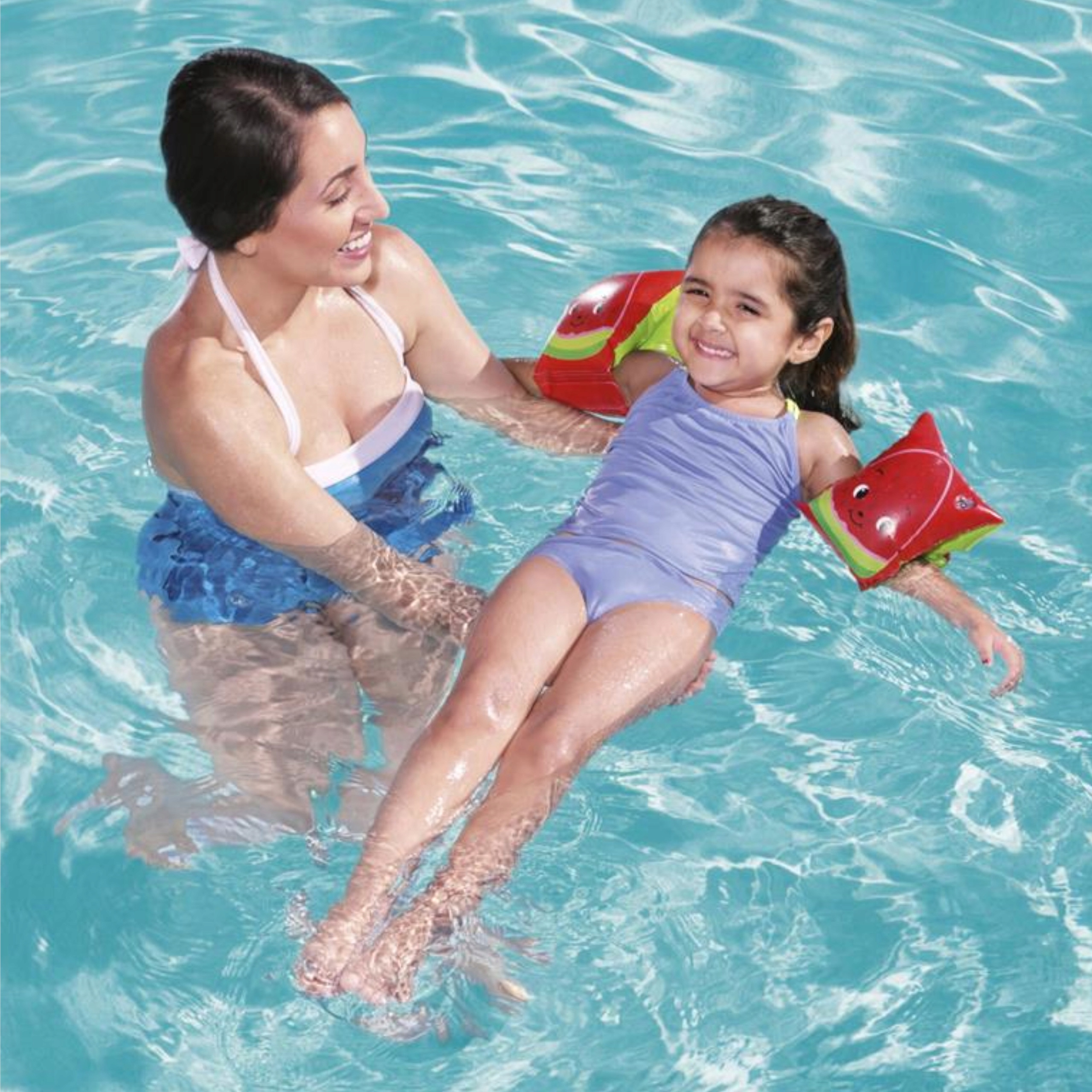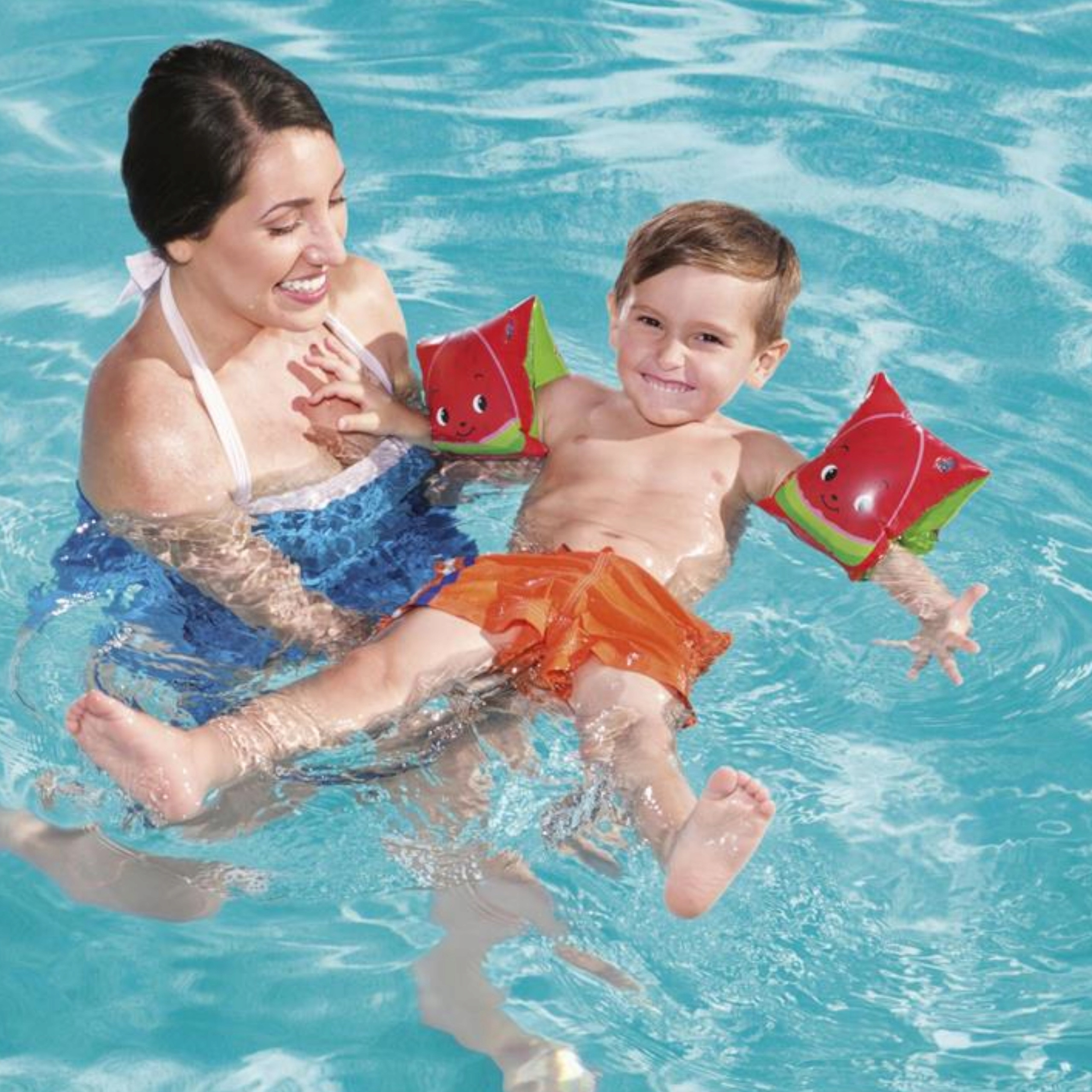 Rękawki do pływania firmy Bestway z wzorem arbuza to idealne rozwiązanie dla osób chcących w bezpieczny sposób rozpocząć pierwszy kontakt z wodą swojego dziecka. Dmuchane rękawki ułatwiają utrzymanie się na wodzie nie krępują ruchów dziecka dzięki czemu zapewniają bezpieczeństwo i komfort podczas zabaw w wodzie. Rękawki do pływania to wspaniała pomoc dla rodziców, którzy chcą rozpocząć naukę pływania dziecka już od najmłodszych lat.