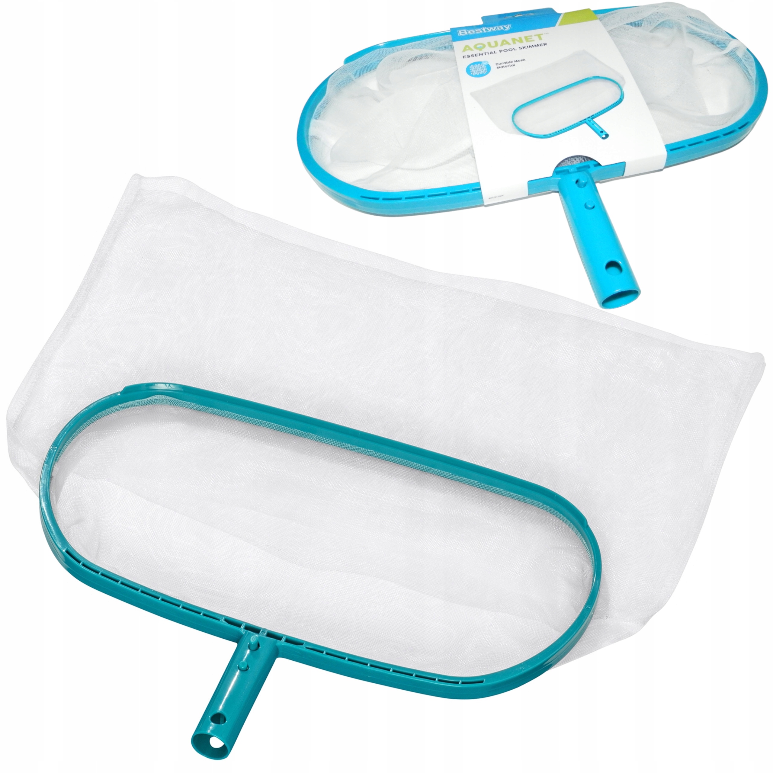 Do siatki można dołączyć każdy kij o średnicy 30 mm, umożliwia to zebranie zanieczyszczeń z całej powierzchni basenu. Dzięki temu nie musimy wchodzić do wody, aby wyłowić nieczystości. Zbierak wykonany jest z tworzywa sztucznego i siatki o gęstych oczkach, które są odporne na chlor i promienie UV.