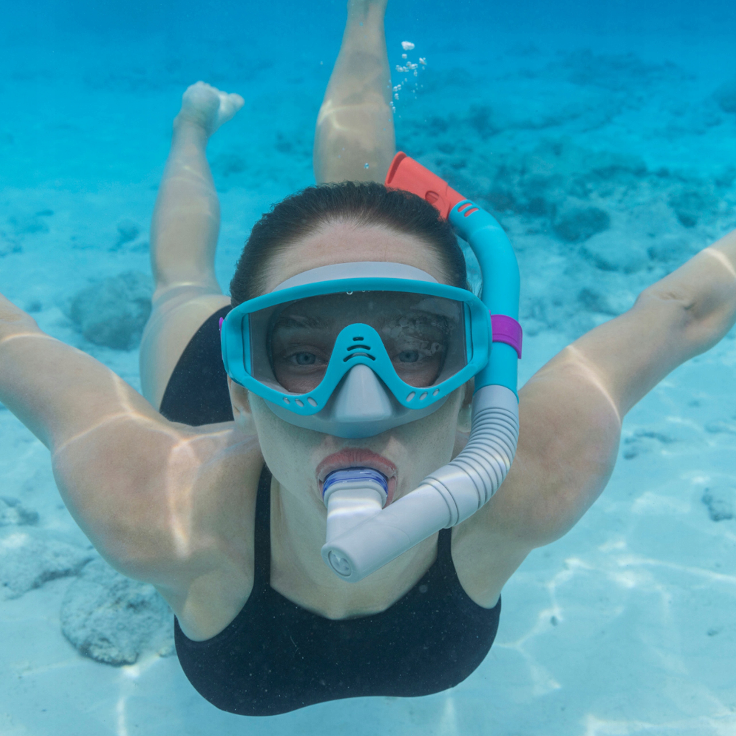 Zestaw maska i fajka idealne rozwiązanie dla osób chcących zapewnić swoim nastoletnim pociechom niezapomnianą i bezpieczną zabawę w wodzie lub samemu zanurzyć się w morski świat.