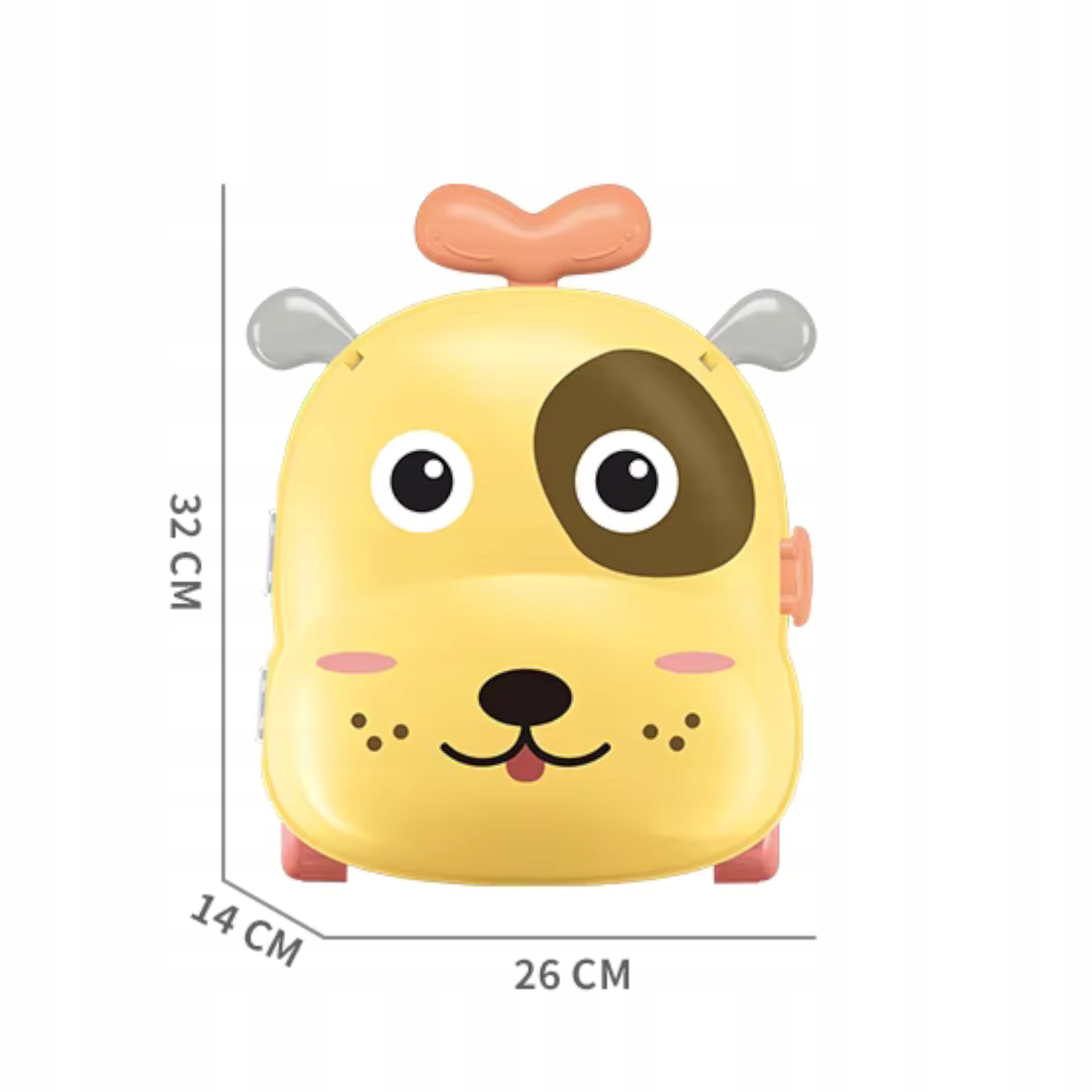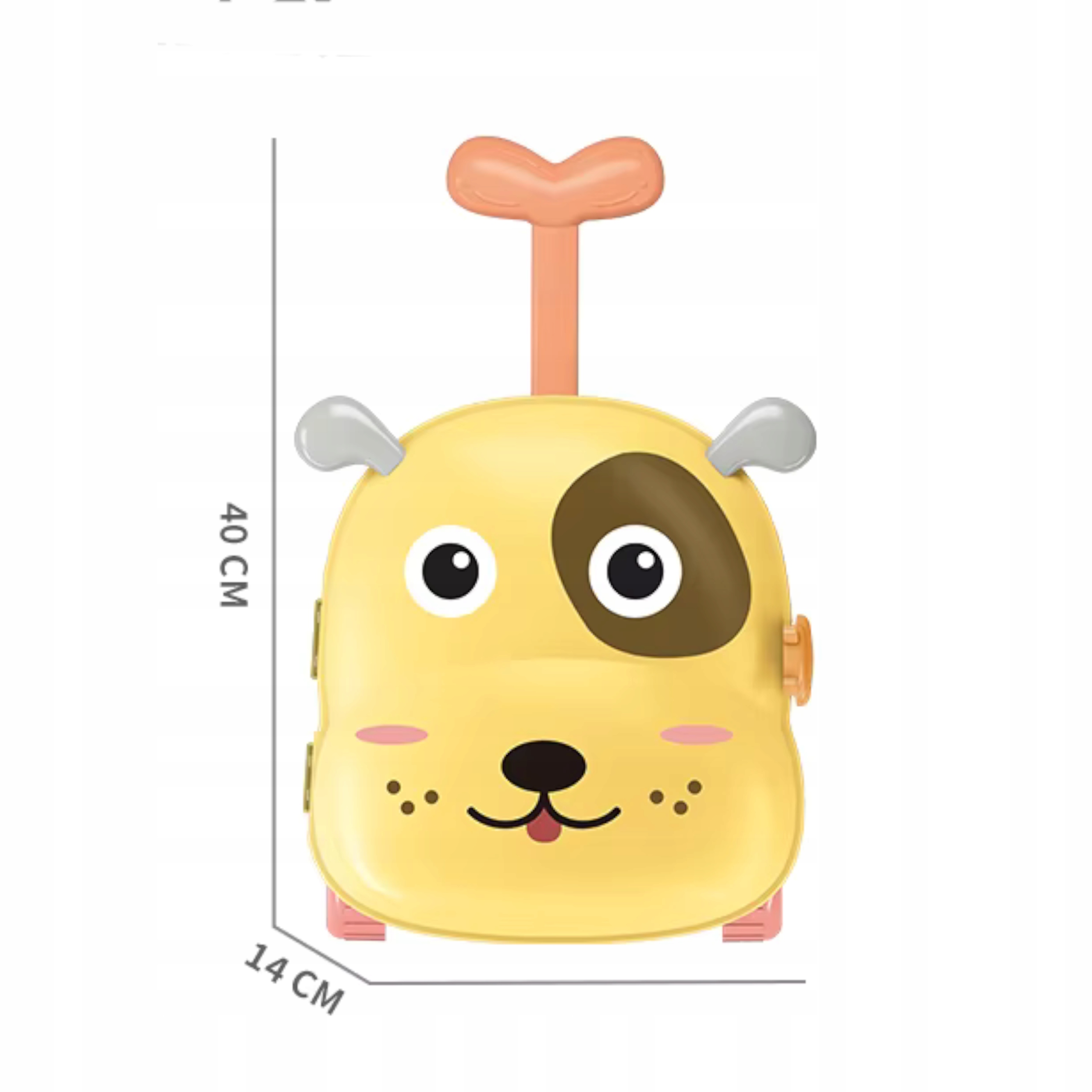 ✅ Walizka z wzorem pieska posiada regulowaną rączkę, dostosowaną wymiarami do dzieci, pozwoli na wygodne korzystanie z zabawki