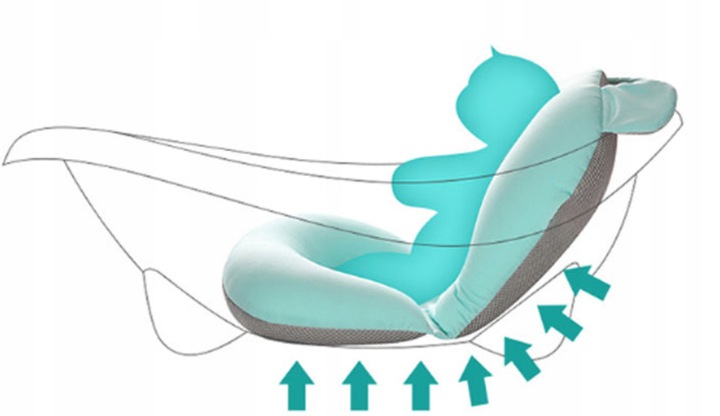 Ergonomiczna wkładka/fotelik do kąpieli w postaci miękkiej specjalistycznej poduszki dedykowany jest specjalnie dla noworodków od pierwszych dni życia.