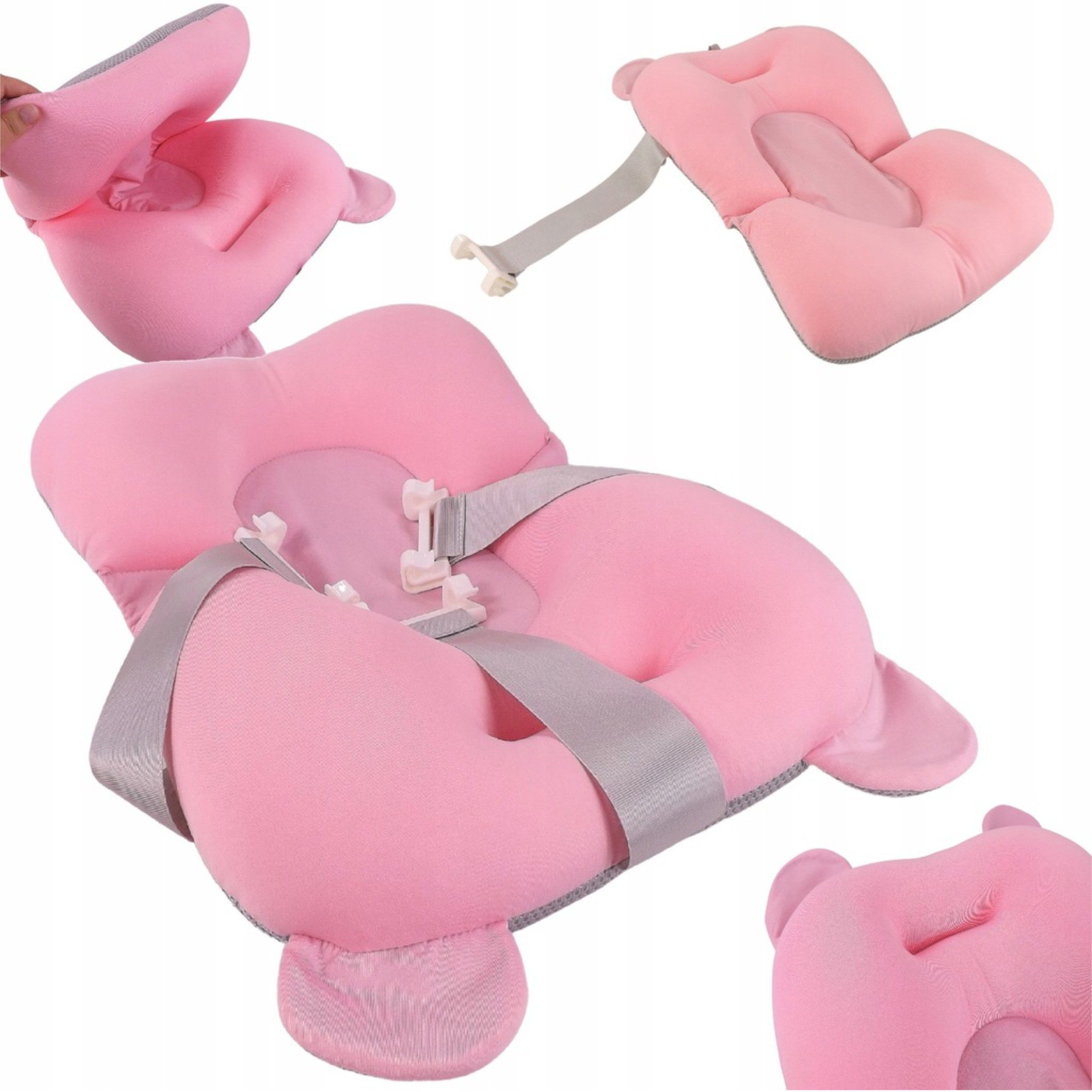 - miękki i przyjemny w dotyku fotelik podtrzymuje maluszka podczas kąpieli