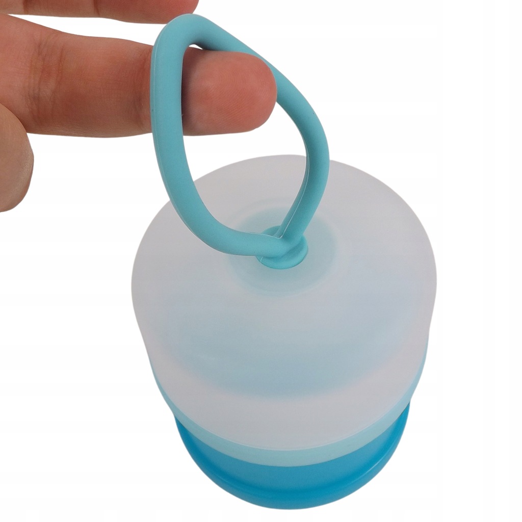 Komory nakładamy jedną na drugą i zakręcamy. Specjalny dozownik w pokrywie ułatwia aplikację mleka. Pojemnik na samej górze posiada sylikonowy elastyczny uchwyt, który ułatwia transportowanie i umożliwia powieszenie pojemnika.