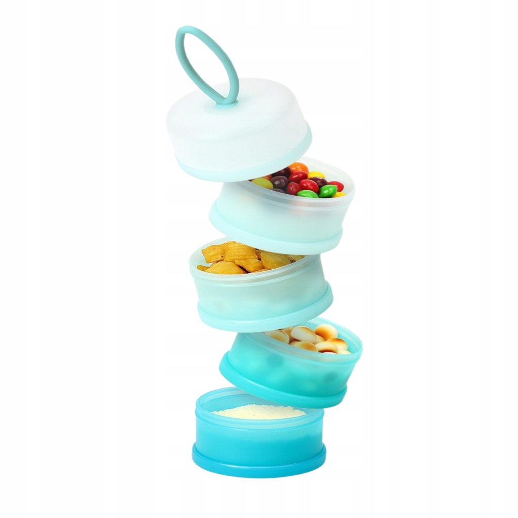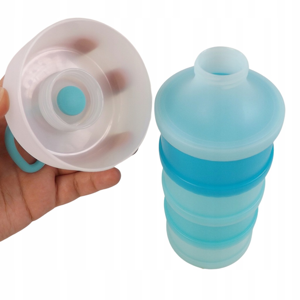 Przenośne pudełko pojemnik na mleko w proszku znacznie ułatwia karmienie dzieci, gdy jest się poza domem. Pozwala na odmierzenie pokarmu na cztery karmienia - w jednej komorze może zmieścić się do 10 miarek mleka w proszku, dzięki temu można przygotowywać pokarm na bieżąco.