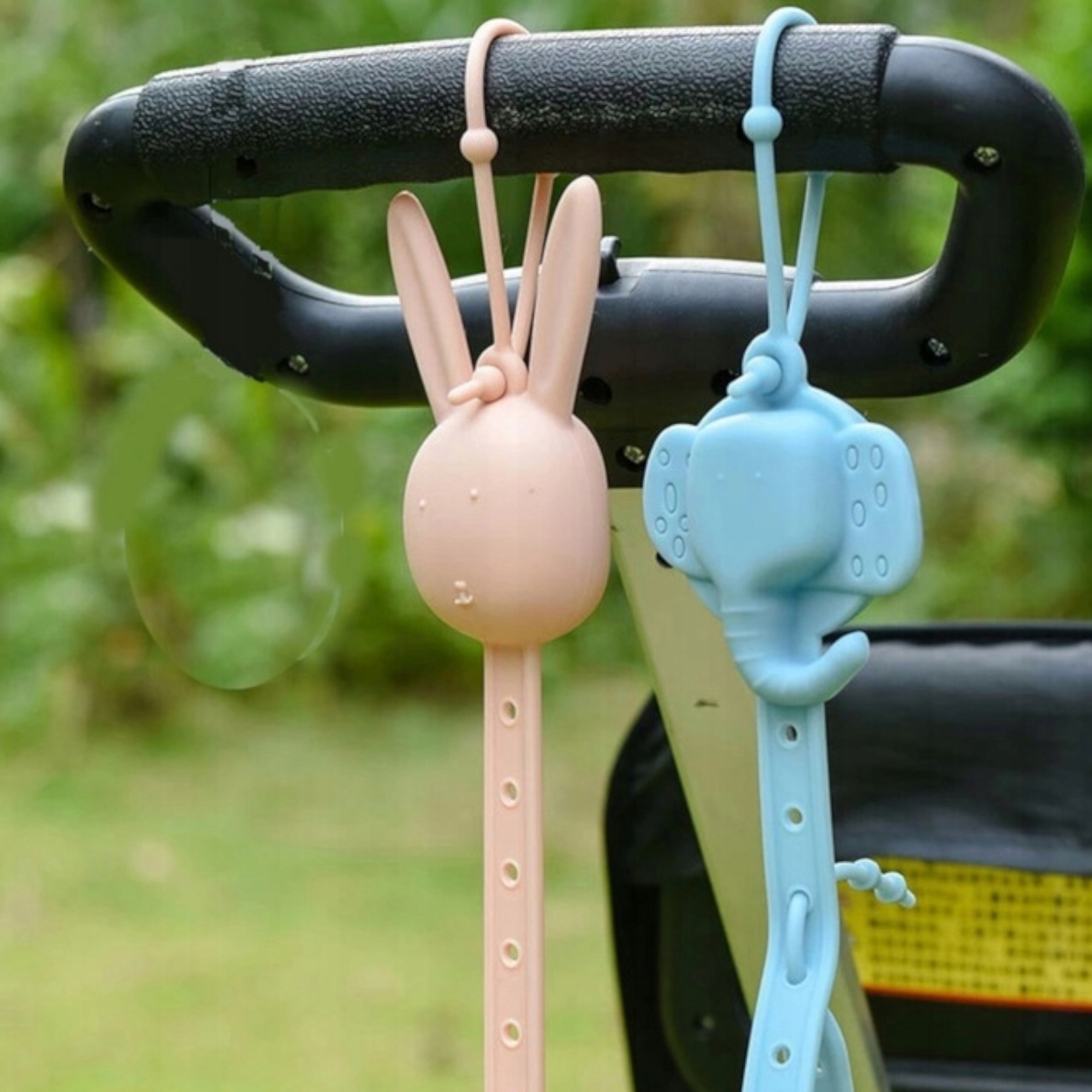 - Na górze głowy królika znajduję się uchwyt, którym można zamontować zawieszkę na wózku.
