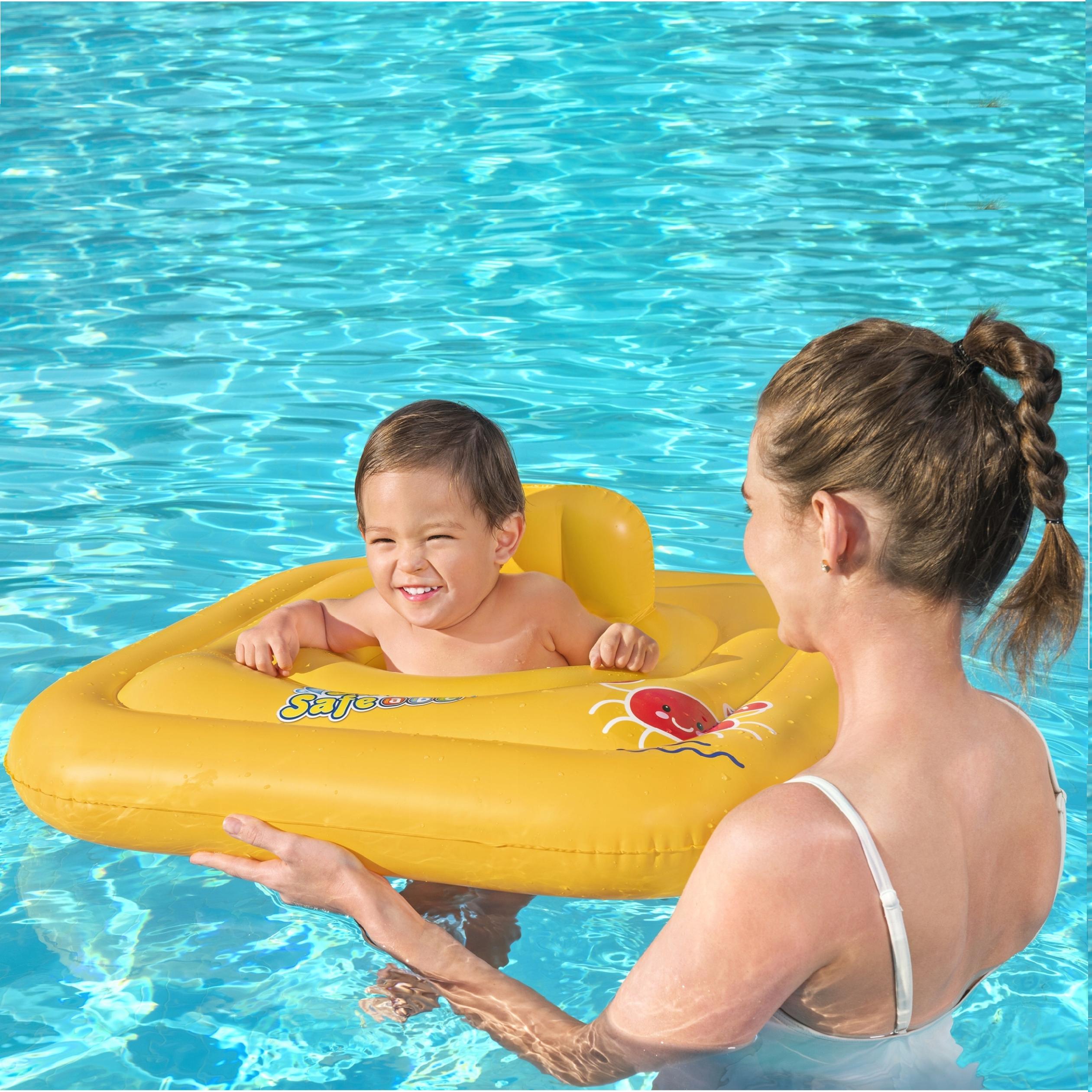 Fotelik do pływania to idealne rozwiązanie dla osób chcących w bezpieczny sposób rozpocząć pierwszy kontakt z wodą swojego maluszka. Kwadratowa budowa gwarantuje stabilność i dobrą wyporność na wodzie, a siedzisko w kształcie majteczek z otworami na nóżki zapewnia dziecku wygodę i zapobiega wywróceniu się. Kółko wyposażone jest w nadmuchiwane oparcie, które dodatkowo zapewni komfort podczas pierwszych zabaw w wodzie. Nadmuchiwany fotelik to wspaniała pomoc dla rodziców, którzy chcą rozpocząć naukę pływania dziecka już od najmłodszych lat.