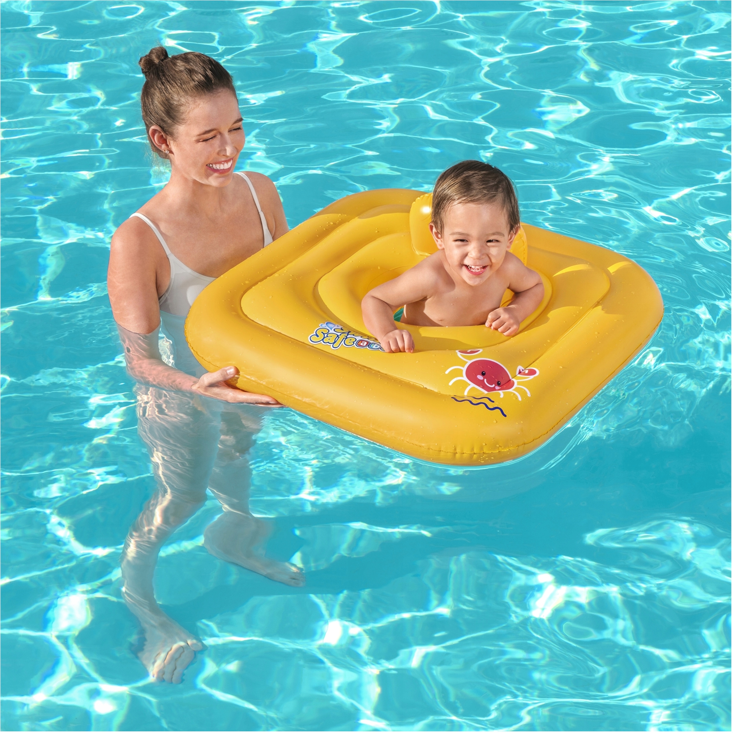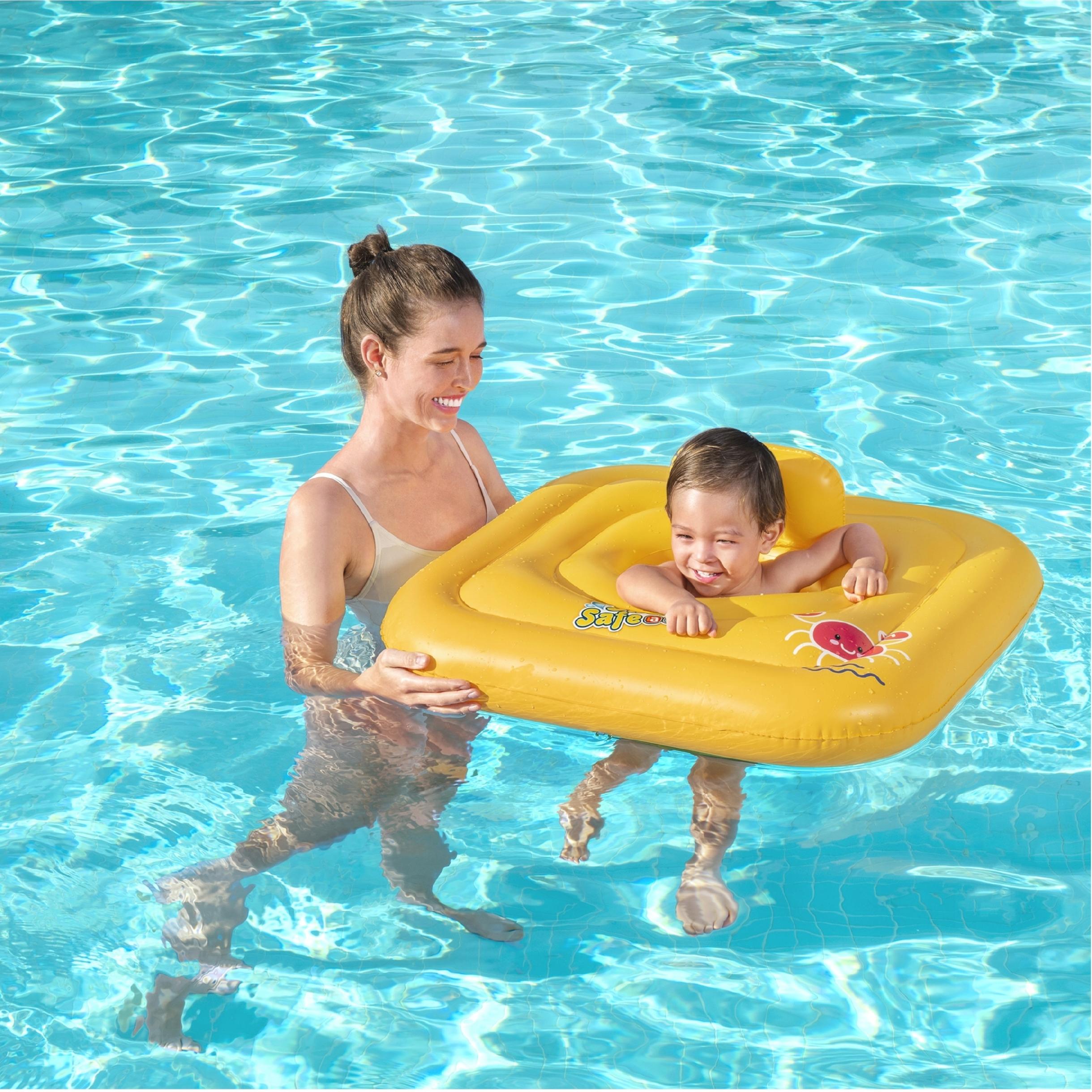 Fotelik do pływania sprawdzi się doskonale zarówno w basenie, jak i nad morzem czy jeziorem, ale także w przydomowym basenie w letnie dni. Kwadratowa budowa fotelika zapewnia dobrą wyporność i stabilność, dzięki czemu dziecko utrzymuje się równowagę i bezpiecznie unosi się na wodzie. Dodatkowym zabezpieczeniem maluszka są majteczki, które utrzymują dziecko i nie pozwalają na wywrócenie się. Nadmuchiwane kółko jest także wyposażone w specjalne zawory uniemożliwiające przypadkowe spuszczę nie powietrza. Żywe kolory i wesoły obrazek czerwonego kraba przyciągają uwagę dziecka i zachęcają do spędzania czasu w wodzie. Fotelik dmuchany jest idealny dla rodziców ceniących bezpieczeństwo i wygodę maluszka podczas pierwszych chwil w wodzie.