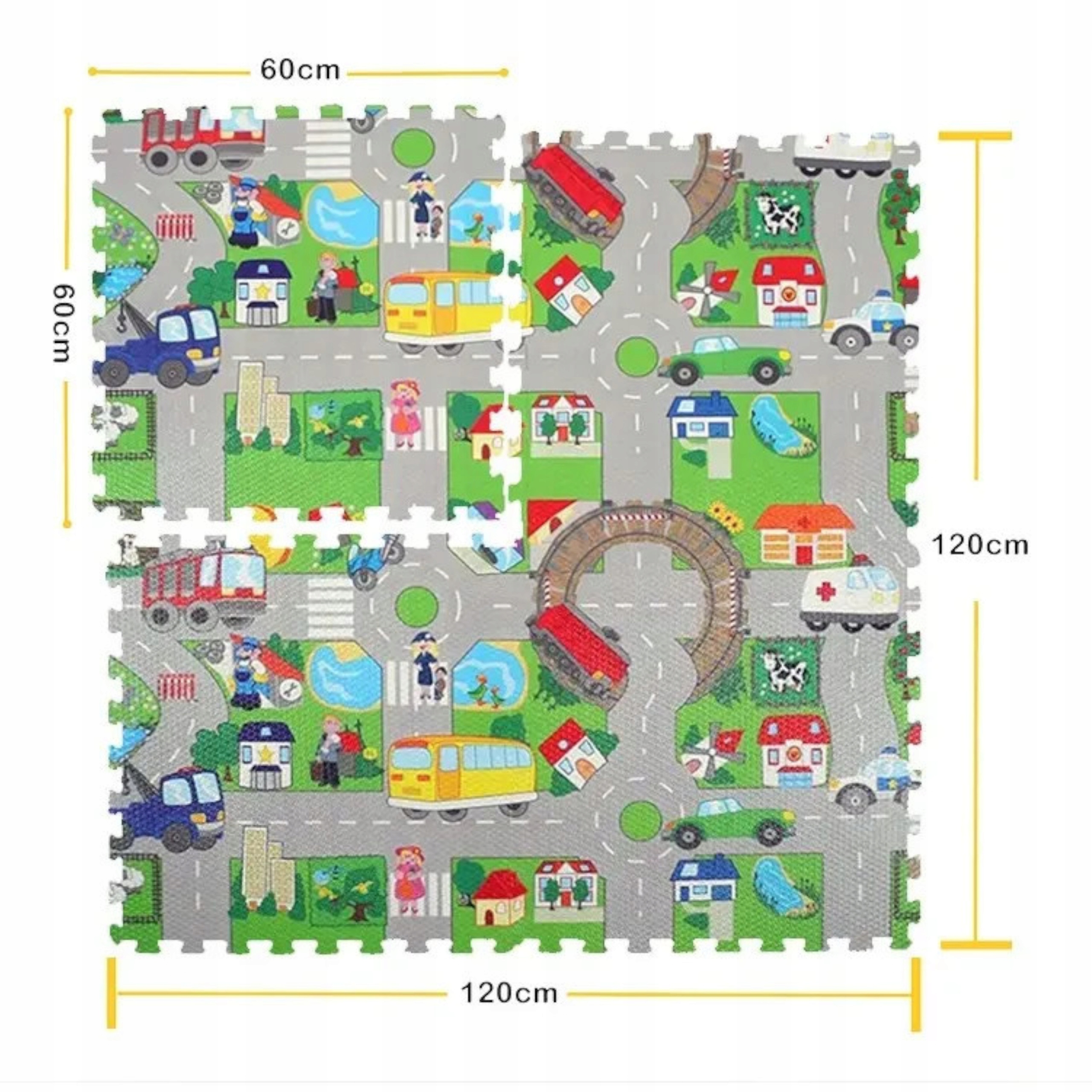 Twoja pociecha odkryje i zapozna się z różnymi pojazdami i sytuacjami drogowymi oraz życiem w mieście. Puzzle nie tylko dostarczają rozrywki, ale także nauczą podstawowych zasad bezpieczeństwa na drodze – poprzez odgrywanie scenek np. zabawkami. Puzzle piankowe nie tylko rozwijają zdolności manualne malucha, ale także wprowadzają go do świata ruchu drogowego w sposób, który jest dostosowany do jego wieku.