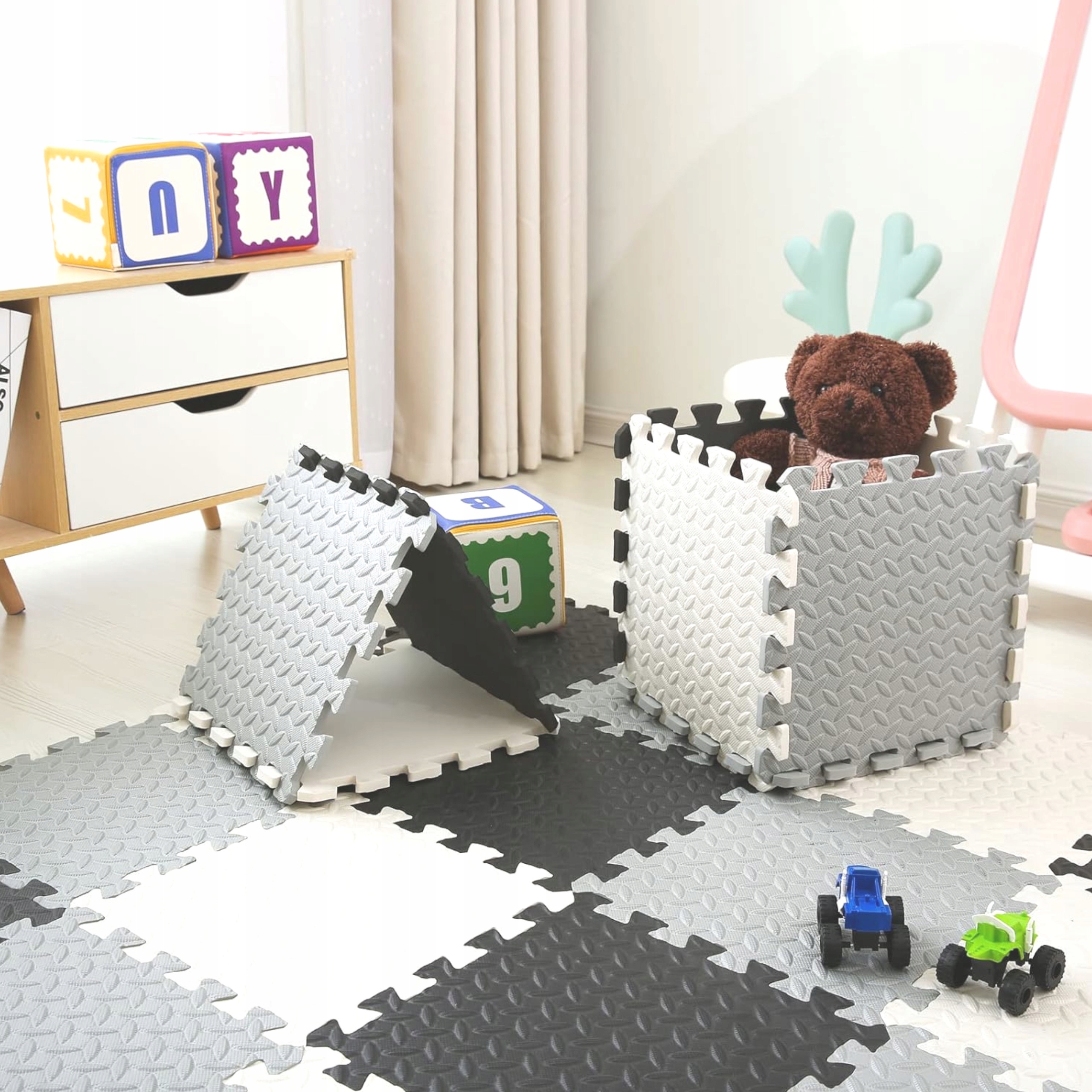Puzzle piankowe podłogowe mata eva szary biały czarny