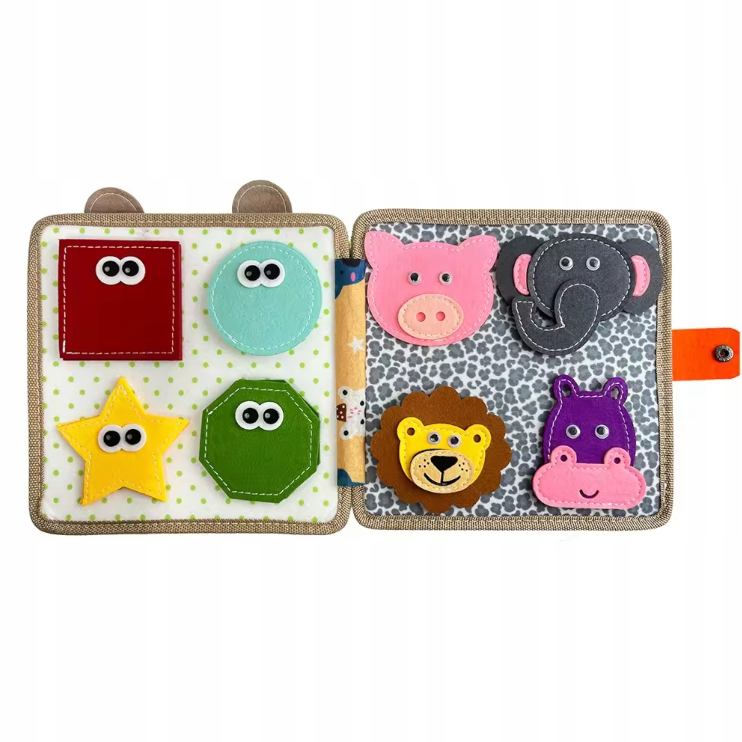 Edukacyjna filcowa książeczka z odczepianymi na rzep elementami przedstawiającymi zwierzątka, figury geometryczne, pojazdy oraz elementy przyrody to ciekawa nauka poprzez zabawę. Książeczka pomoże w rozwoju umiejętności rozróżniania kolorów, kształtów i nazw zwierzątek. Doskonale sprawdzi się na prezent dla dzieci w wieku przedszkolnym i nie tylko.
