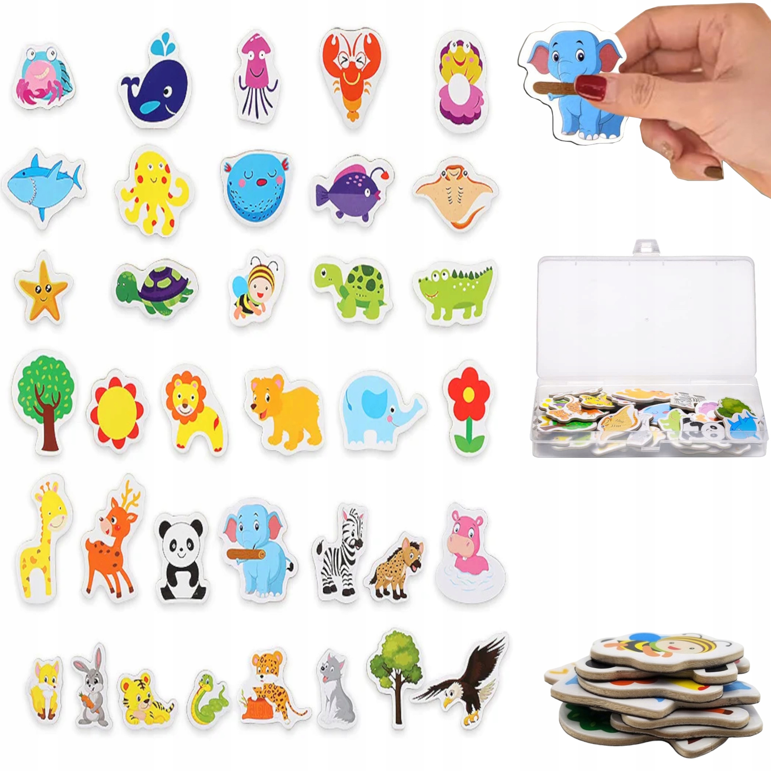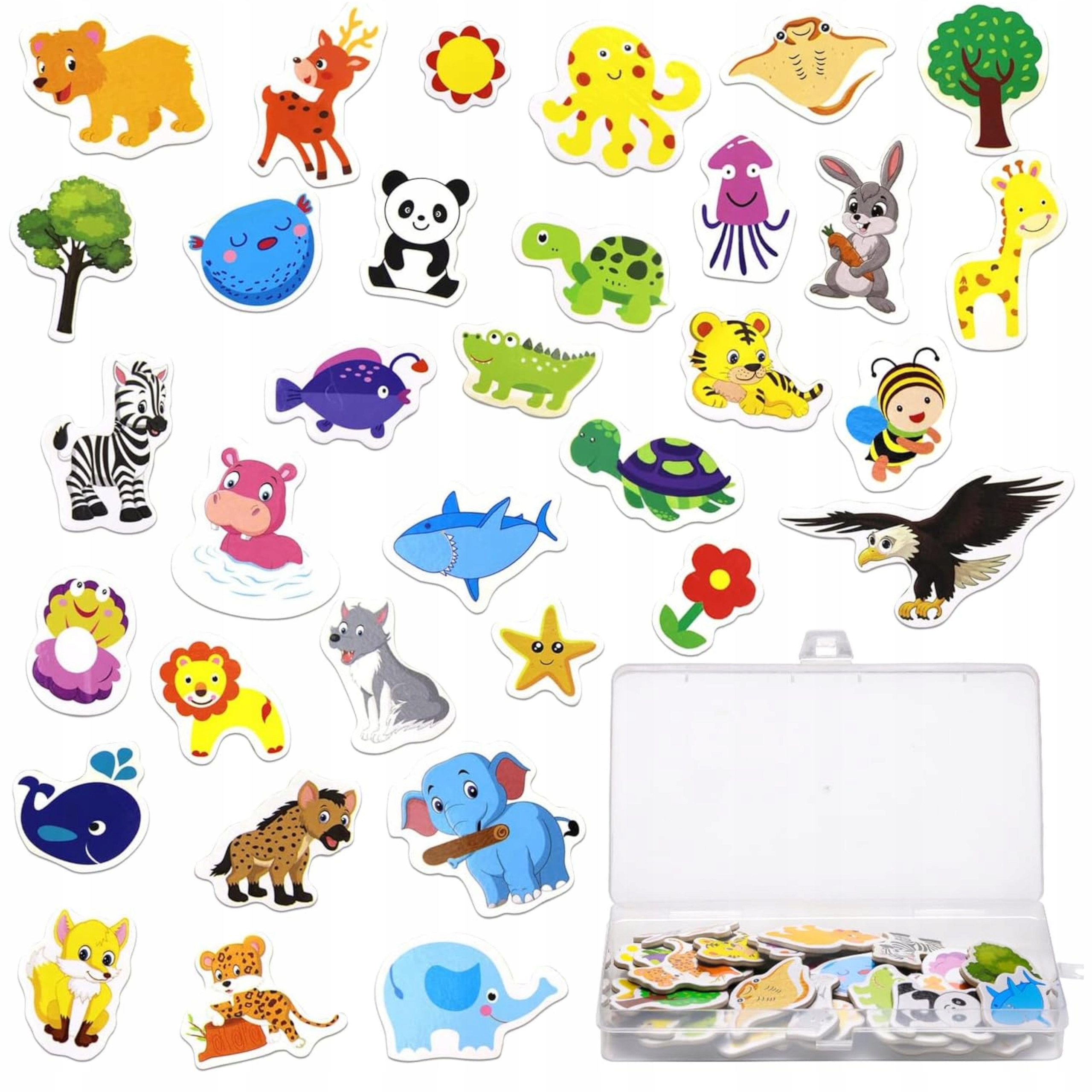 Magnesy na lodówkę zwierzęta piankowe 36 elementów plastikowy pojemnik dla dzieci