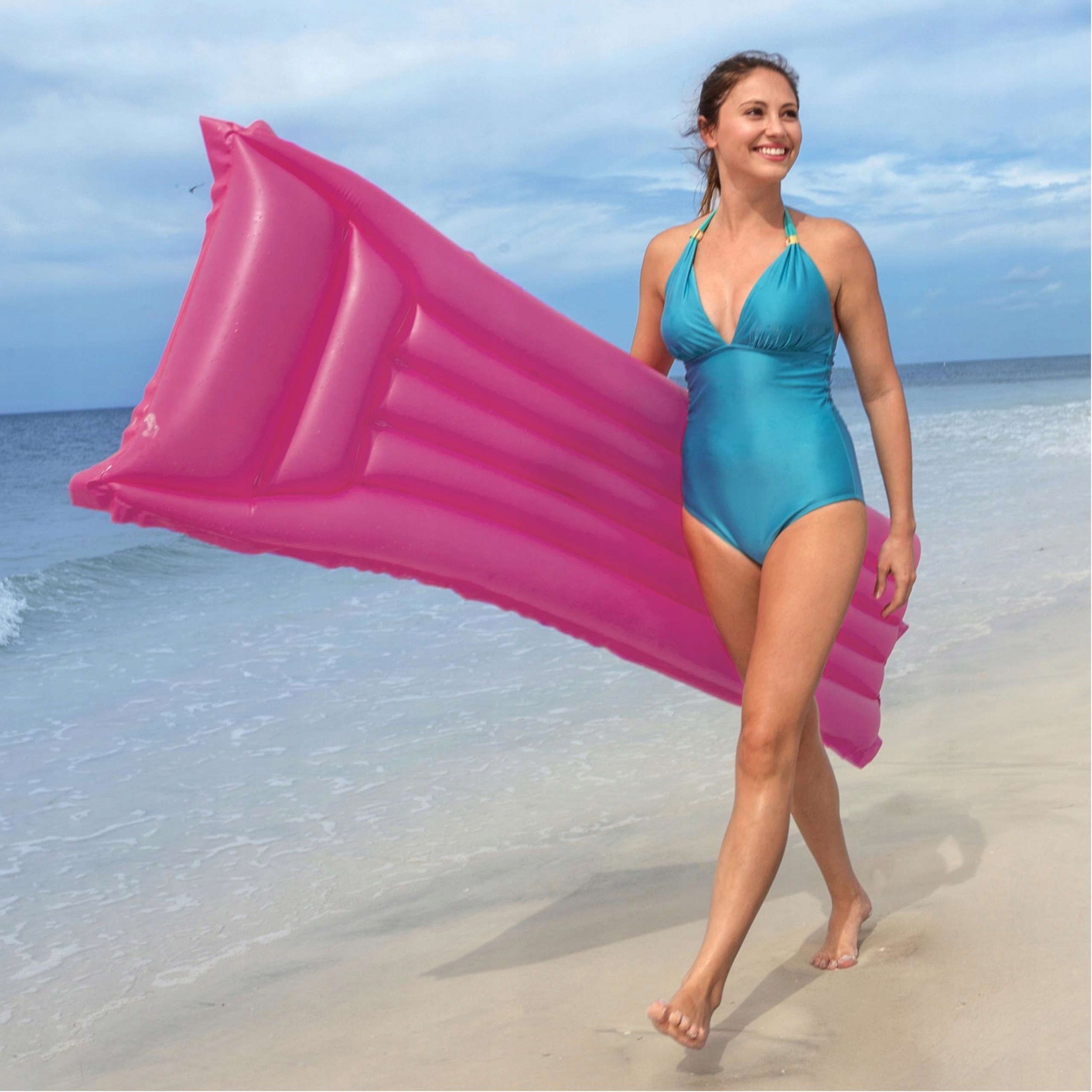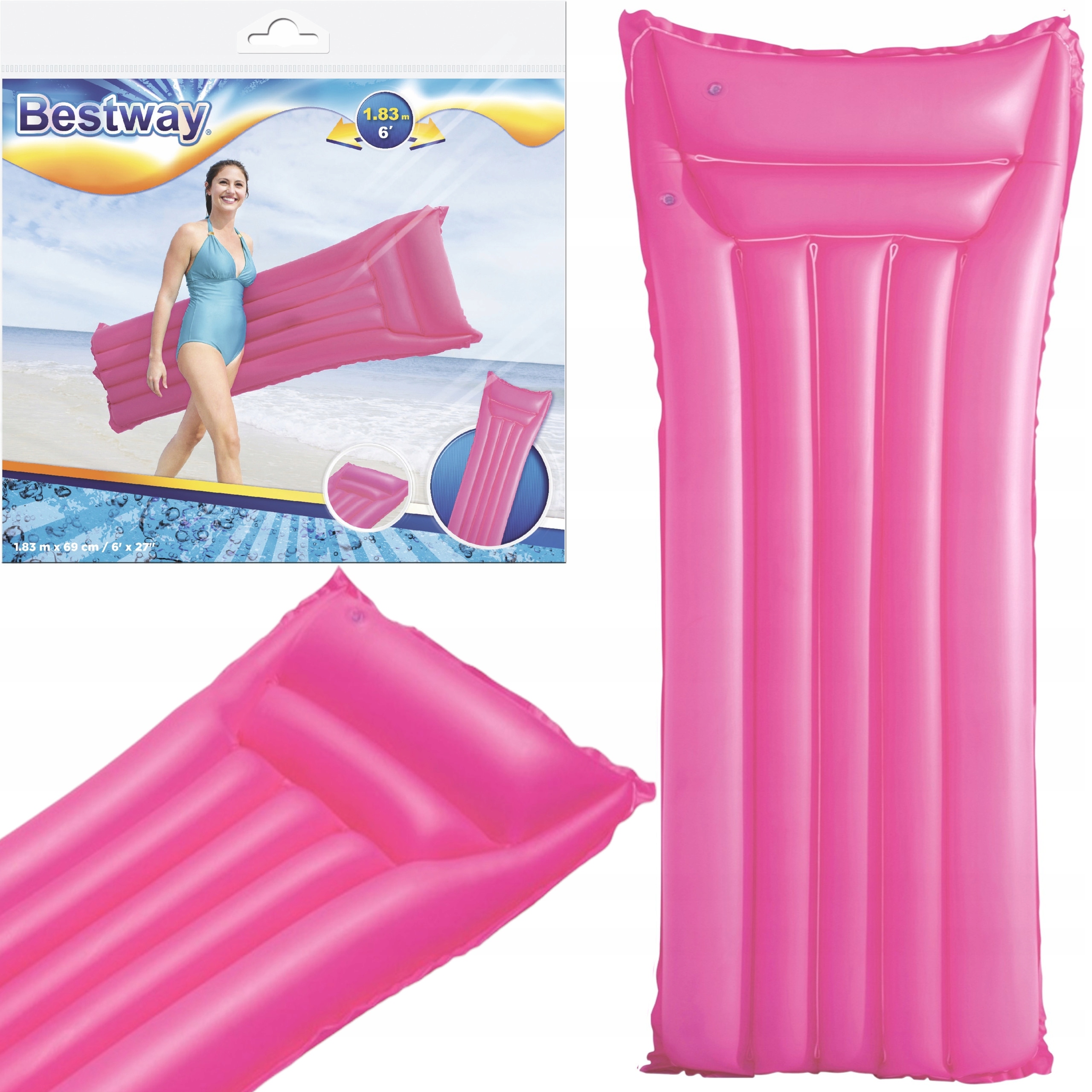Materac do pływania firmy Bestway w żywym kolorze to idealne rozwiązanie na letni wypoczynek nad morzem, jeziorem w basenie czy we własnym ogrodzie. Dmuchany materac wykonany jest z wytrzymałego materiału PCV, który posłuży przez kilka lat. Charakterystyczną cechą nadmuchiwanego materaca dwukomorowy zagłówek , zapewniający dodatkowy komfort i wygodnie oparcie dla głowy. Materac do pływania to wspaniała propozycja dla osób ceniących wygodę i relaks na świeżym powietrzu.