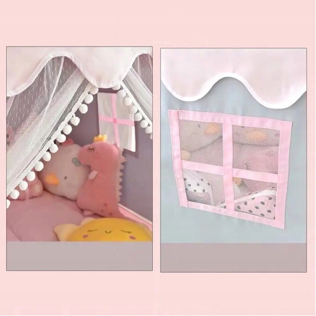 Ten uroczy namiot jest nie tylko doskonałą ozdobą dziecięcego pokoju, ale także zapewnia dzieciom idealne miejsce do kreatywnej zabawy. Może również być idealnym miejscem na czytanie bajek.