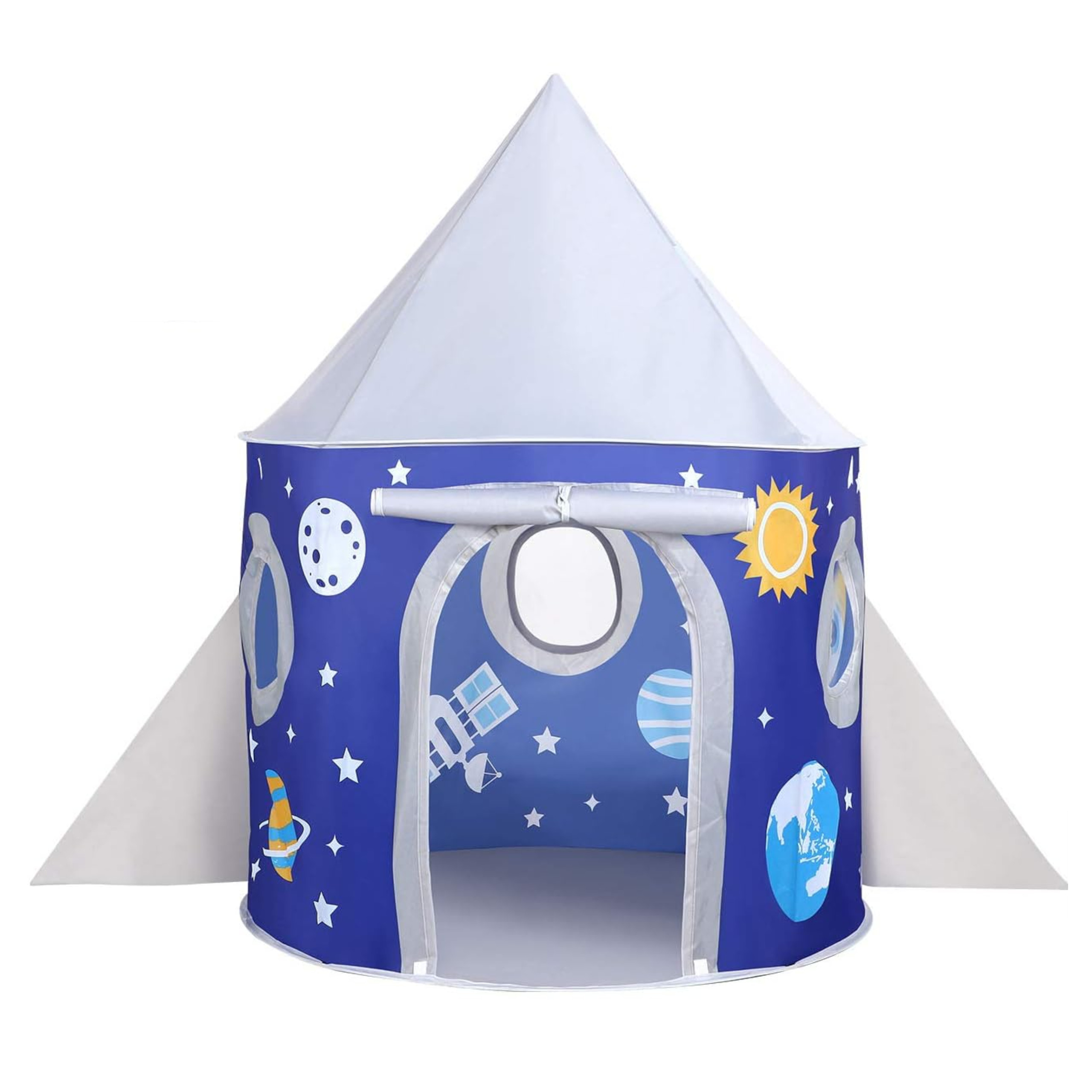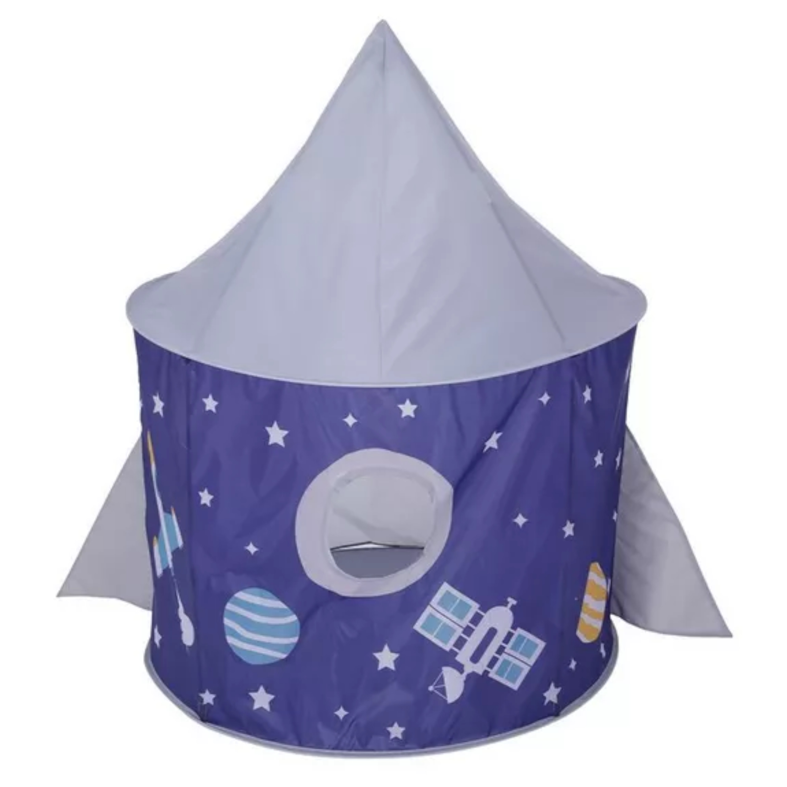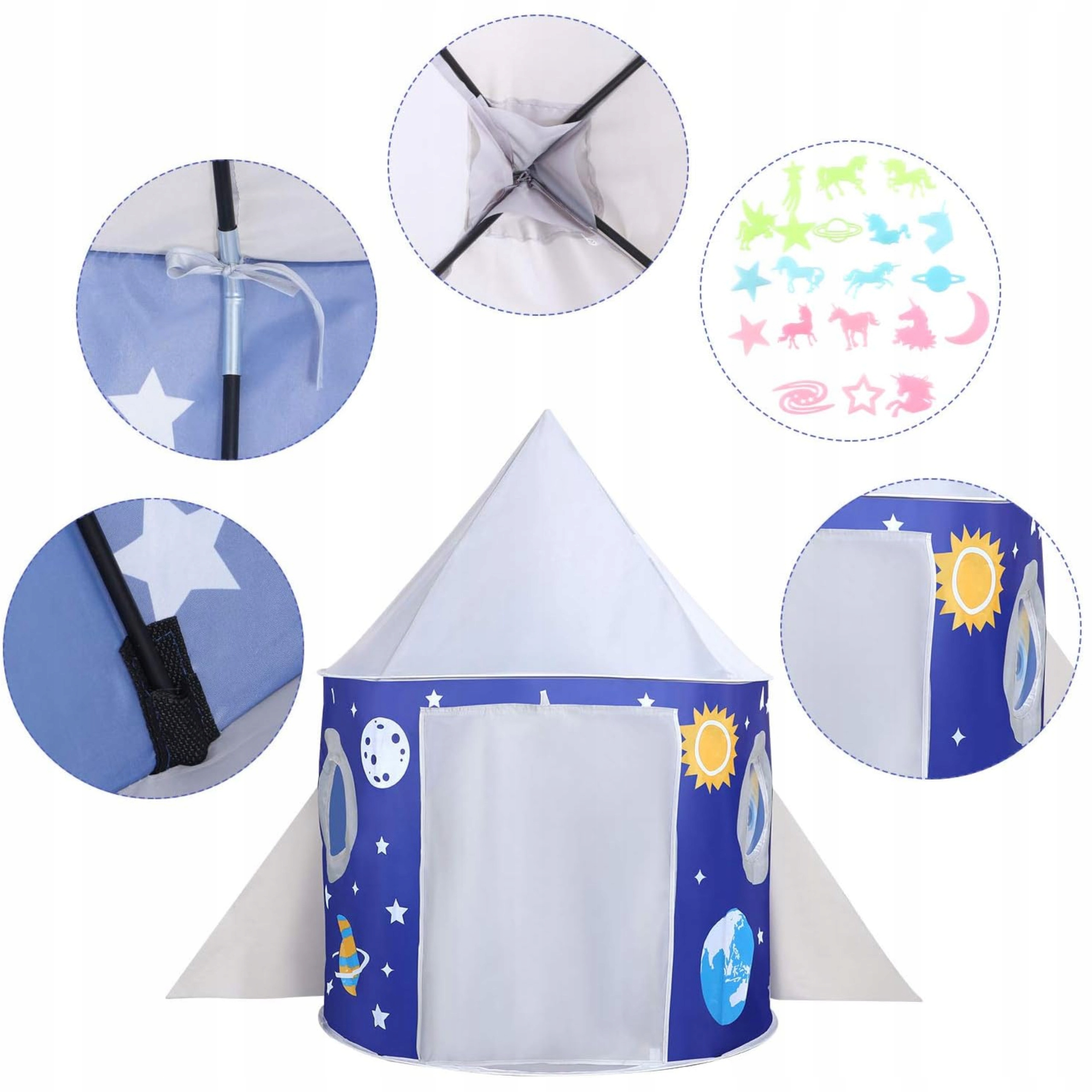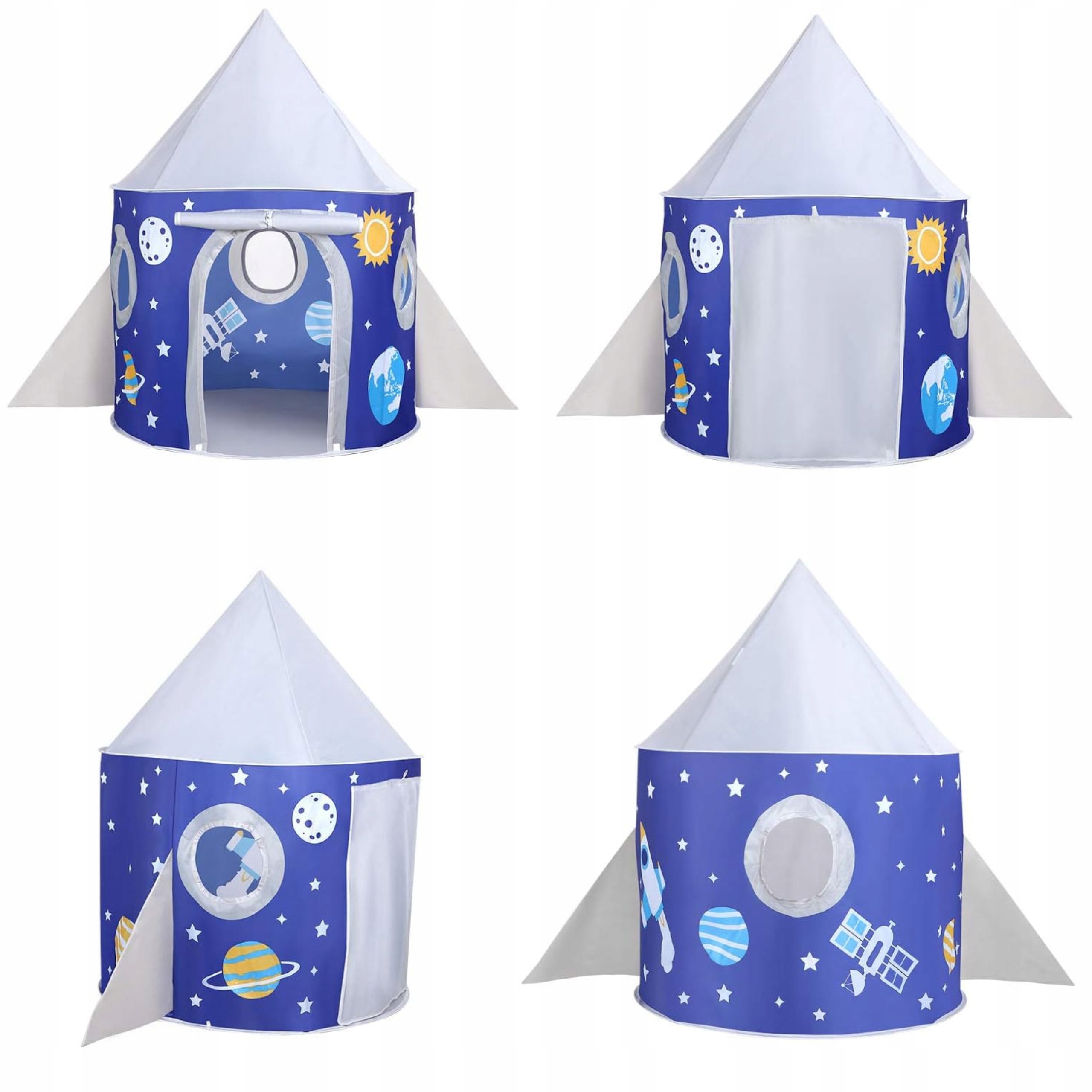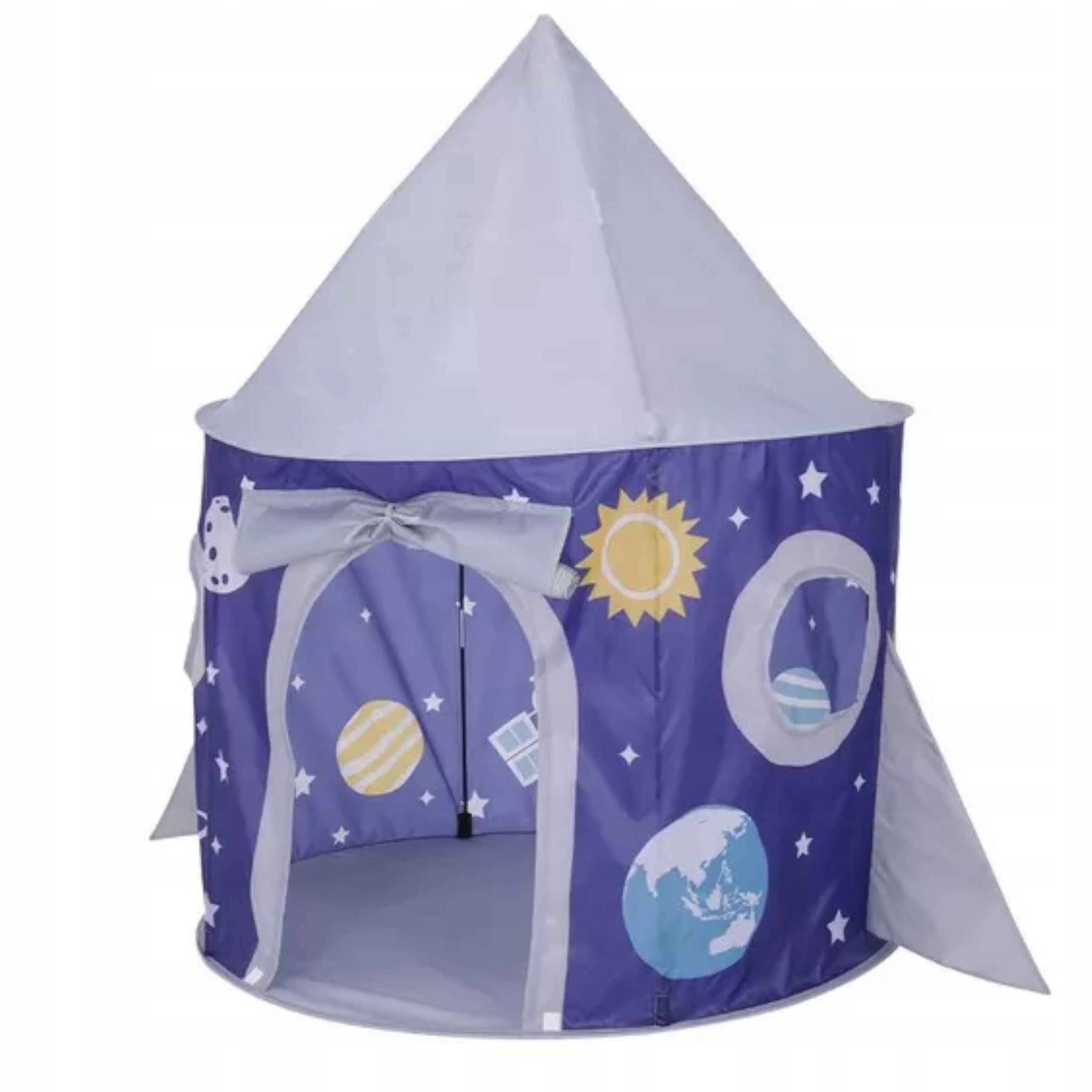 Zabawa w namiocie to idealne miejsce do rozwijania wyobraźni i kreatywności poprzez wyobrażanie sobie niezwykłych podróży i przygód w przestrzeni kosmicznej czy nawet prostej zabawy w dom.