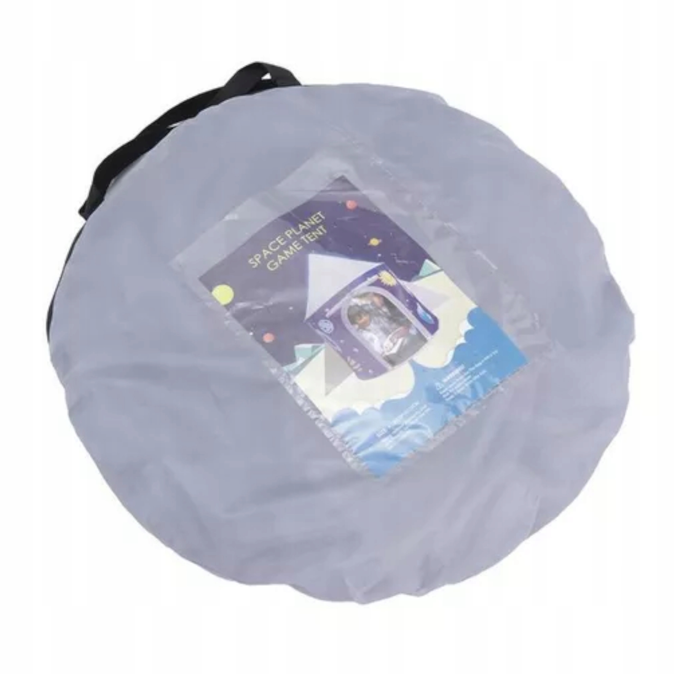 Namiot ma okrągły kształt, stożkowaty dach i charakterystyczne elementy kosmosu, dzięki którym wyglądem przypomina pojazd kosmiczny. Ścianki zdobią dwa okienka z siateczką, zapewniające jednocześnie przepływ powietrza. Wejście można przymocować sznureczkiem, aby pozostało otwarte. Ponadto namiot posiada podłogę dzięki, której Twoje dziecko nie pobrudzi się podczas zabawy. Lekka konstrukcja domku sprawia, że można go w łatwy sposób złożyć i przenosić w różne miejsca ogrodu czy domu. Materiał, z którego został wykonany namiot jest łatwy w czyszczeniu. Po złożeniu namiot zajmuje mało miejsca, dzięki czemu łatwo można go zabrać na wyjazd rodzinny lub urlop.