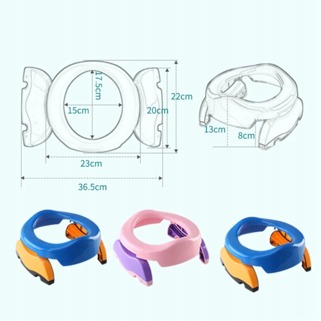 Innowacyjny nocnik turystyczny i nakładka na sedes dla dzieci 2W1 idealnie sprawdza się w podróży i dopasowuje się do większości dostępnych desek sedesowych.