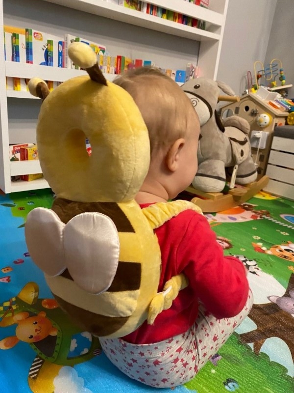 Drodzy rodzice przyszedł koniec waszego martwienia się, że Wasza Pociecha zrobi sobie krzywdę ucząc się siadać i chodzić. Prezentujemy śliczną i praktyczną poduszeczkę chroniącą główkę i plecki dziecka, którą zakłada się jak plecaczek.