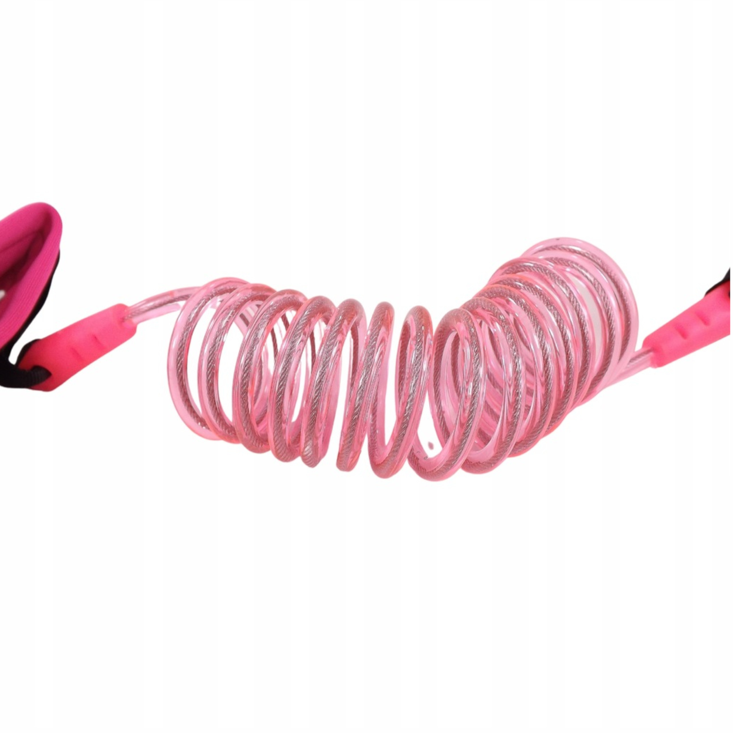 - Solidne wykonanie – prawidłowo założona na nadgarstki nie zerwie się i nie zsunie. Odporna na przecięcia linka ma mocny stalowy wewnętrzny rdzeń przewleczony przez grubą plastikową rurką