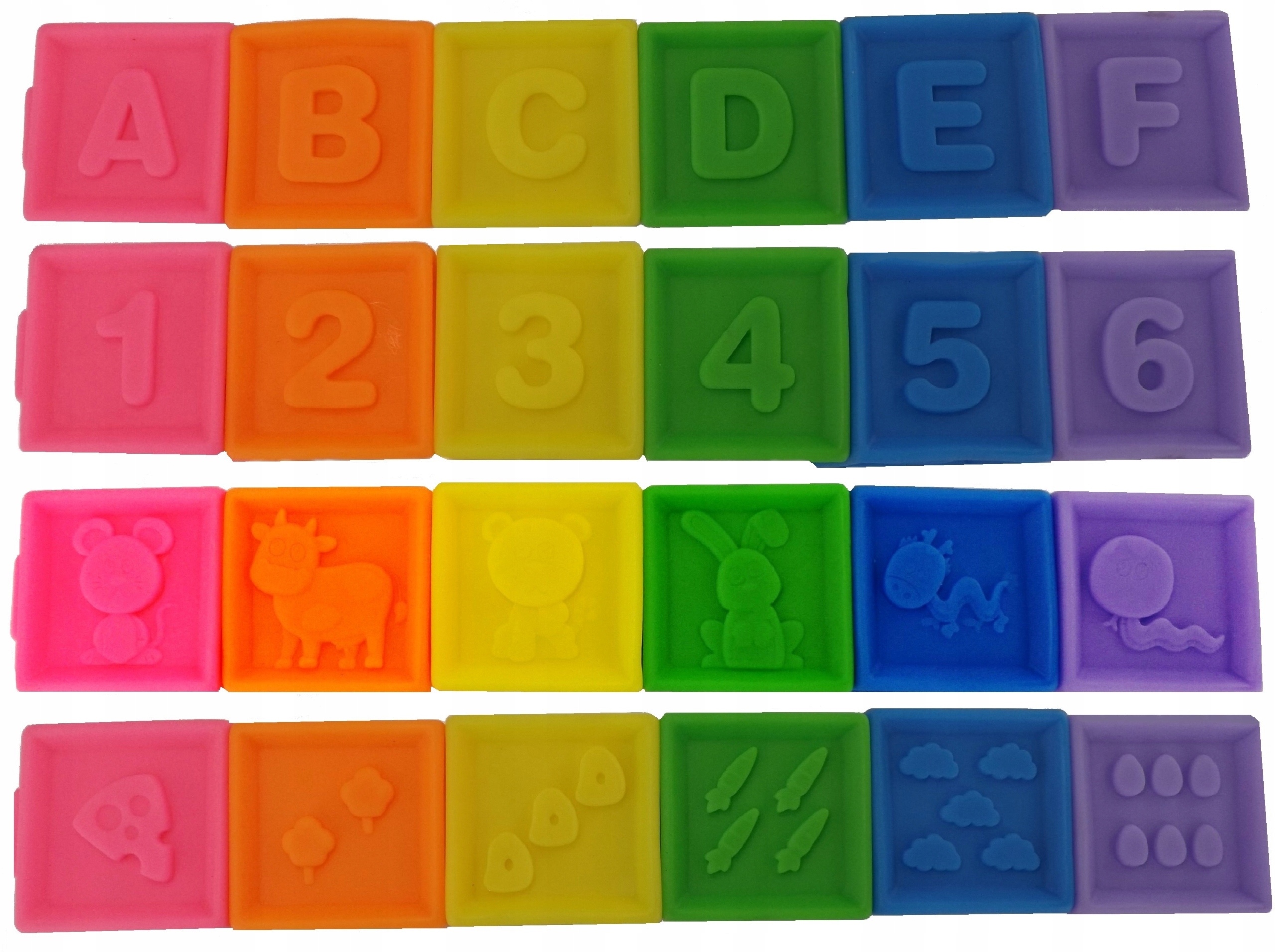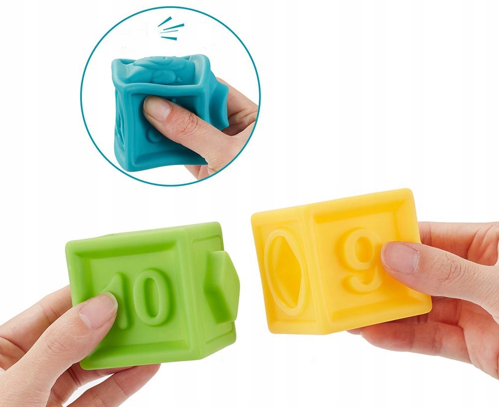 MIĘKKIE GUMOWE KLOCKI SENSORYCZNE PISZCZAŁKI