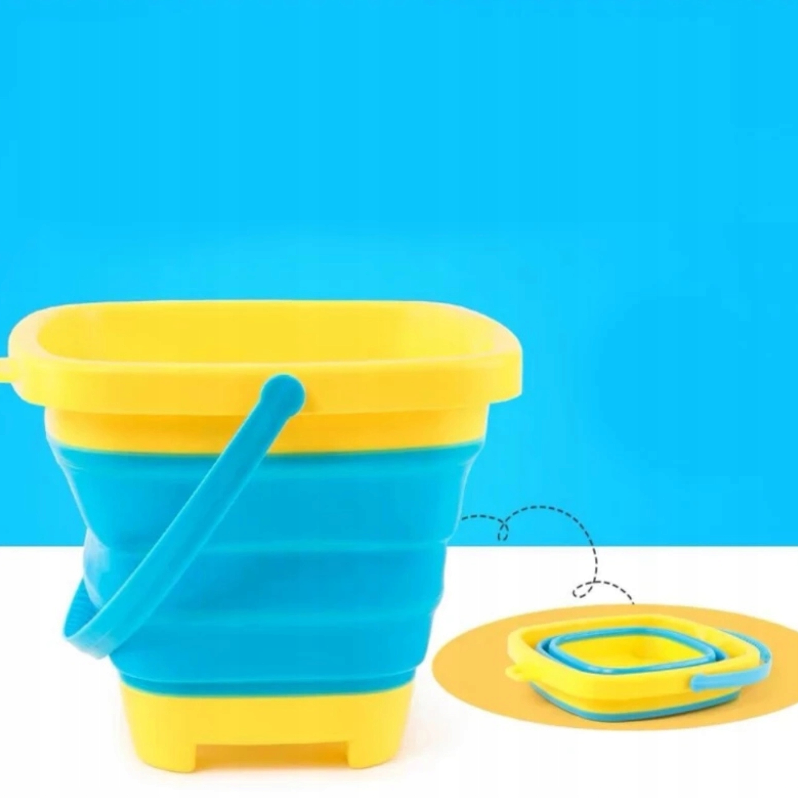 ✅ Składane wiaderko sylikonowe z rączką, jest dostosowane wymiarami do dzieci, pozwoli na wygodne korzystanie z zabawki