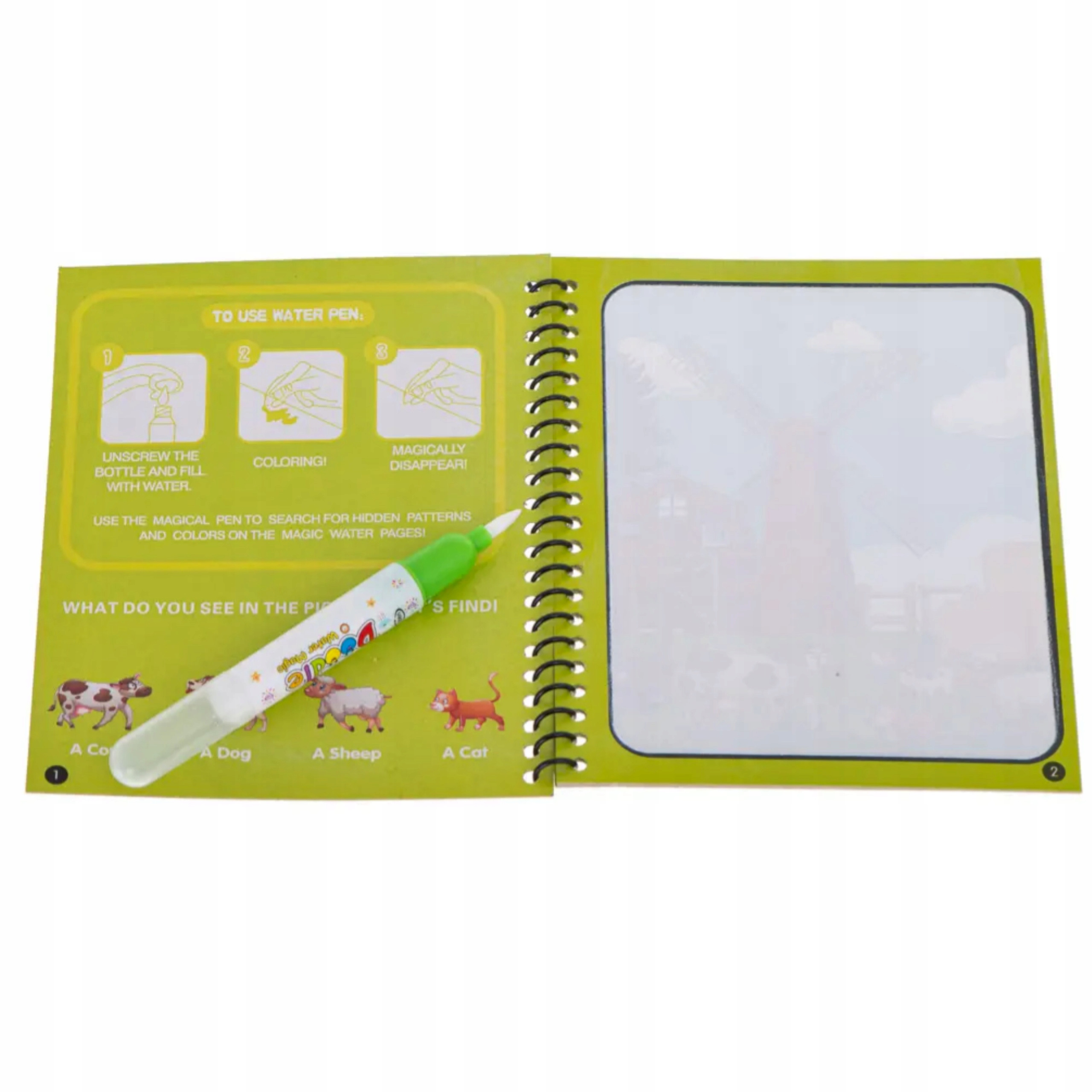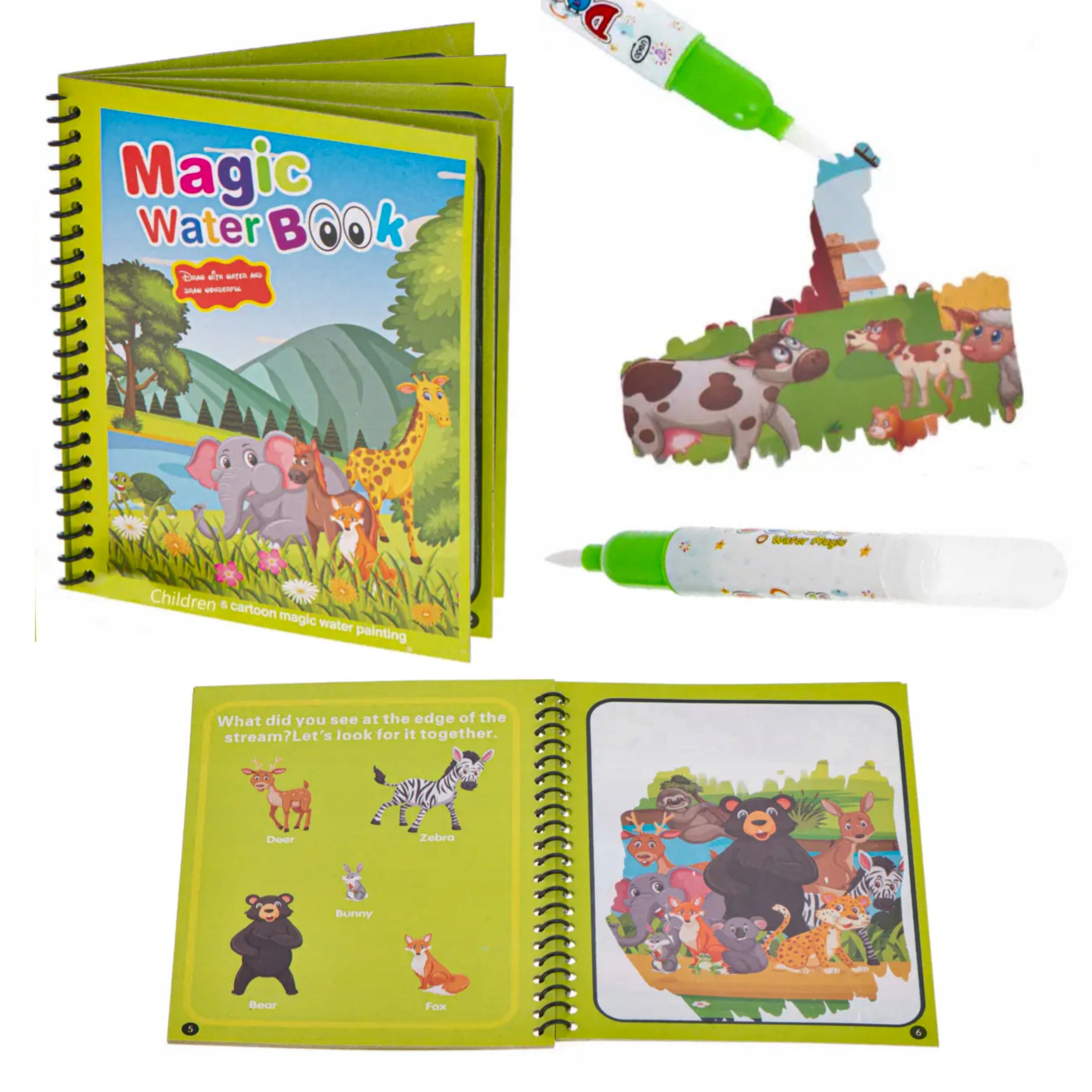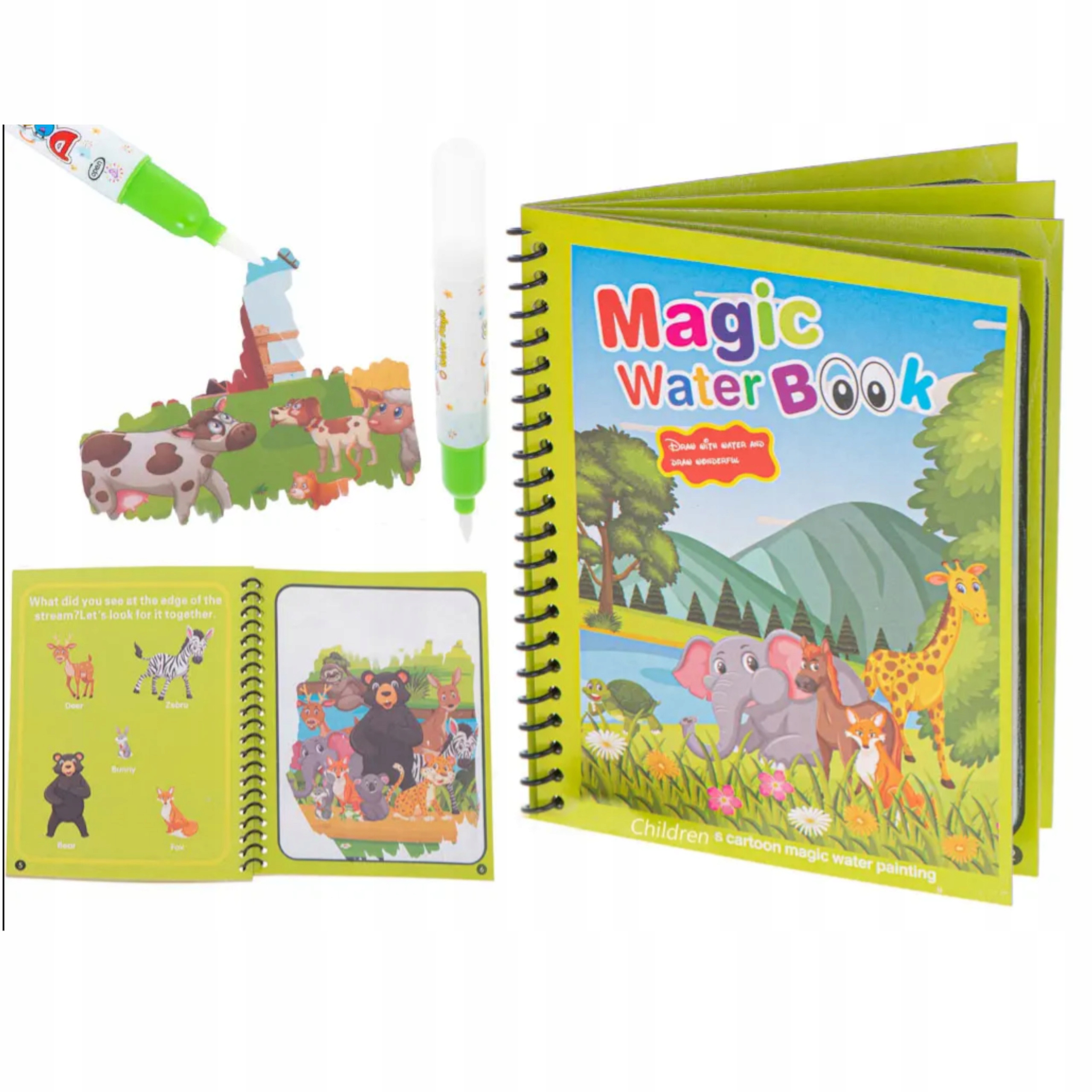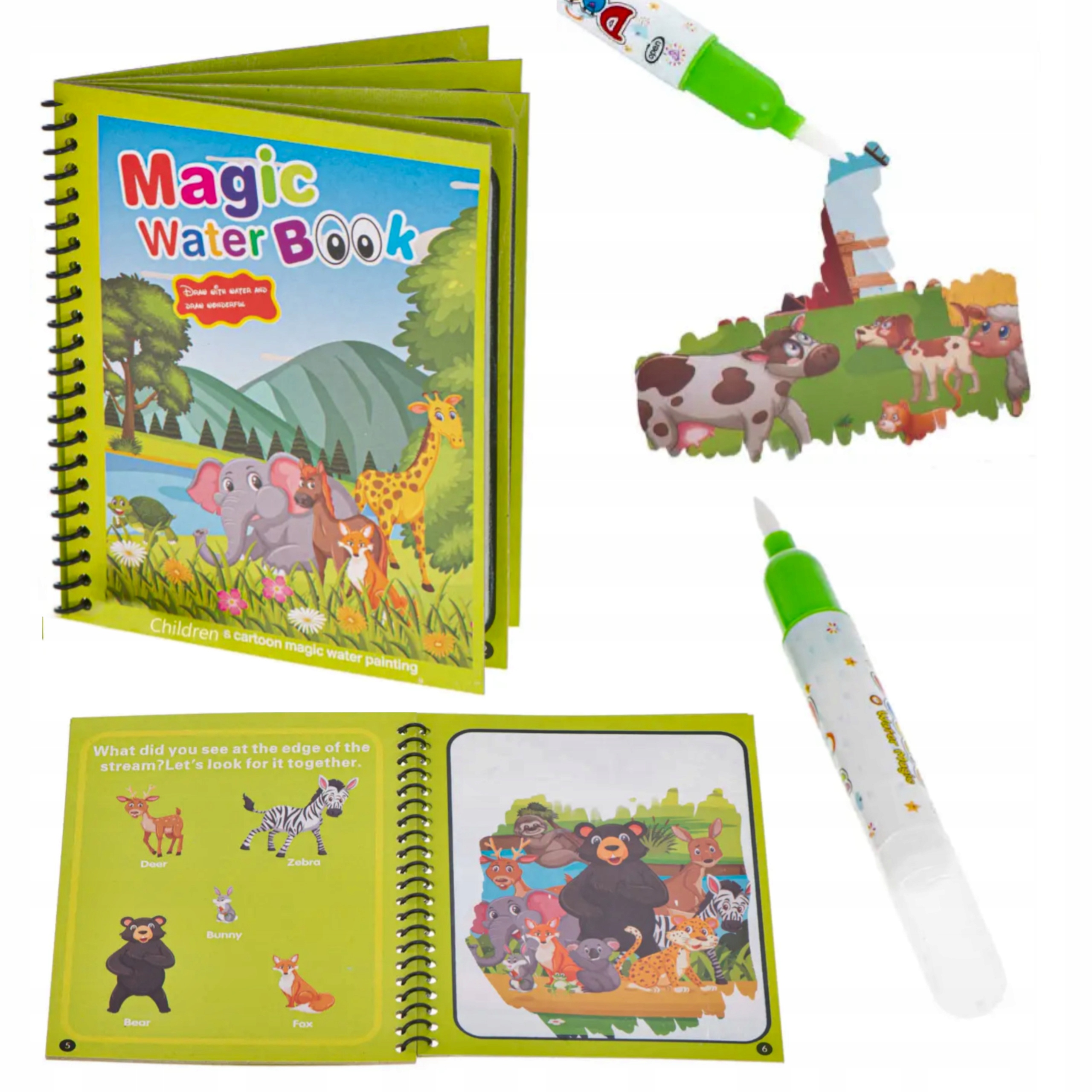 Po 5-10 minutach suszenia kolorowe obszary znikną w naturalny sposób, a następnie strony można ponownie wykorzystać, pozwalając dzieciom na wielokrotne rysowanie i ciągnięcie książeczki.