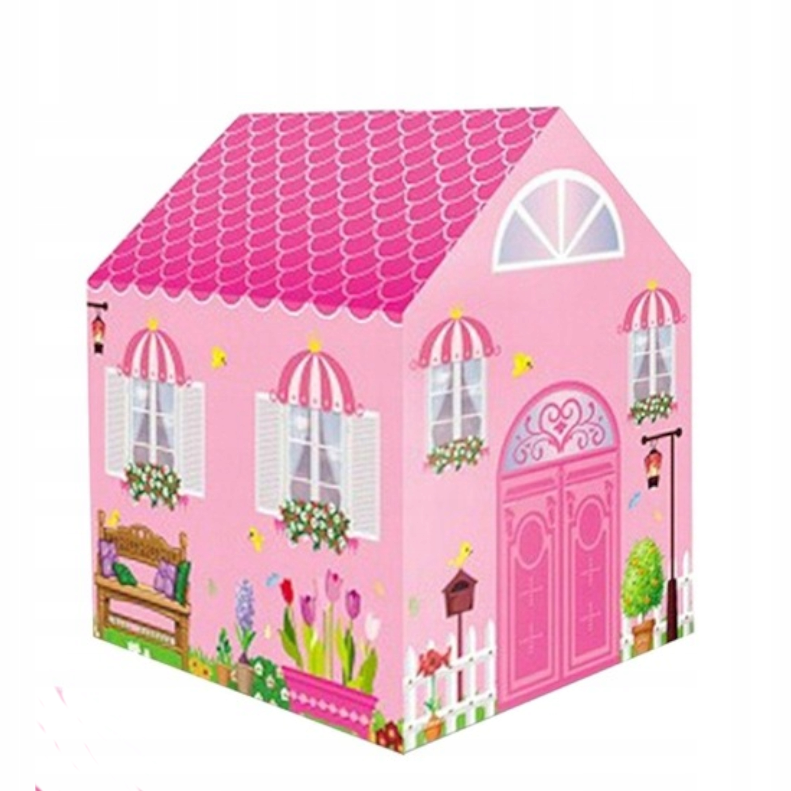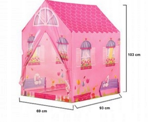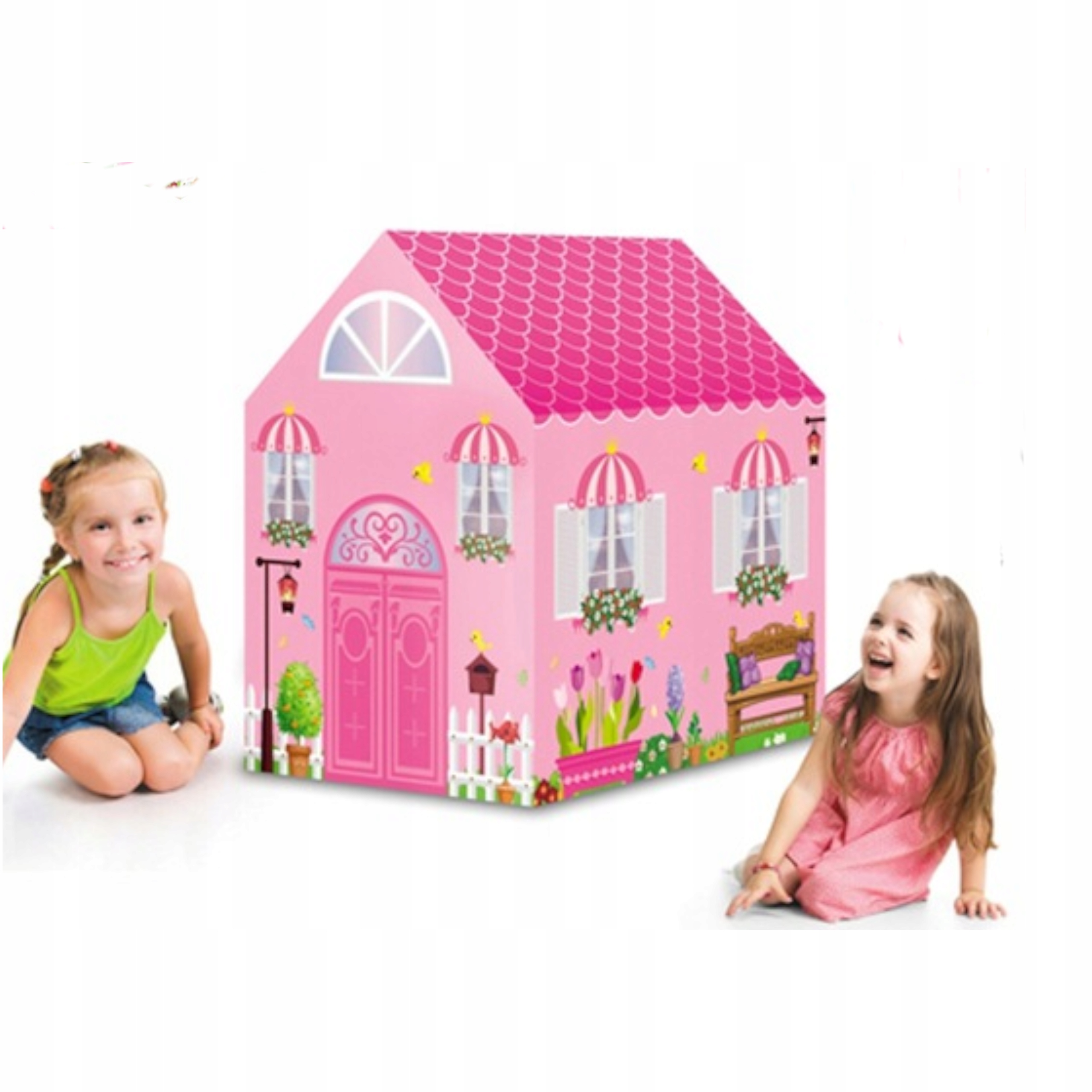 Namiot domek różowy z kwiatami idealny jest dla małych dziewczynek w wieku przedszkolnym i wczesnoszkolnym. Namiot dla dzieci to wyśmienita zabawa na długie zabawy.