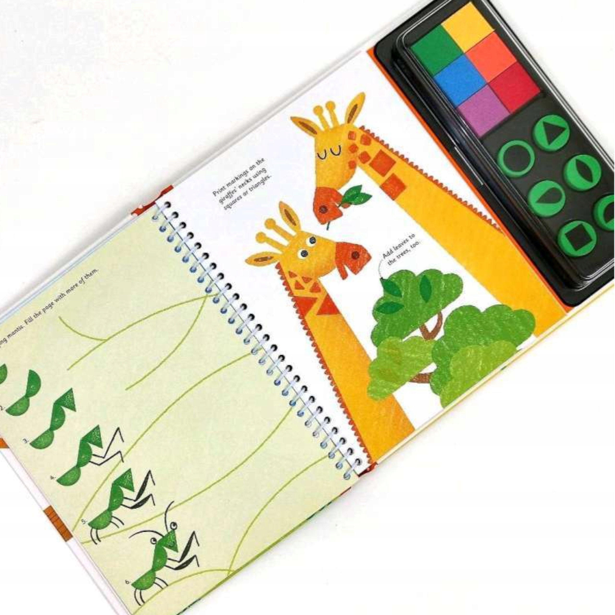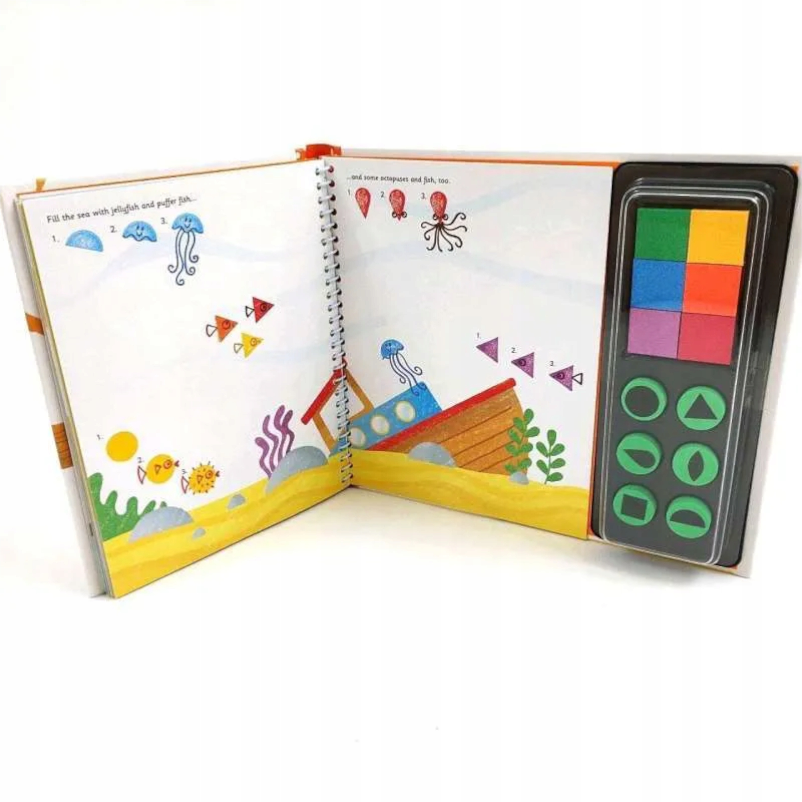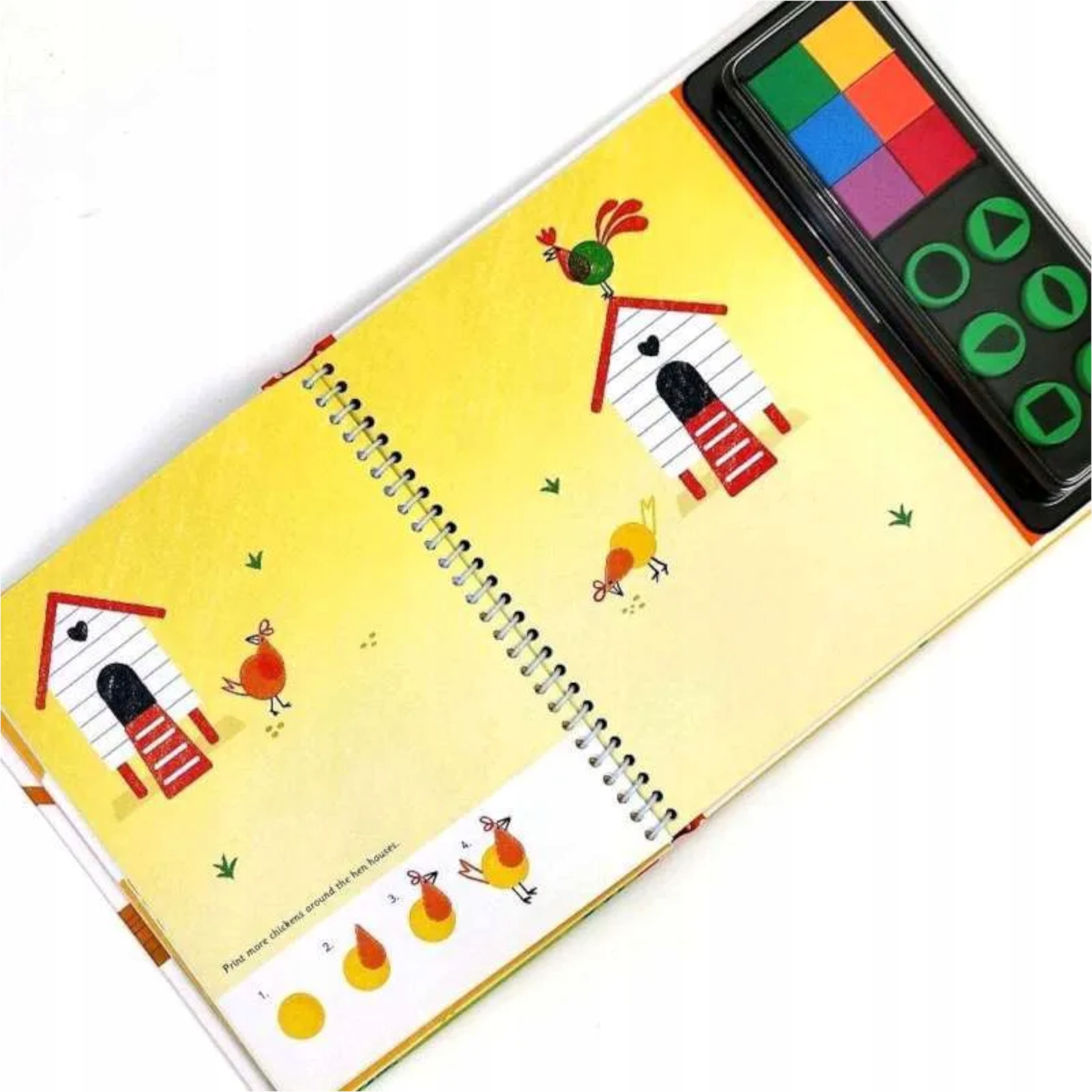 Książka zachęca dzieci do kreatywnej zabawy poprzez malowanie za pomocą pieczątek. Dołączona paleta 6 farb, pozwala od razu rozpocząć kolorową zabawę. Na stronach są różne plastyczne zadania do namalowania. Książka jest w języku angielskim, ale posiada proste obrazkowe instrukcje, dzięki którym znajomość języka nie jest niezbędna.