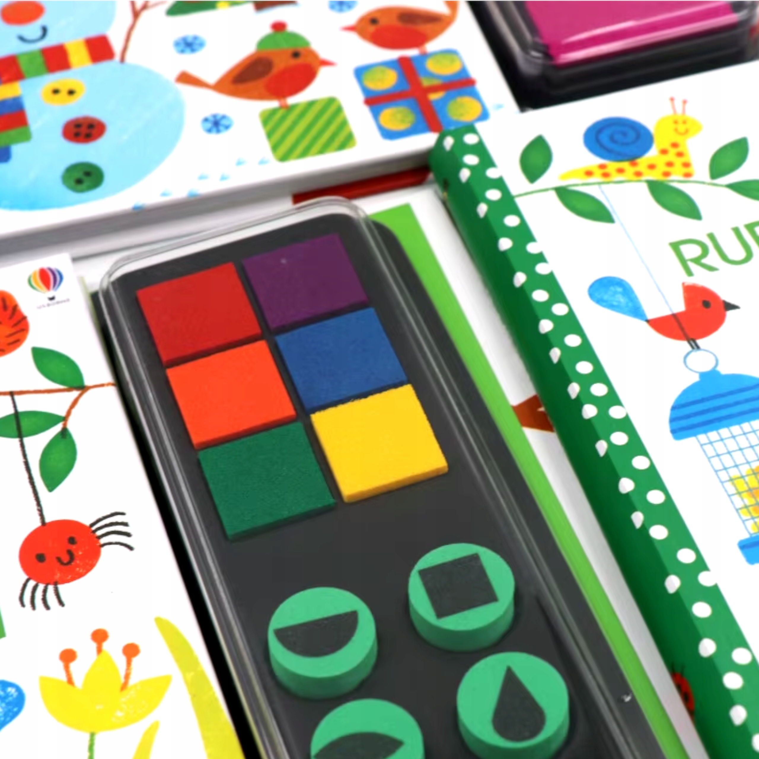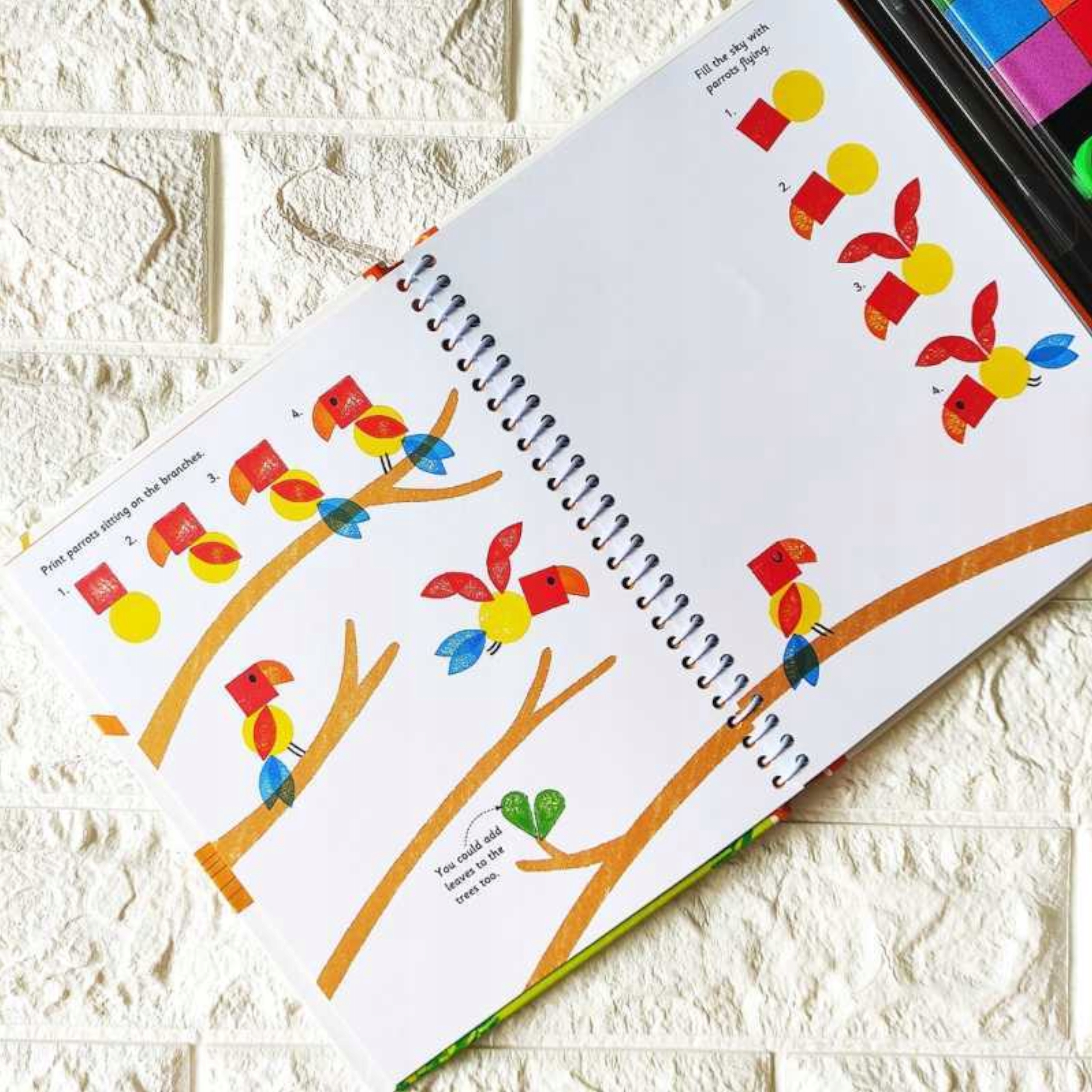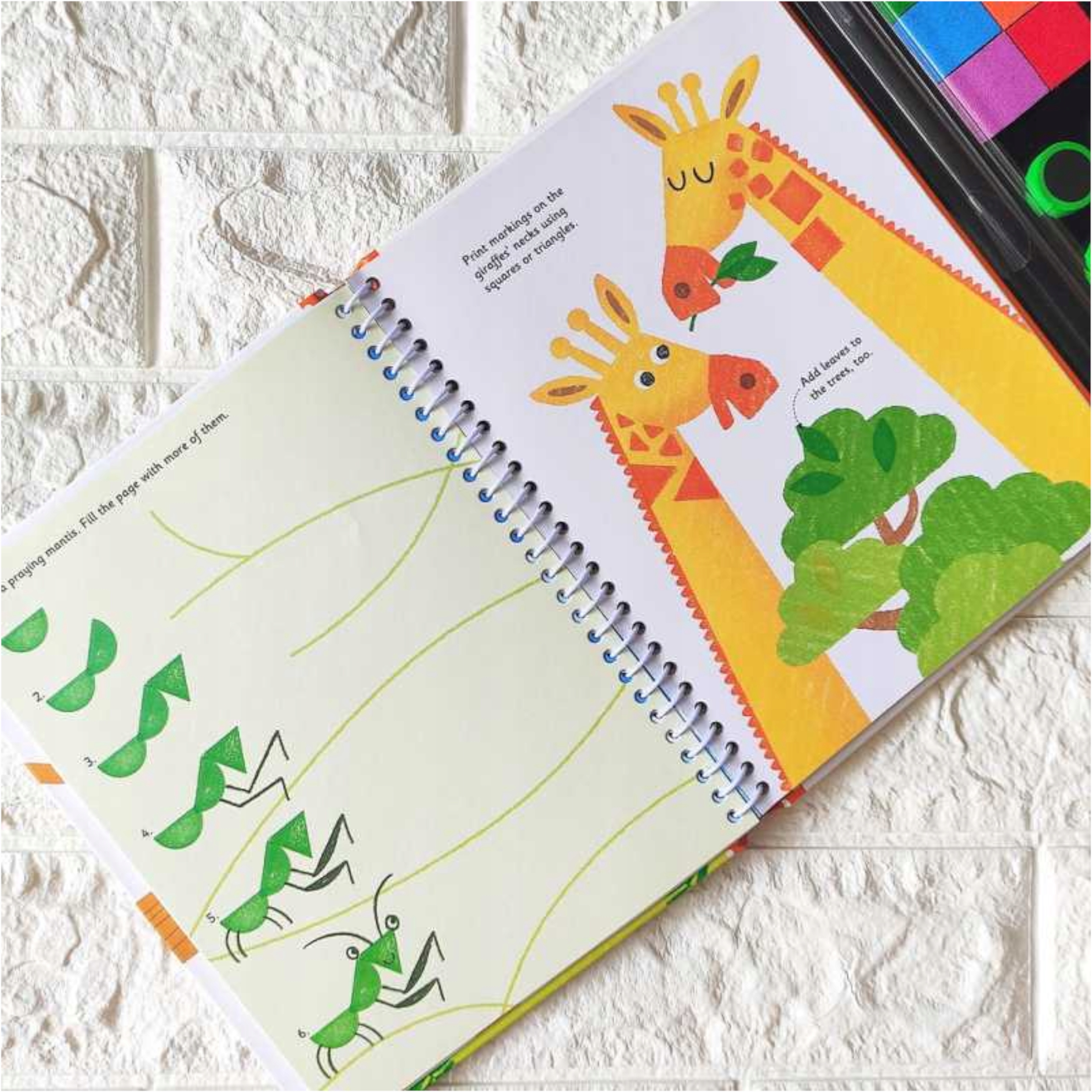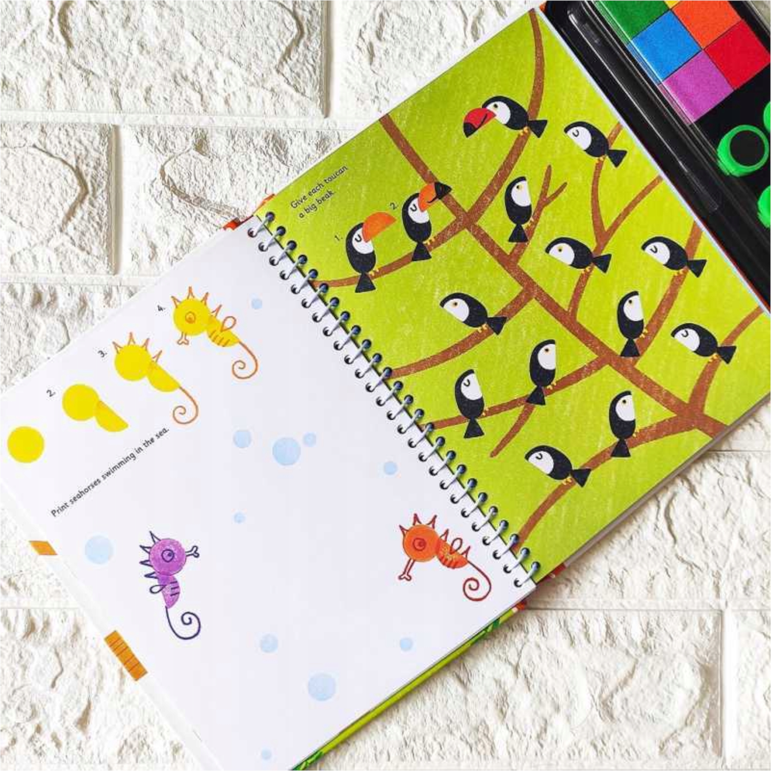 Książka zachęca dzieci do kreatywnej zabawy poprzez malowanie za pomocą pieczątek. Dołączona paleta 6 farb, pozwala od razu rozpocząć kolorową zabawę. Na stronach są różne plastyczne zadania do namalowania. Książka jest w języku angielskim, ale posiada proste obrazkowe instrukcje, dzięki którym znajomość języka nie jest niezbędna.