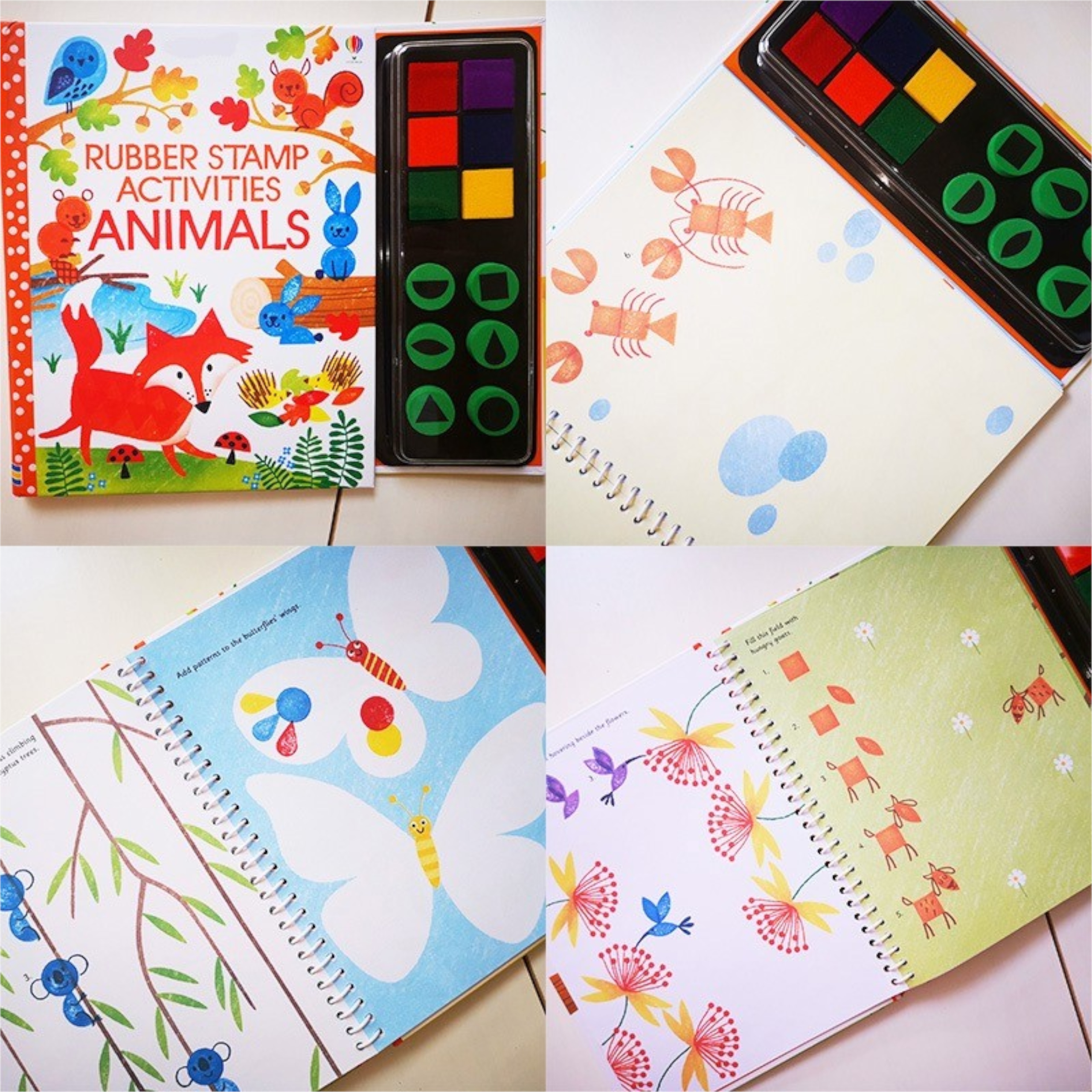 Rubber stamps activites animals Książka aktywizująca do malowania stemplami stemple zwierzęta 6 farb
