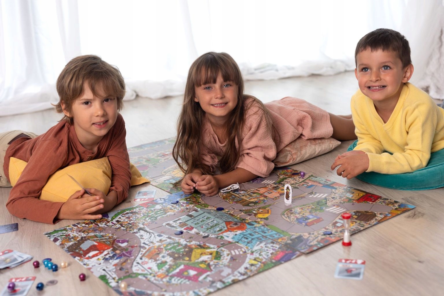- Ułóżcie planszą na stole lub podłodze tak, by zbudować tor gry.