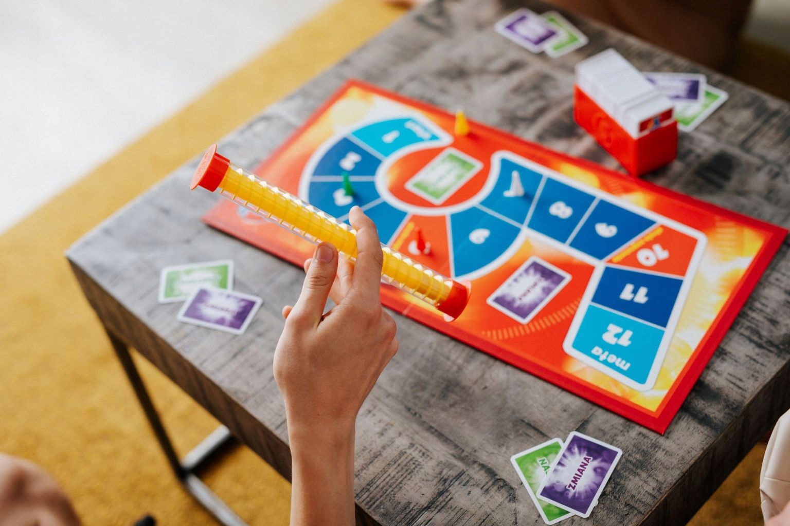 Jeśli pytanie sprawia Ci kłopot – wykorzystujesz karty „następny” i „zmiany”. To świetna zabawa, gdy gracze próbują dojść do mety w możliwie najszybszym tempie.