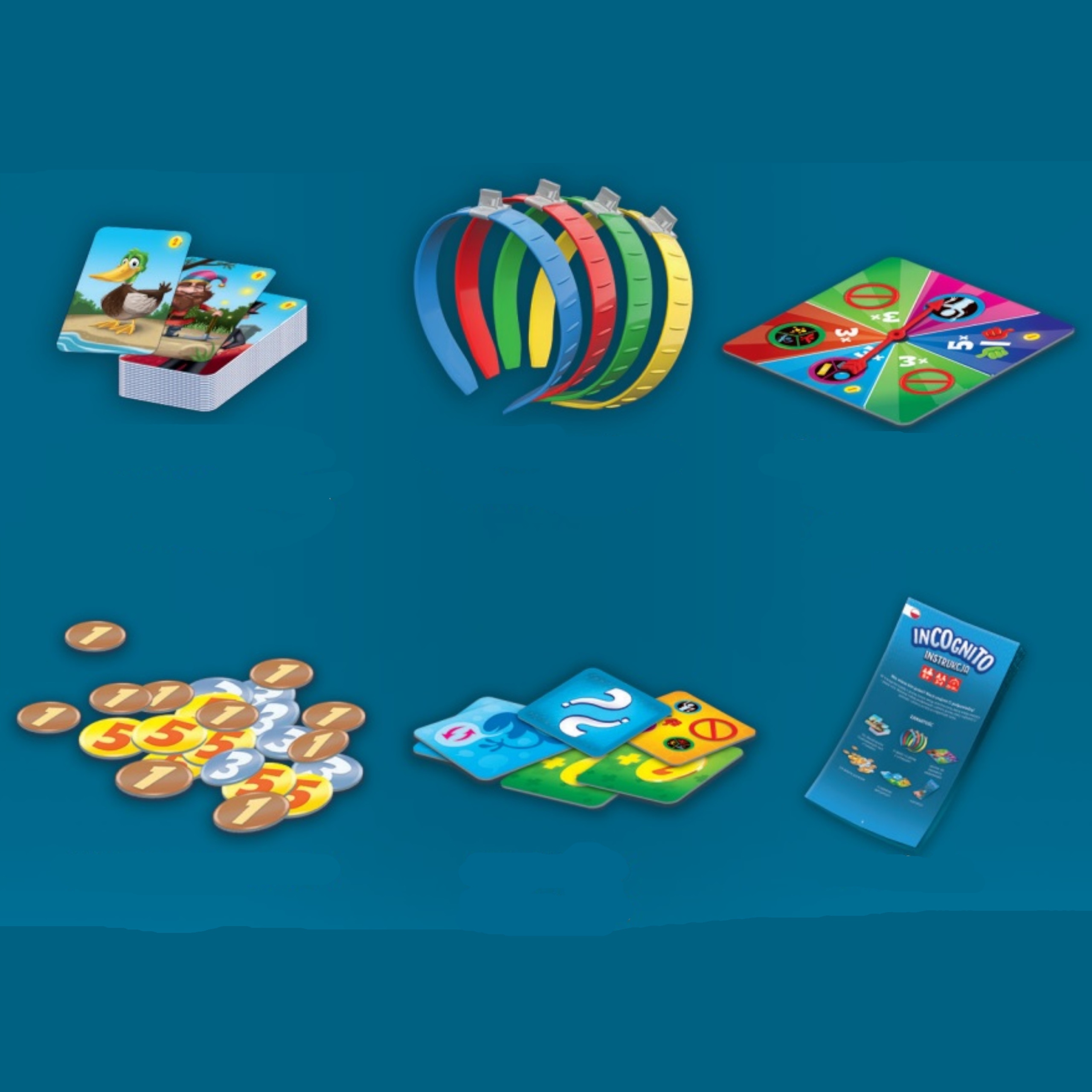 - Załóżcie opaski na głowę i umieśćcie w nich po jednej karcie tak, by była widoczna dla pozostałych graczy.