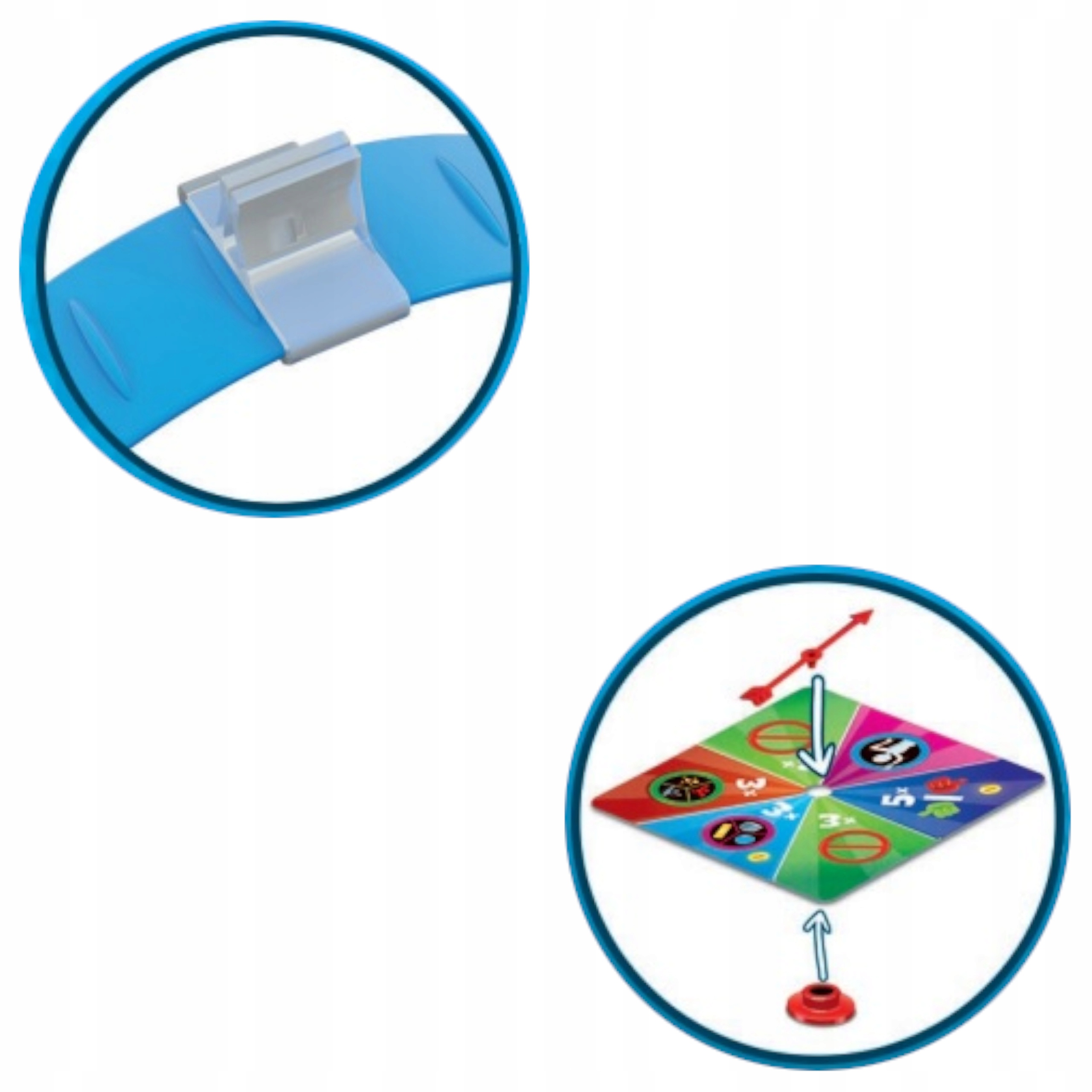 - Rozgrywajcie swoje tury po kolei, w kierunku zgodnym z ruchem wskazówek zegara. Zakręć spinnerem – wylosowane pole wskaże, w jaki sposób inny gracz może Ci podpowiedzieć Twoje hasło: