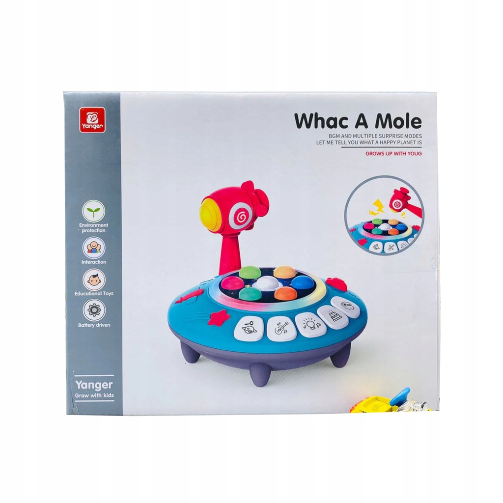 - Na planszy znajduje się 7 ślicznych kolorowych guzików, które świecą się naprzemiennie podczas gry i trzeba w nie trafiać młoteczkiem.