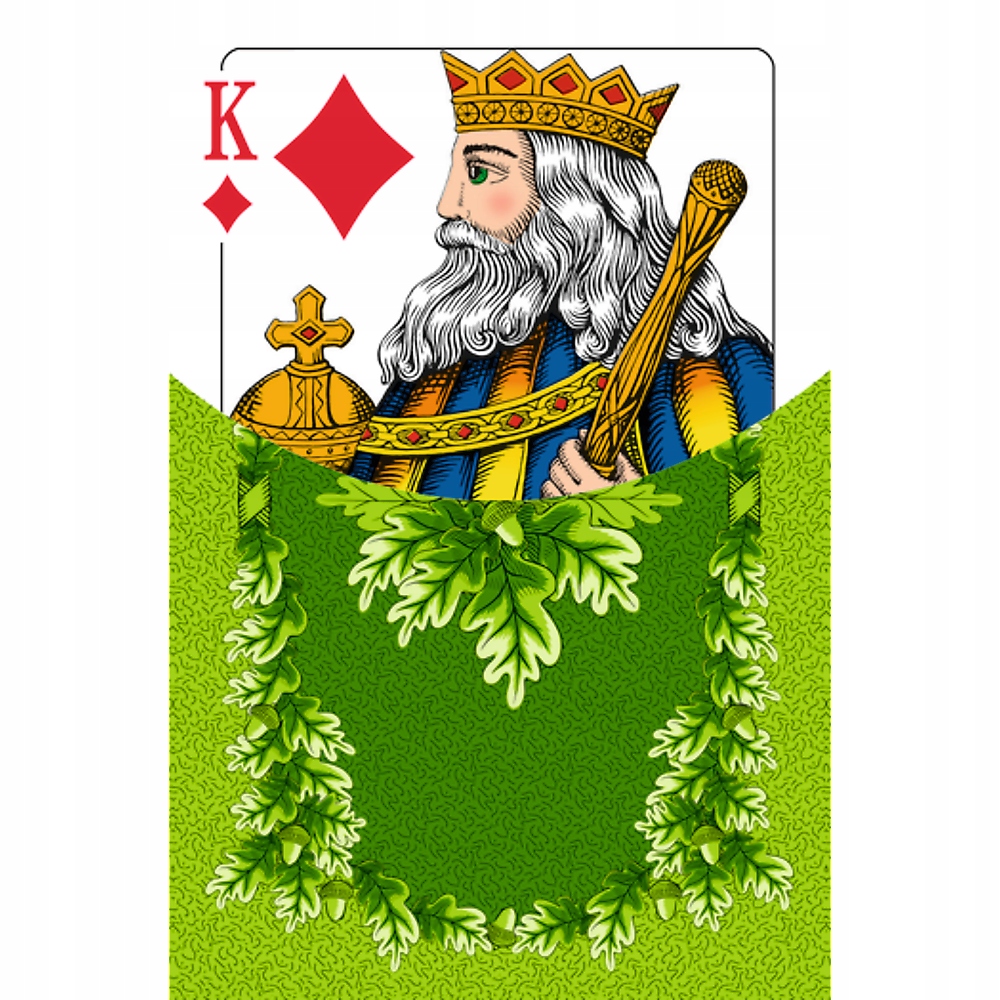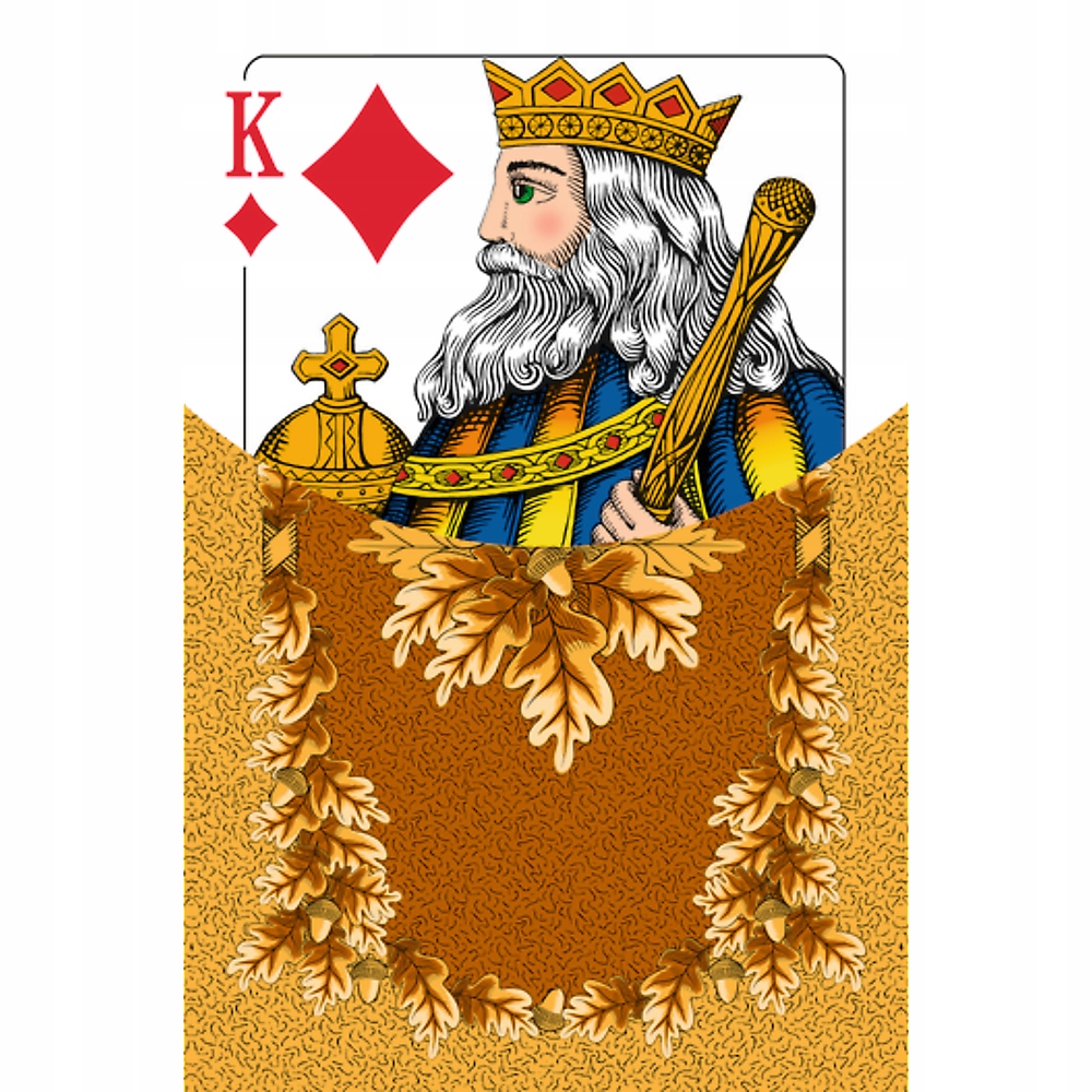 Karty standardowe 55 listków Classic Senior to idealna talia dla dojrzałych graczy, stworzona z myślą o wygodzie i przyjemności z gry. Charakteryzuje się klasycznym wzornictwem z bursztynowymi rewersami zdobionymi liśćmi dębu oraz awersami z tradycyjnymi figurami króla i damy. Wyróżniającym elementem są duże i czytelne indeksy na każdym listku, ułatwiające rozpoznanie kart nawet z większej odległości. Dzięki temu każdy gracz może cieszyć się rozgrywką bez trudności.